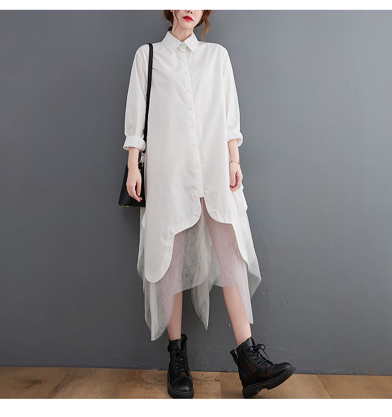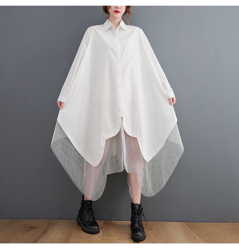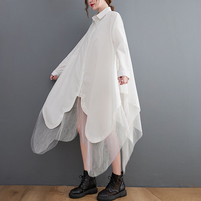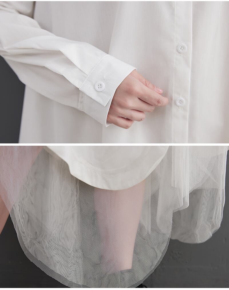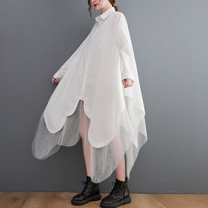 レイヤードデザインが魅力的なロングシャツワンピース。