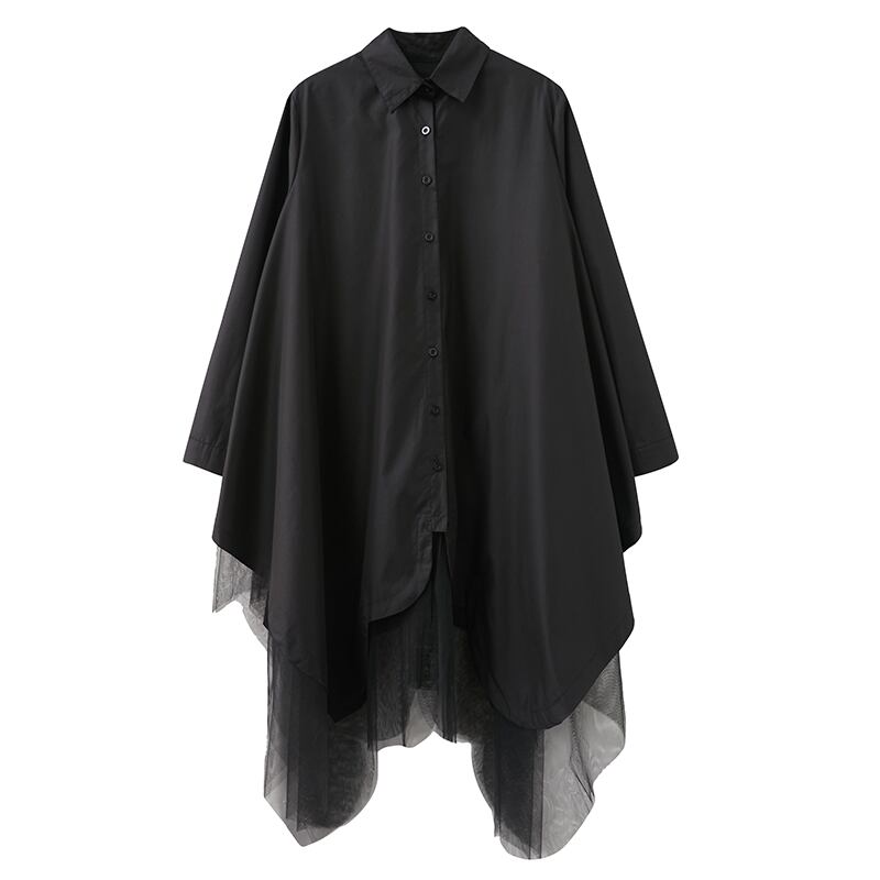 アシンメトリーな裾が、動きのあるシルエットを演出します。
