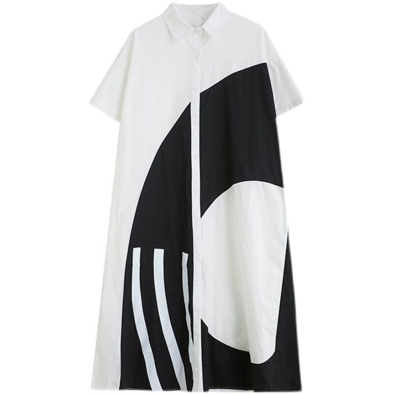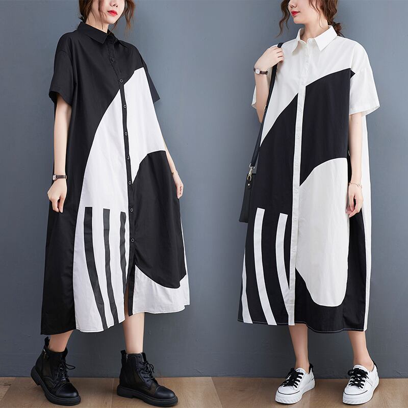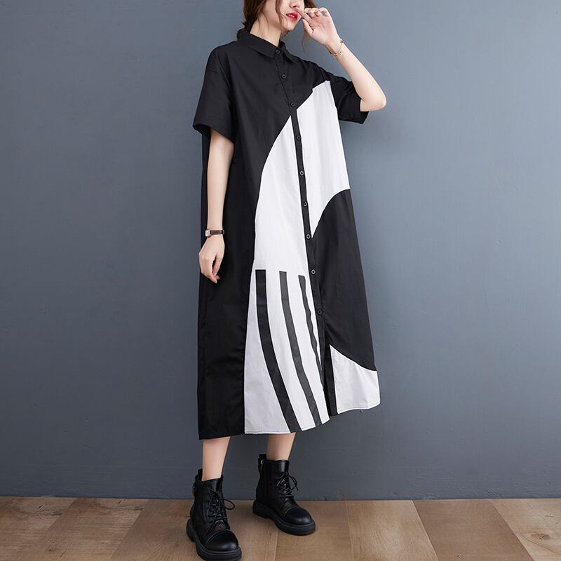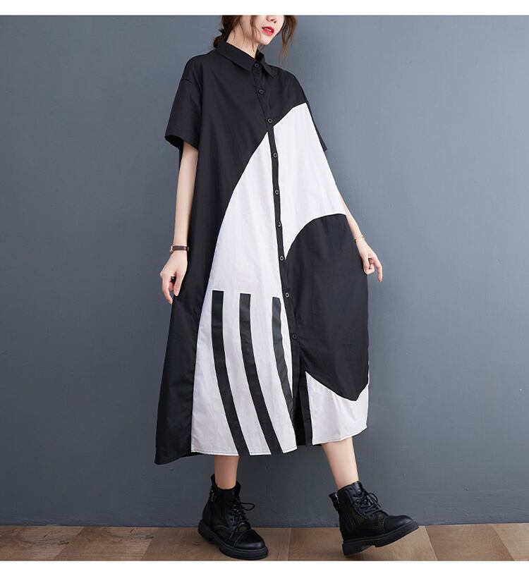 Geometric Pattern Maxi Shirt Dress 00053