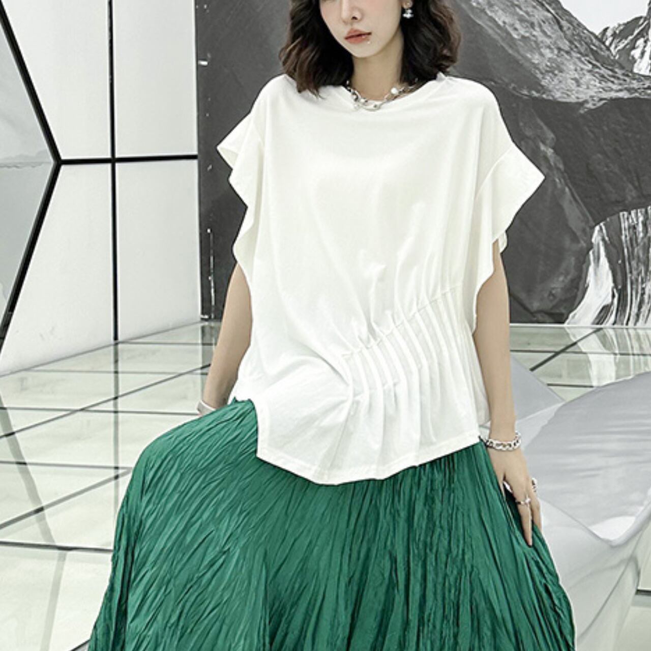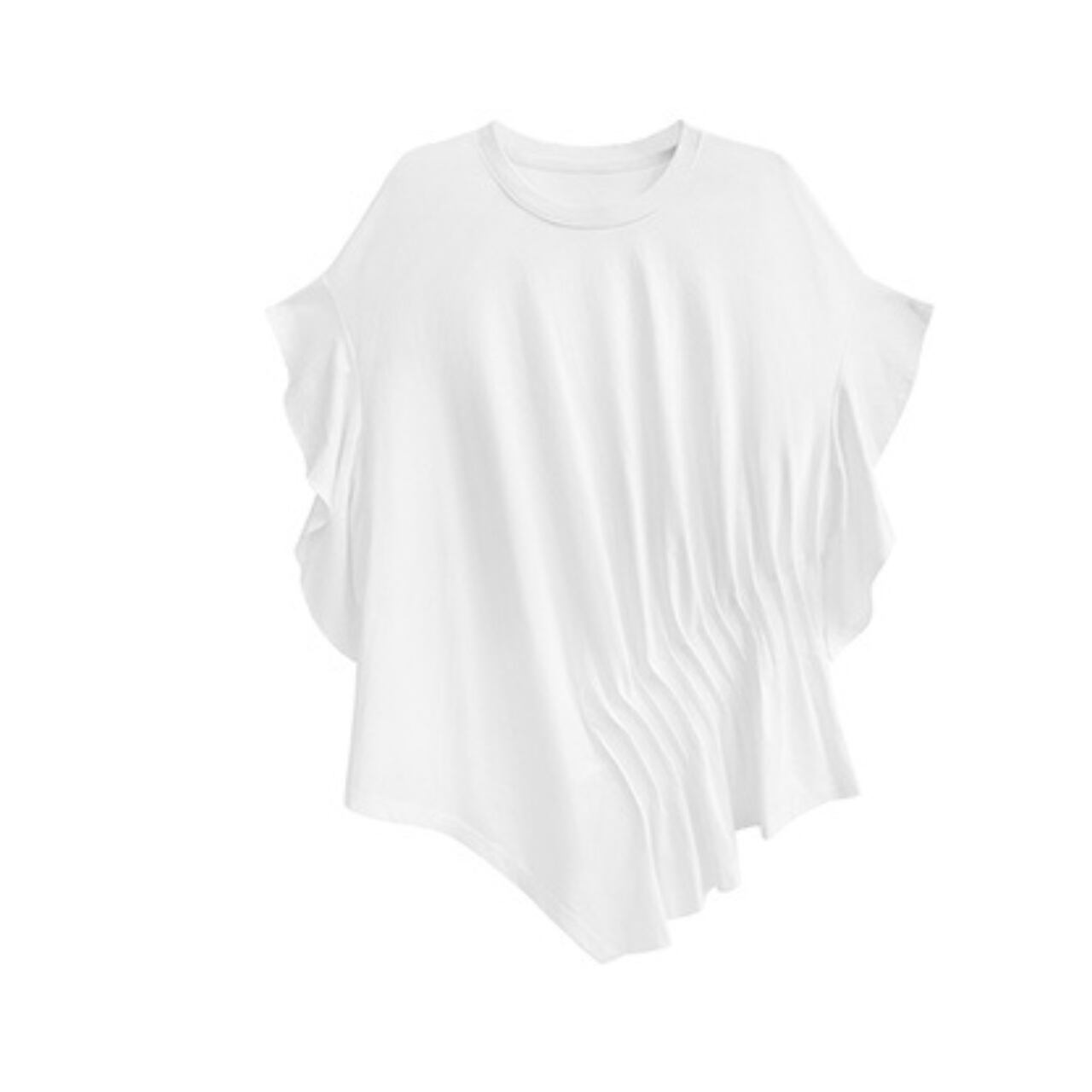 ドレープが織りなす立体的なシルエットが魅力のトップス。
