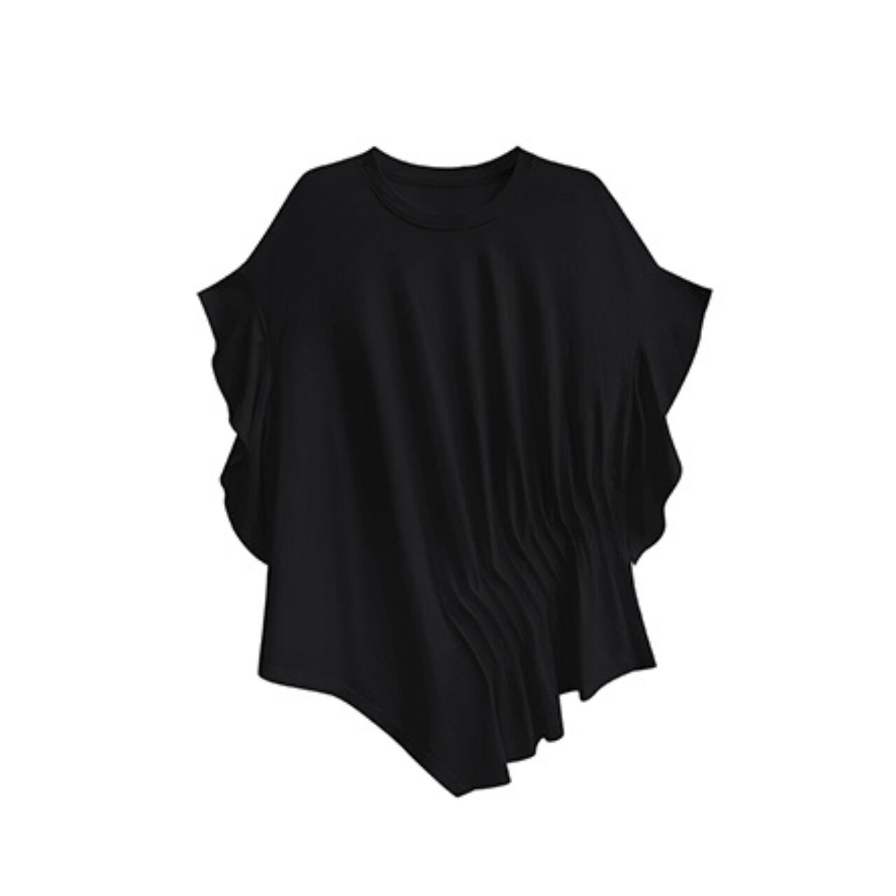 Flared Sleeve Crew Neck Draped Cut and Sew 00090