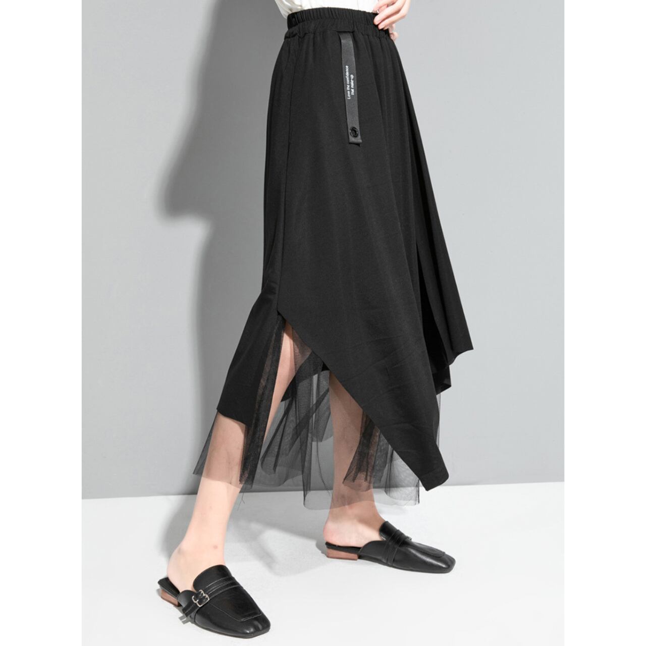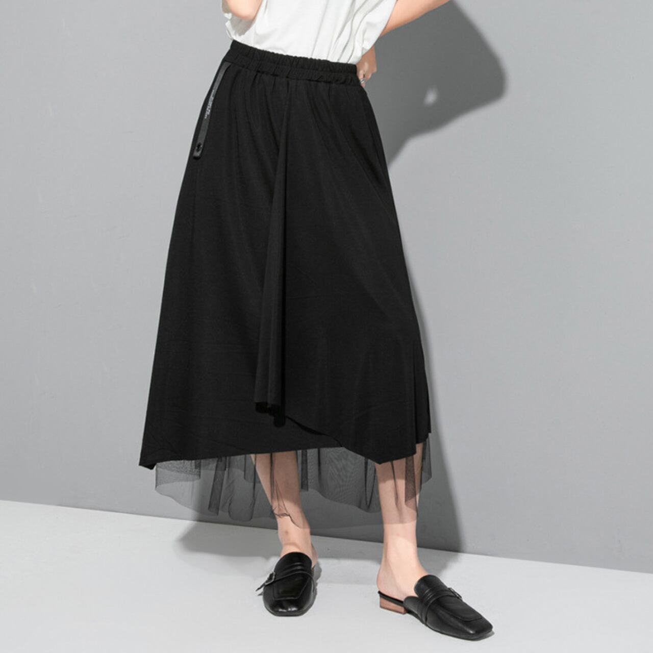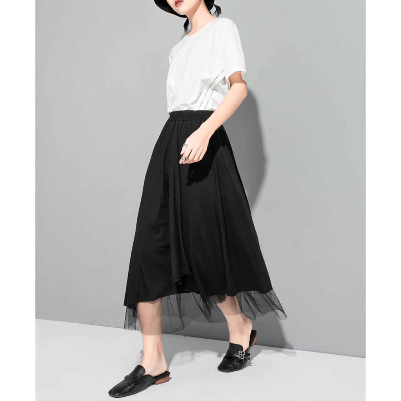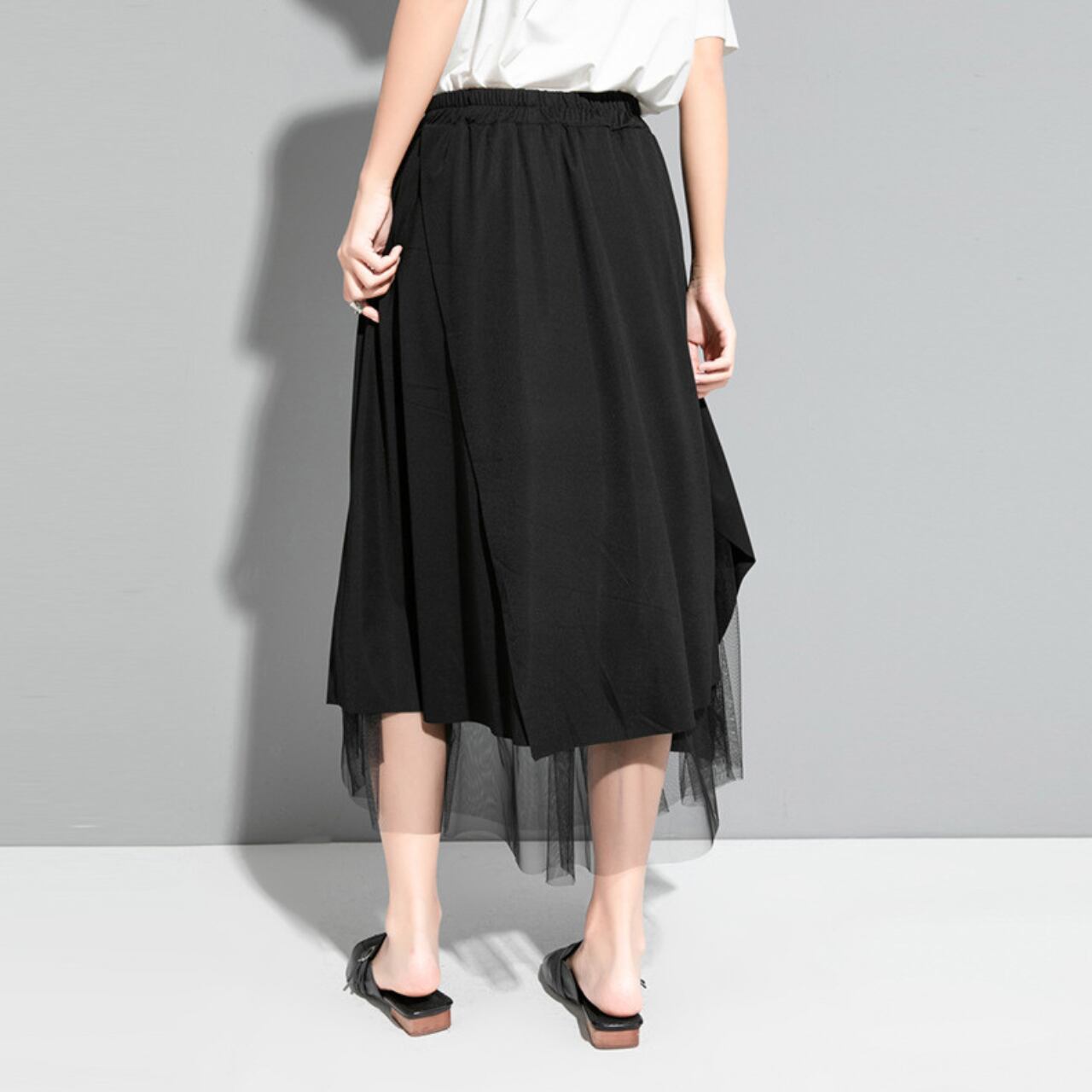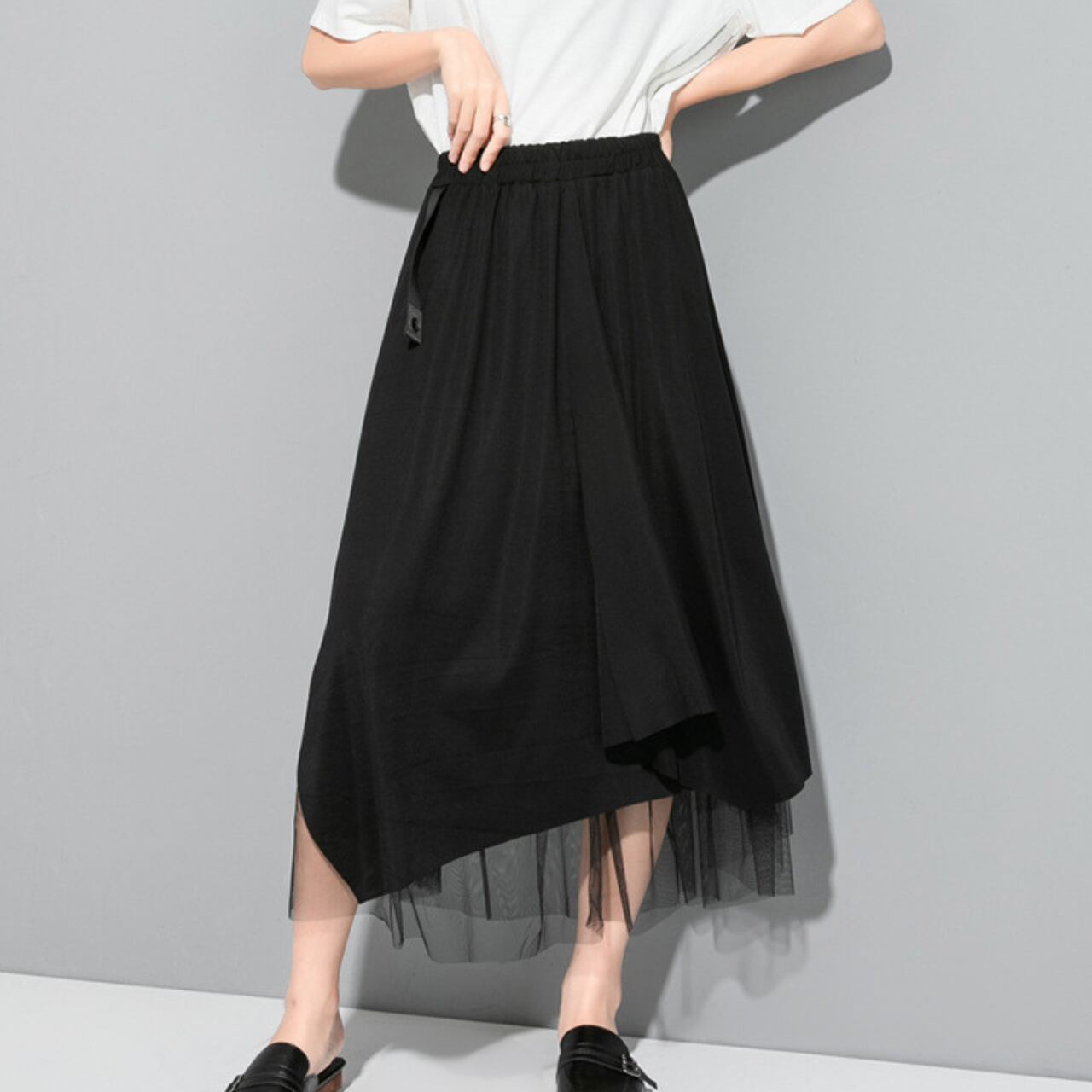 Asymmetrical Design Tulle Layered Waist Rubber Long Skirt 00098