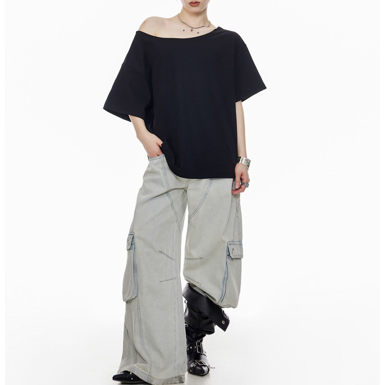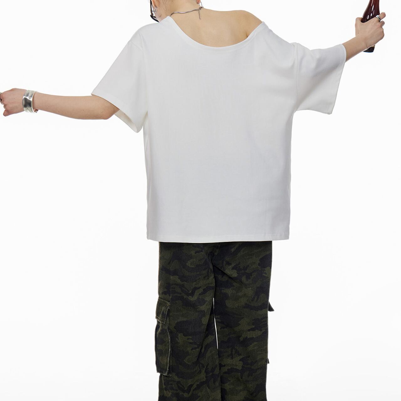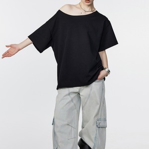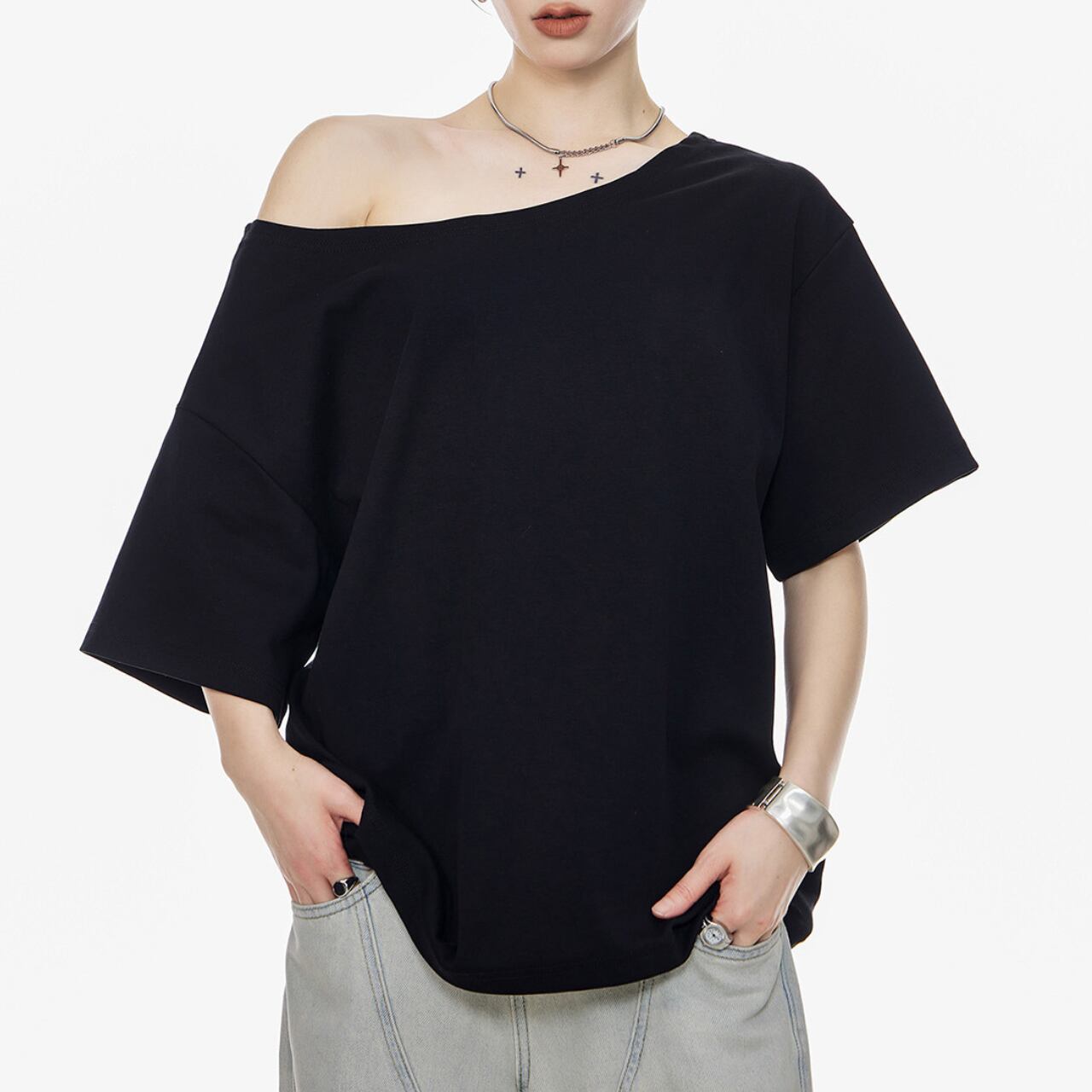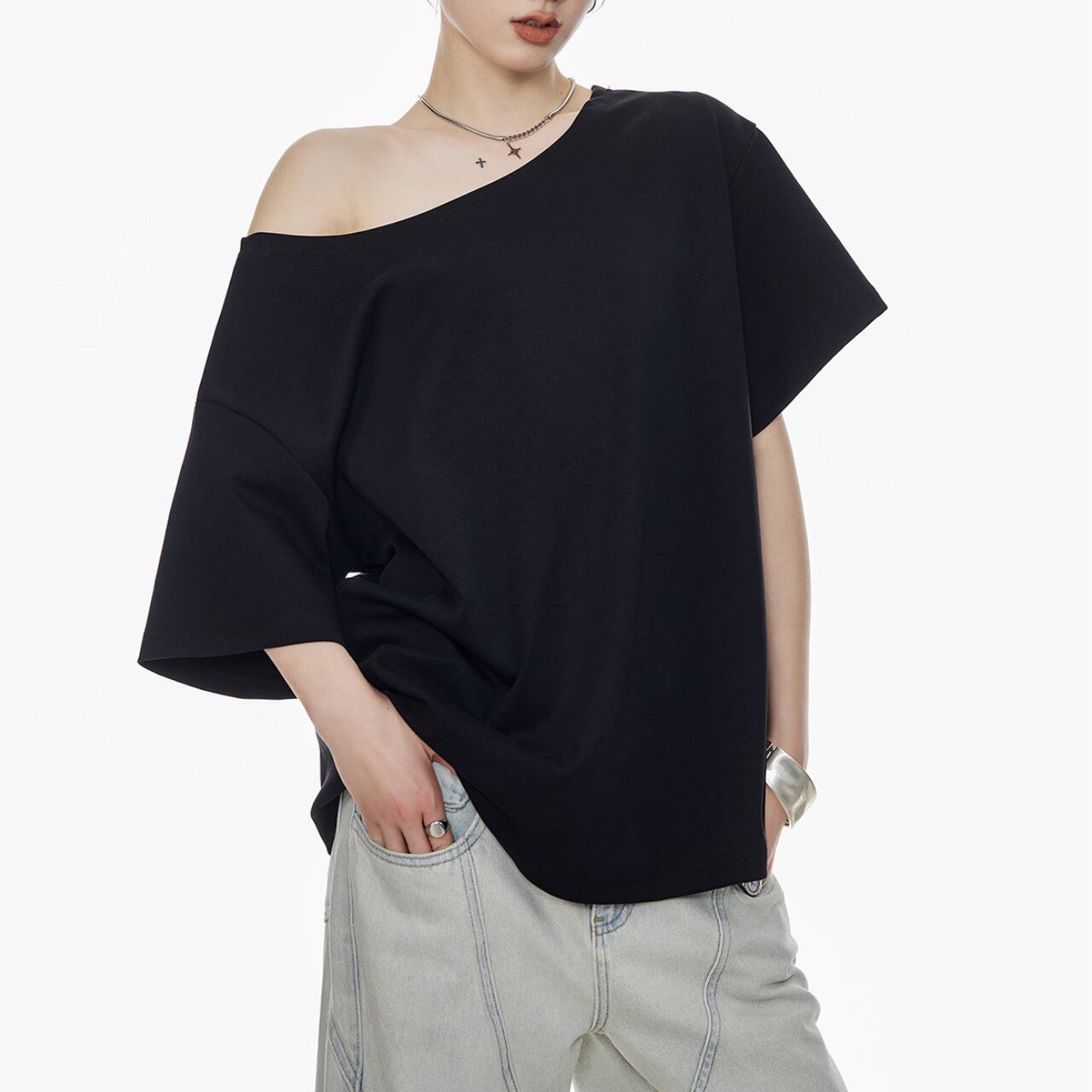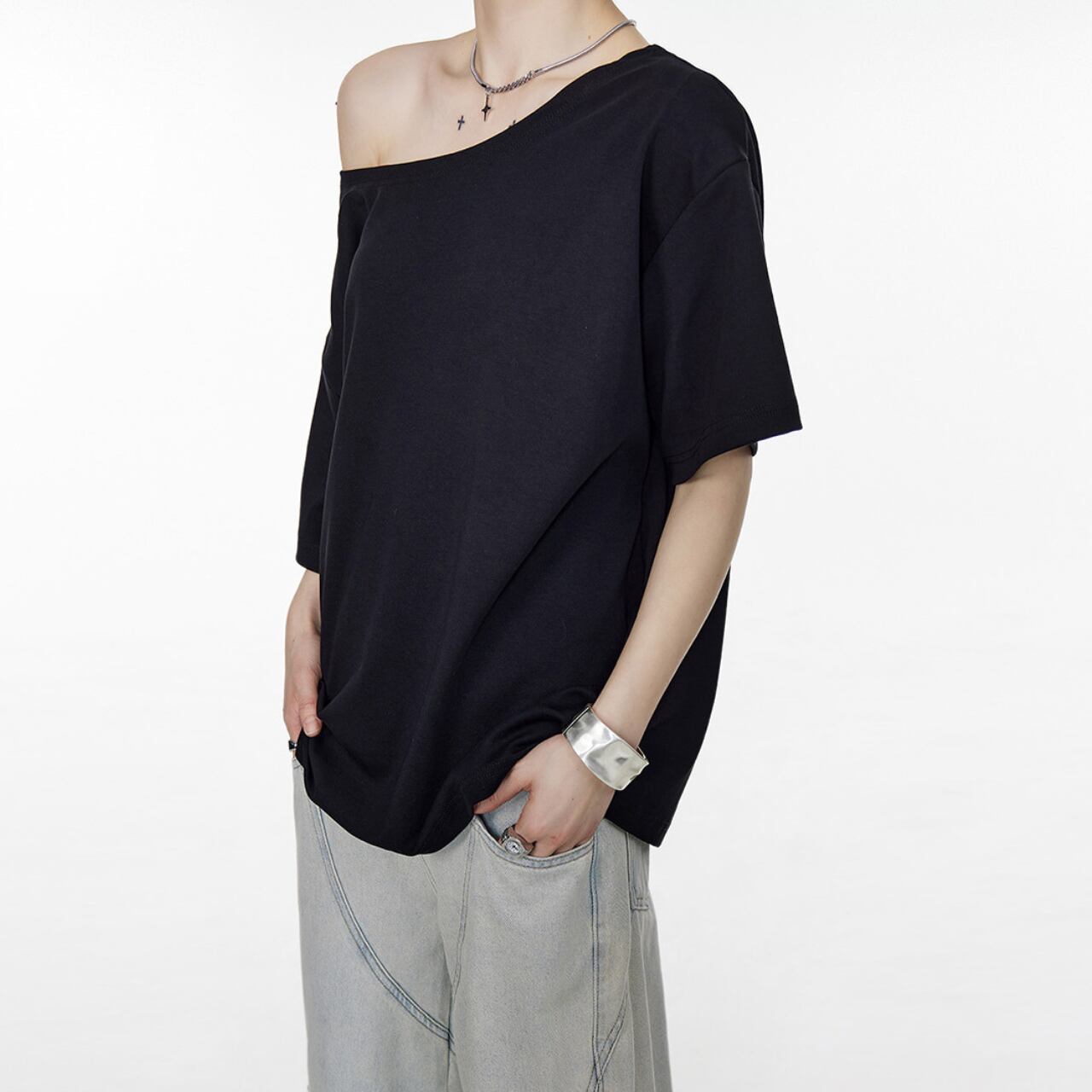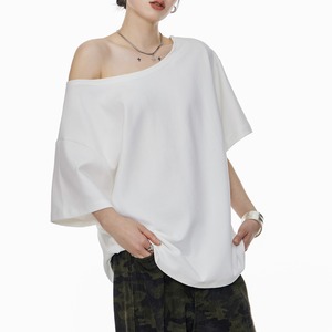 ワンショルダーのデザインが、さりげない個性を演出するトップス。 オーバーサイズのシルエットが、リラックスムードを漂わせます。 短めの袖丈で、季節を問わず着回しやすく、どんなボトムスとも相性抜群です。 カジュアルなスタイルから、アクセサリーをプラスした少しきれいめな装いまで、幅広いコーディネートに対応できます。 【サイズ】 S 肩幅 54cm 胸囲 110cm 着丈 56cm 袖丈 18.5cm M 肩幅 55cm 胸囲 114cm 着丈 57.5cm 袖丈 19cm L 肩幅 56cm 胸囲 118cm 着丈 59cm 袖丈 19.5cm XL 肩幅 57cm 胸囲 122cm 着丈 60.5cm 袖丈 20cm ※採寸方法により1~3cmの誤差がある場合がございます 【カラー】 ブラック ホワイト 【素材】 コットン ポリウレタン 【お届けについて】 こちらの商品は海外店舗より直接発送となる為、ご入金から1週間〜3週間前後で発送致します。 ◼️注意事項 ・タイミングによっては 商品在庫切れにより注文キャンセルとさせていただく恐れもございますので、予めご了承くださいませ。 ・こちらは輸入品となります。 日本製とは検品基準が異なる為、新品未使用品でも、ごくわずかな汚れや傷がある場合もございます。 ・商品の色味は、お手持ちのデバイスの画面によって実物と若干異なる場合がございます。 ・イメージ違いやサイズ等、お客様都合による交換、返品、キャンセルは対応出来かねます。 ———————————— ご購入前にこちらをお読みください →https://shop.remtry.net/about ————————————