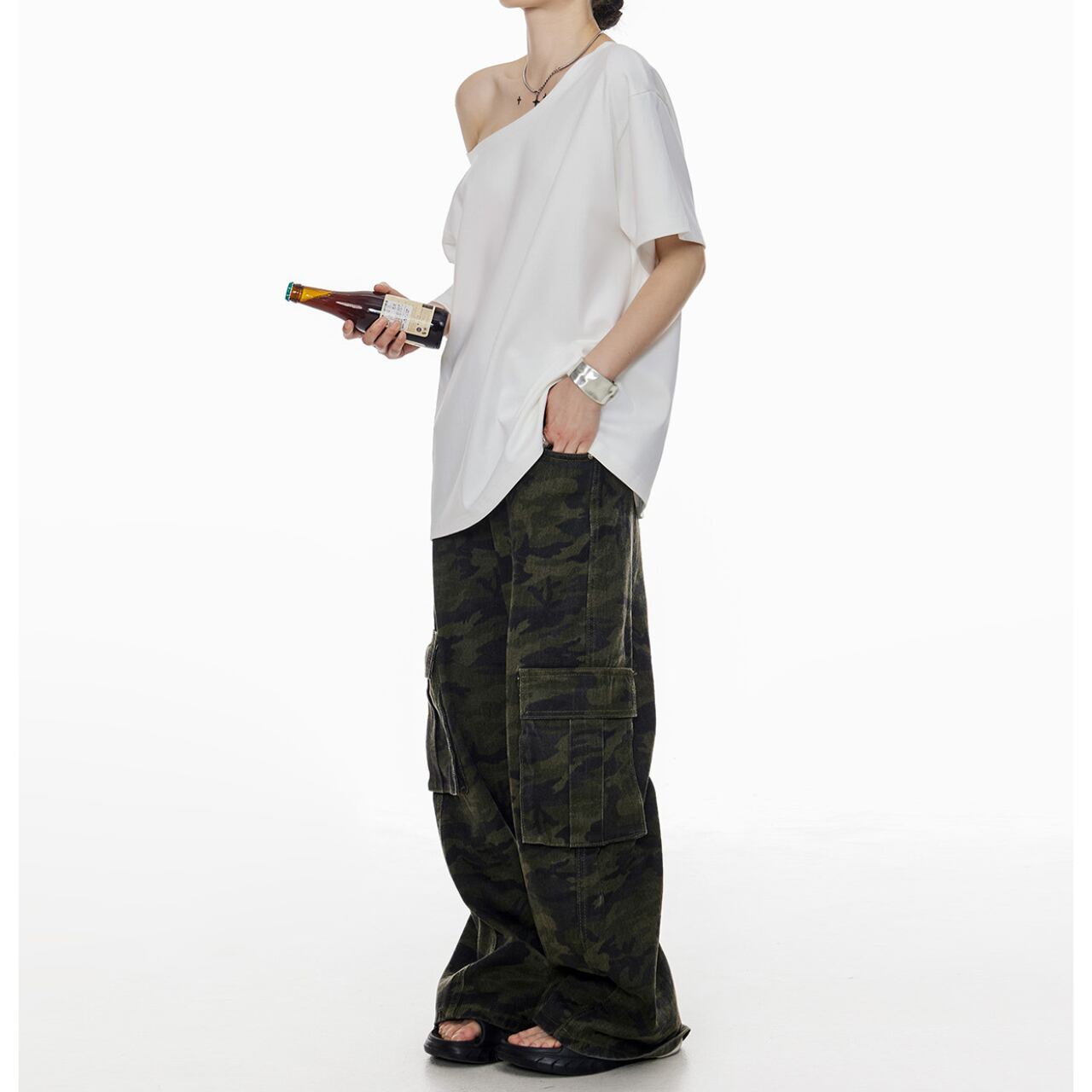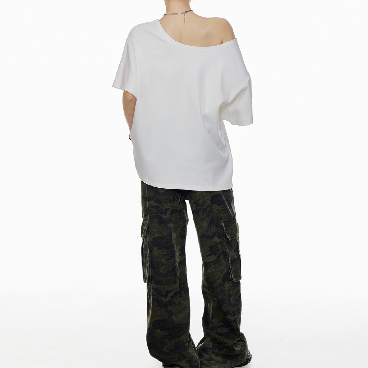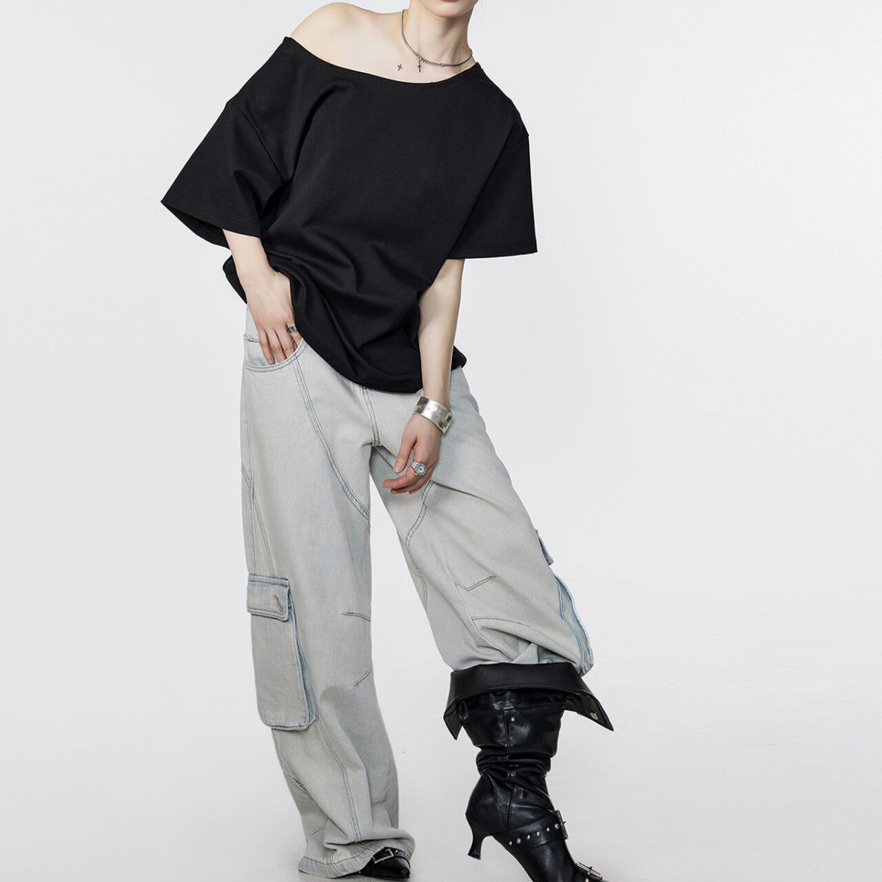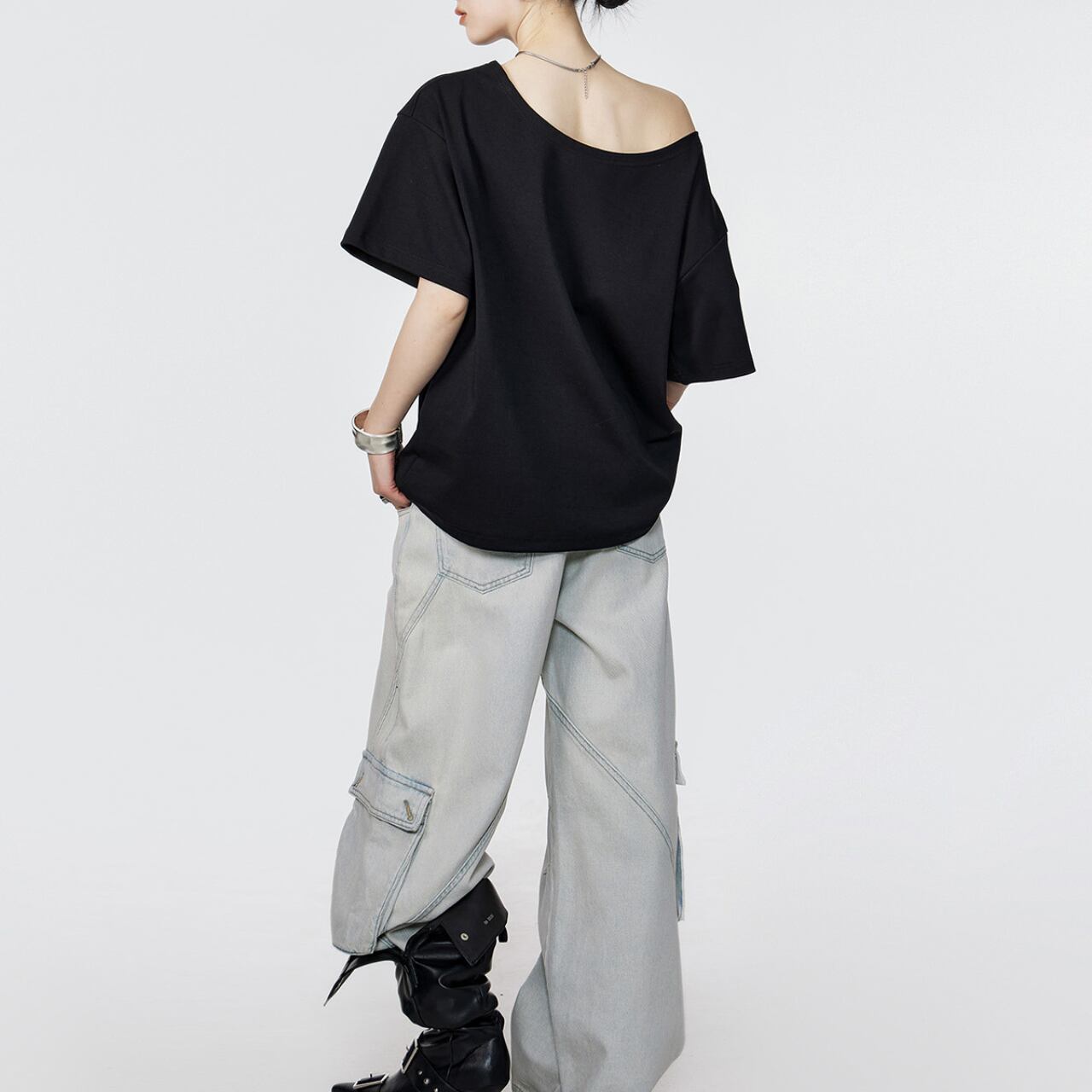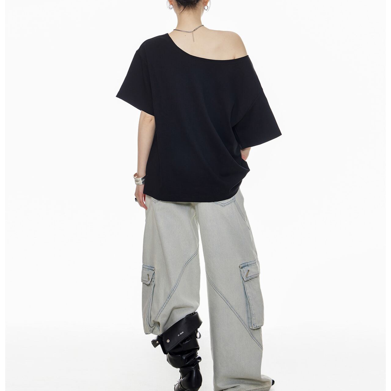 ワンショルダーのデザインが、さりげない個性を演出するトップス。 オーバーサイズのシルエットが、リラックスムードを漂わせます。 短めの袖丈で、季節を問わず着回しやすく、どんなボトムスとも相性抜群です。 カジュアルなスタイルから、アクセサリーをプラスした少しきれいめな装いまで、幅広いコーディネートに対応できます。 【サイズ】 S 肩幅 54cm 胸囲 110cm 着丈 56cm 袖丈 18.5cm M 肩幅 55cm 胸囲 114cm 着丈 57.5cm 袖丈 19cm L 肩幅 56cm 胸囲 118cm 着丈 59cm 袖丈 19.5cm XL 肩幅 57cm 胸囲 122cm 着丈 60.5cm 袖丈 20cm ※採寸方法により1~3cmの誤差がある場合がございます 【カラー】 ブラック ホワイト 【素材】 コットン ポリウレタン 【お届けについて】 こちらの商品は海外店舗より直接発送となる為、ご入金から1週間〜3週間前後で発送致します。 ◼️注意事項 ・タイミングによっては 商品在庫切れにより注文キャンセルとさせていただく恐れもございますので、予めご了承くださいませ。 ・こちらは輸入品となります。 日本製とは検品基準が異なる為、新品未使用品でも、ごくわずかな汚れや傷がある場合もございます。 ・商品の色味は、お手持ちのデバイスの画面によって実物と若干異なる場合がございます。 ・イメージ違いやサイズ等、お客様都合による交換、返品、キャンセルは対応出来かねます。 ———————————— ご購入前にこちらをお読みください →https://shop.remtry.net/about ————————————