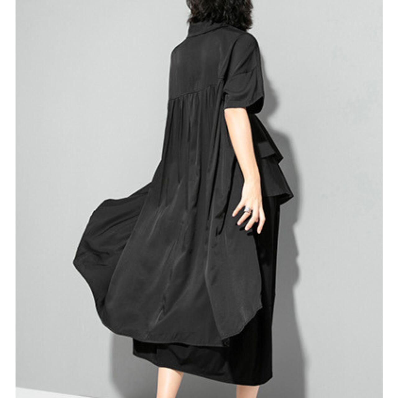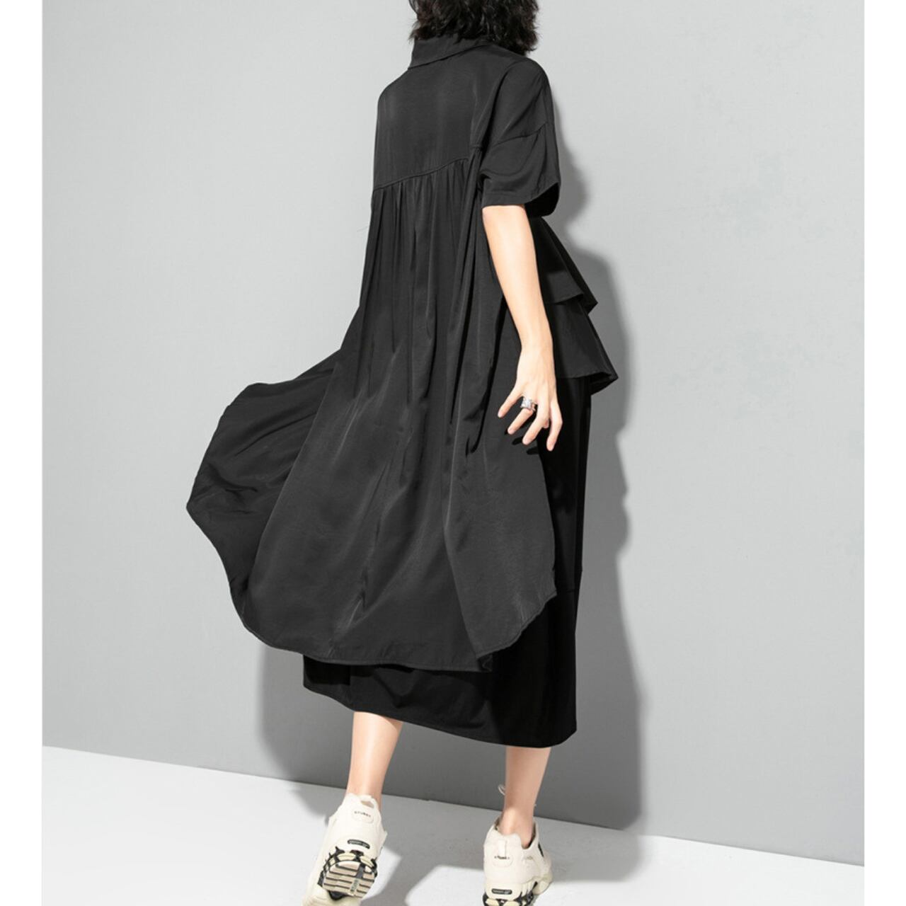 大胆なフレアスリーブと裾のイレギュラーヘムが、着こなしに動きと個性をプラスします。