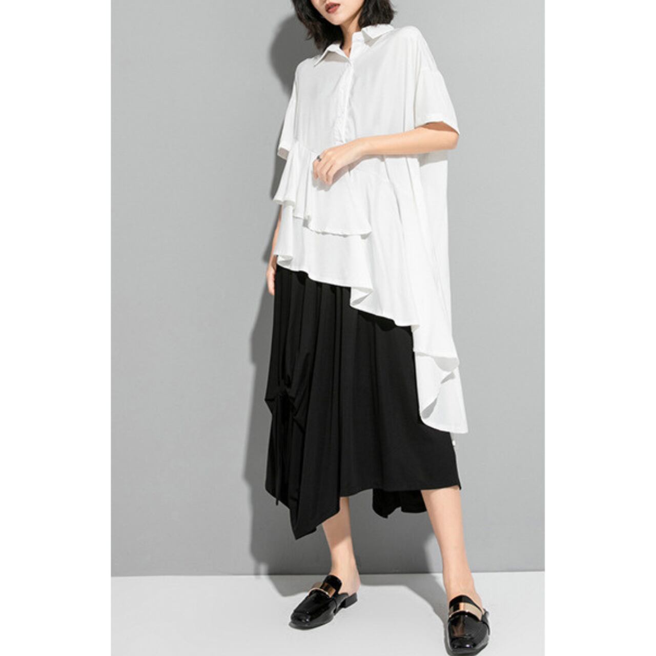 Oversized Asymmetrical Flare Shirt 00107