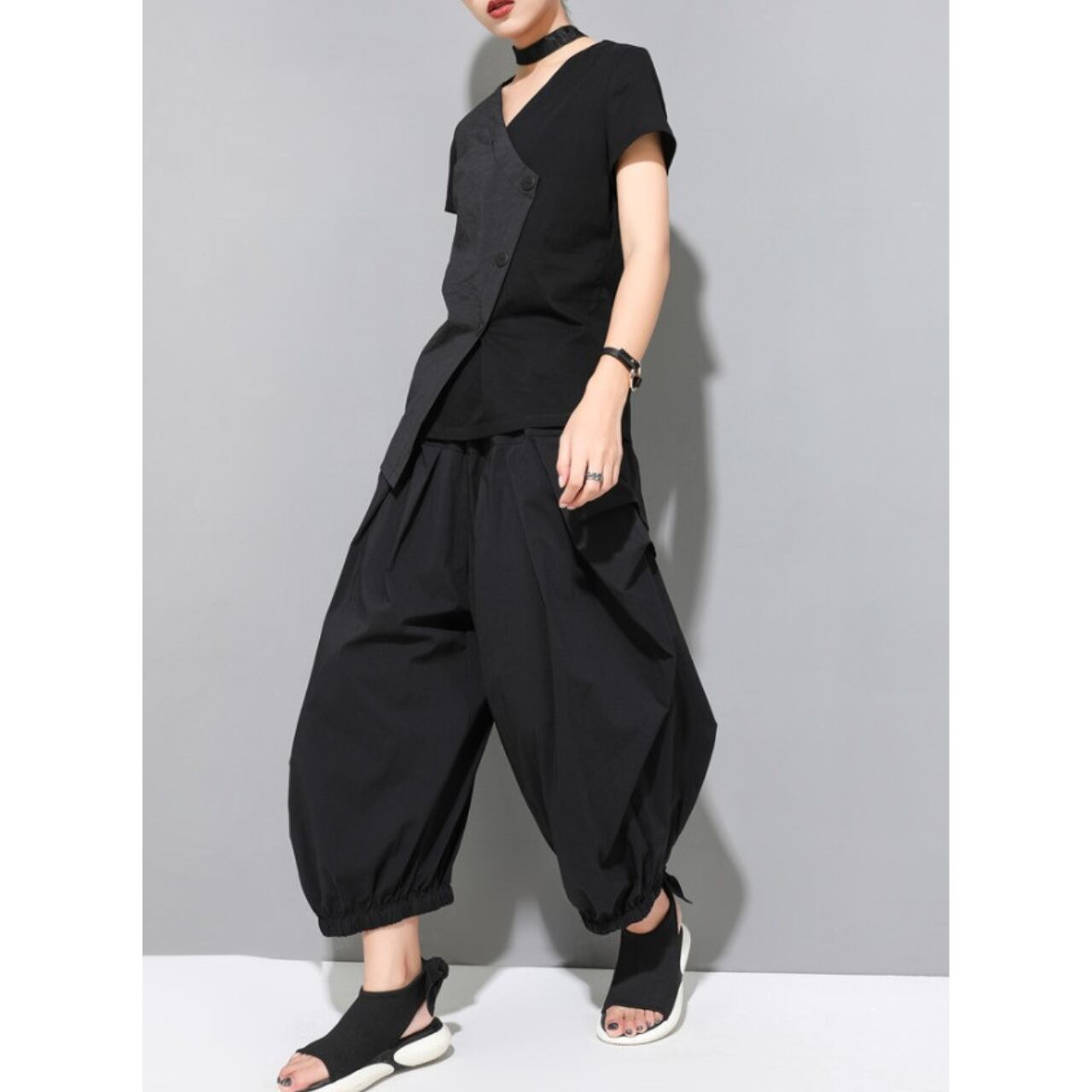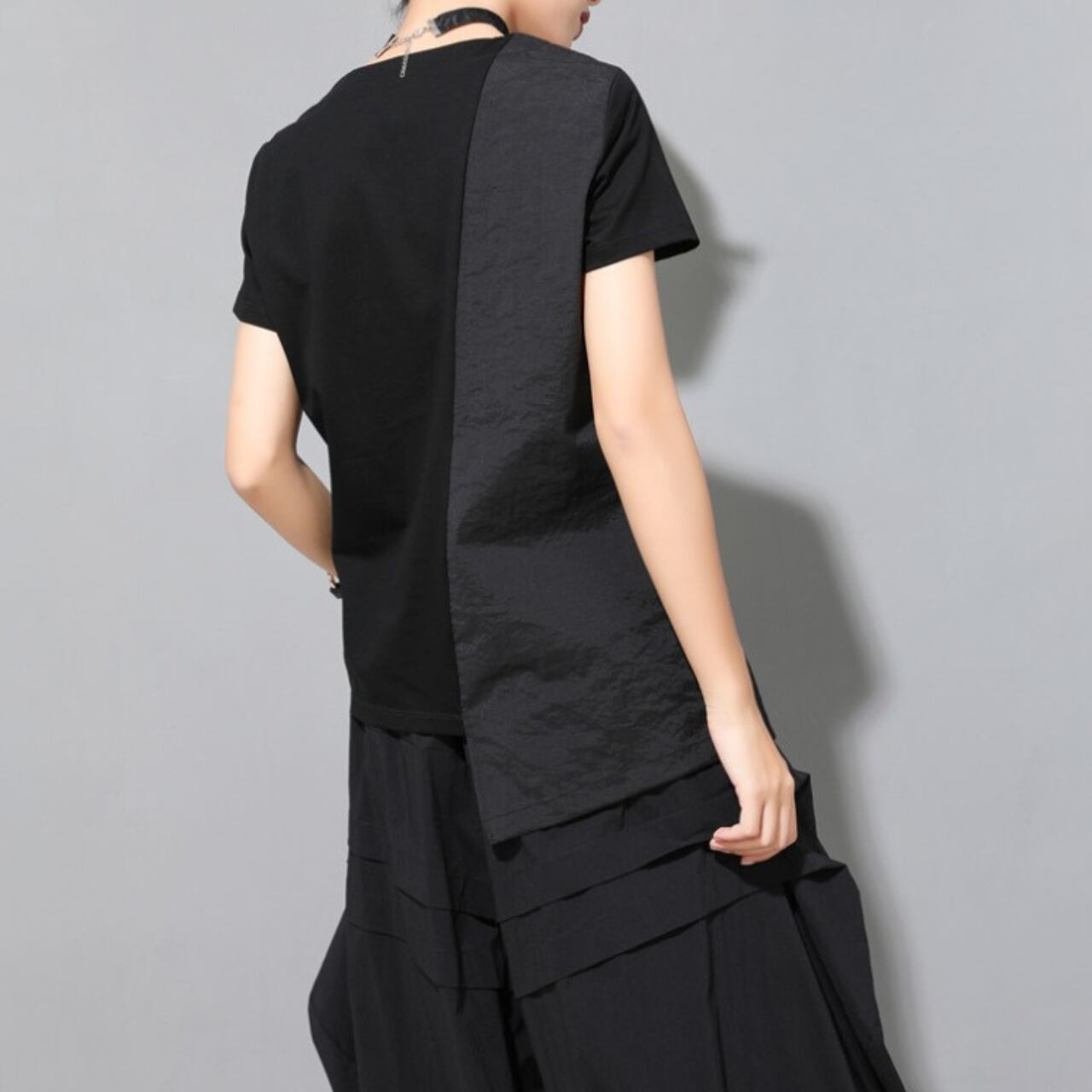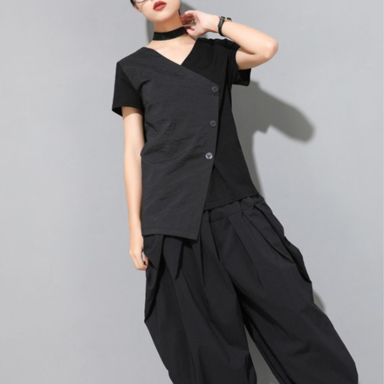 大胆なVネックと斜めに配置されたボタンが目を惹く、ショートスリーブブラウス。 シャープかつスタイリッシュな印象を演出します。 シンプルなデザインながらも、個性的なシルエットで着こなしにアクセントを加え、パンツスタイルにもスカートスタイルにも合わせやすい一枚です。 【サイズ】 M 肩幅 37cm 胸囲 92cm 着丈左 68cm 着丈右 60cm 袖丈 16cm L 肩幅 38cm 胸囲 96cm 着丈左 69cm 着丈右 61cm 袖丈 17cm XL 肩幅 39cm 胸囲 100cm 着丈左 70cm 着丈右 62cm 袖丈 18cm XXL 肩幅 40cm 胸囲 104cm 着丈左 71cm 着丈右 63cm 袖丈 19cm ※採寸方法により1~3cmの誤差がある場合がございます 【カラー】 ブラック 【素材】 ナイロン アクリル 【お届けについて】 こちらの商品は海外店舗より直接発送となる為、ご入金から1週間〜3週間前後で発送致します。 ◼️注意事項 ・タイミングによっては 商品在庫切れにより注文キャンセルとさせていただく恐れもございますので、予めご了承くださいませ。 ・こちらは輸入品となります。 日本製とは検品基準が異なる為、新品未使用品でも、ごくわずかな汚れや傷がある場合もございます。 ・商品の色味は、お手持ちのデバイスの画面によって実物と若干異なる場合がございます。 ・イメージ違いやサイズ等、お客様都合による交換、返品、キャンセルは対応出来かねます。 ———————————— ご購入前にこちらをお読みください →https://shop.remtry.net/about ————————————