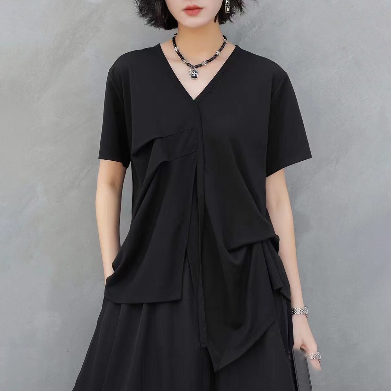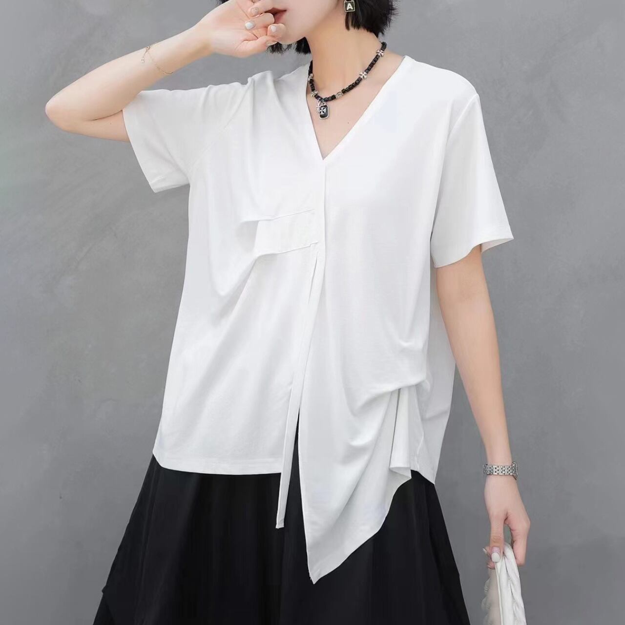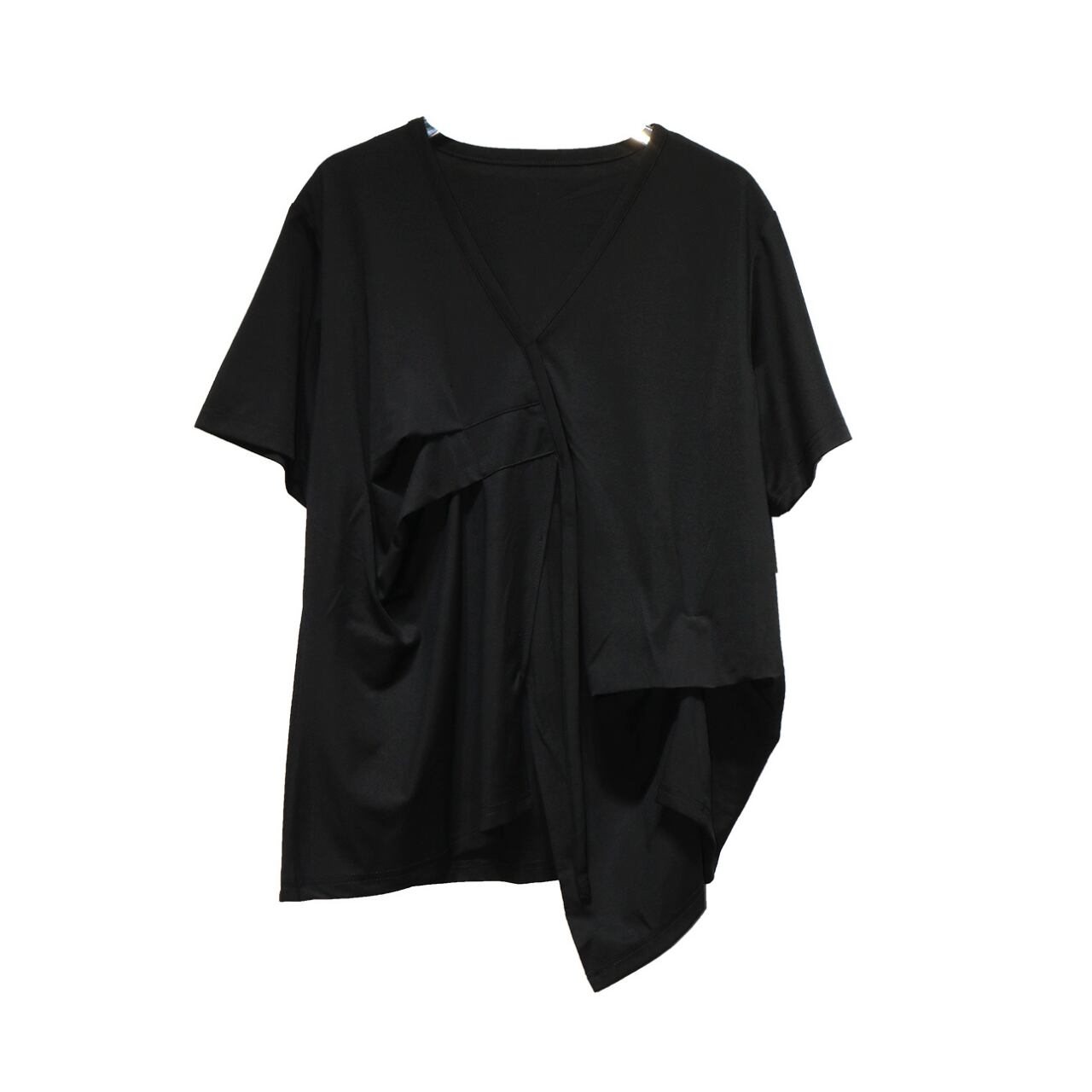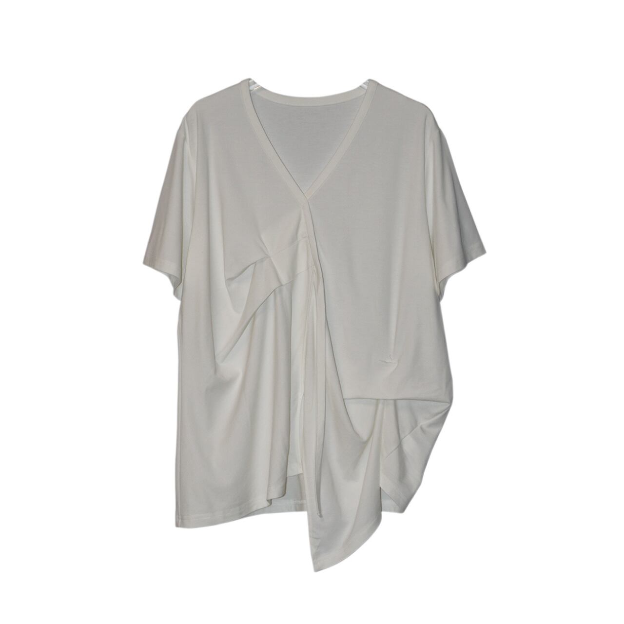 Drape Design Asymmetrical V-Neck Oversized T-Shirt 00117