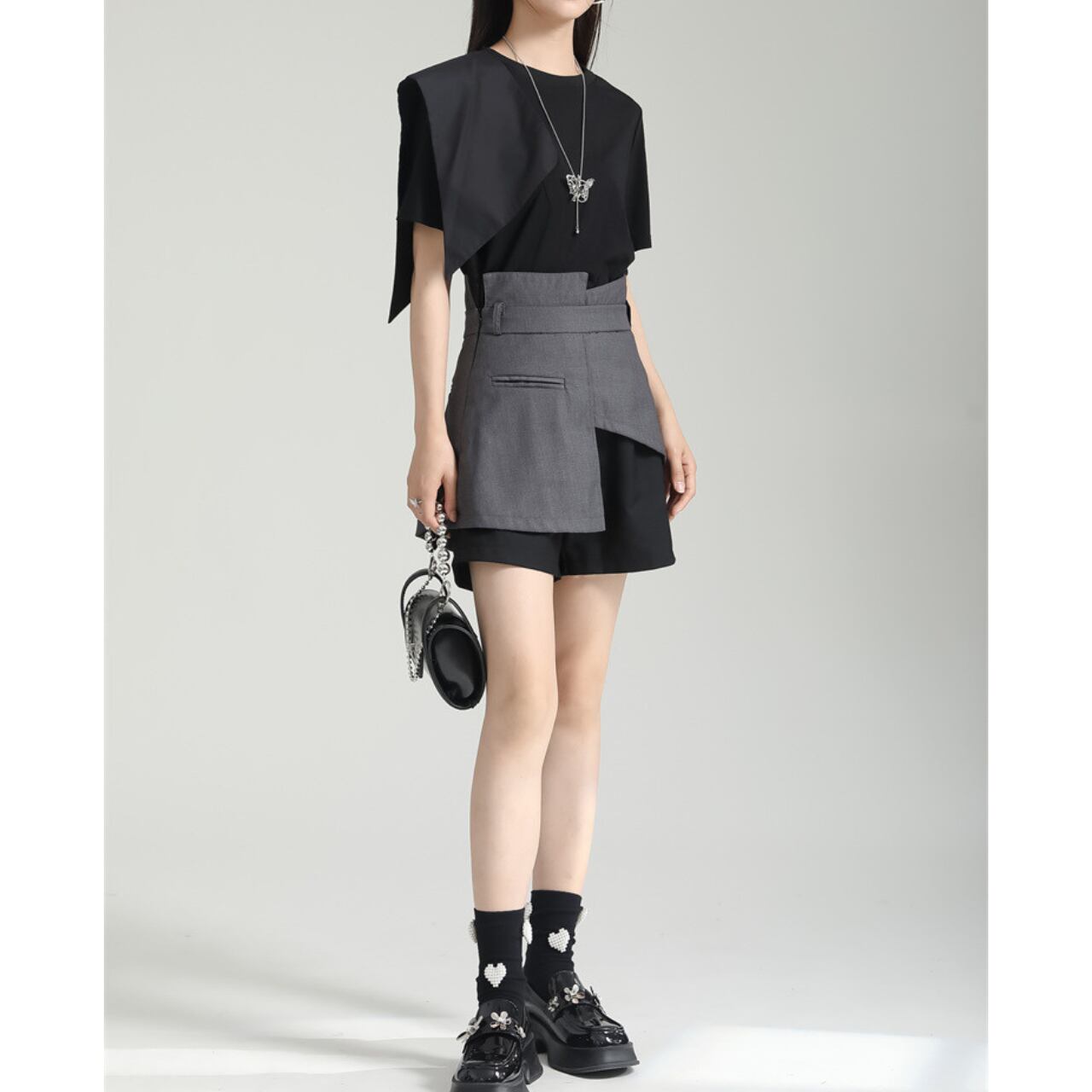 アシンメトリーなデザインが目を惹くスカート。 ハイウエストデザインとベルトでスタイルアップ効果も抜群です。 異なる素材の組み合わせが、洗練された印象を与えます。 シンプルながらも個性を主張できる、一枚で着映えするアイテムです。 【サイズ】 S ウエスト:66cm ヒップ:82cm スカート丈:43cm M ウエスト:70cm ヒップ:86cm スカート丈:44cm L ウエスト:74cm ヒップ:90cm スカート丈:45cm XL ウエスト:78cm ヒップ:94cm スカート丈:46cm XXL ウエスト:82cm ヒップ:98cm スカート丈:47cm ※採寸方法により1~3cmの誤差がある場合がございます 【カラー】 グレー 【素材】 ポリエステル 【お届けについて】 こちらの商品は海外店舗より直接発送となる為、ご入金から1週間〜3週間前後で発送致します。 ◼️注意事項 ・タイミングによっては 商品在庫切れにより注文キャンセルとさせていただく恐れもございますので、予めご了承くださいませ。 ・こちらは輸入品となります。 日本製とは検品基準が異なる為、新品未使用品でも、ごくわずかな汚れや傷がある場合もございます。 ・商品の色味は、お手持ちのデバイスの画面によって実物と若干異なる場合がございます。 ・イメージ違いやサイズ等、お客様都合による交換、返品、キャンセルは対応出来かねます。 ———————————— ご購入前にこちらをお読みください →https://shop.remtry.net/about ————————————