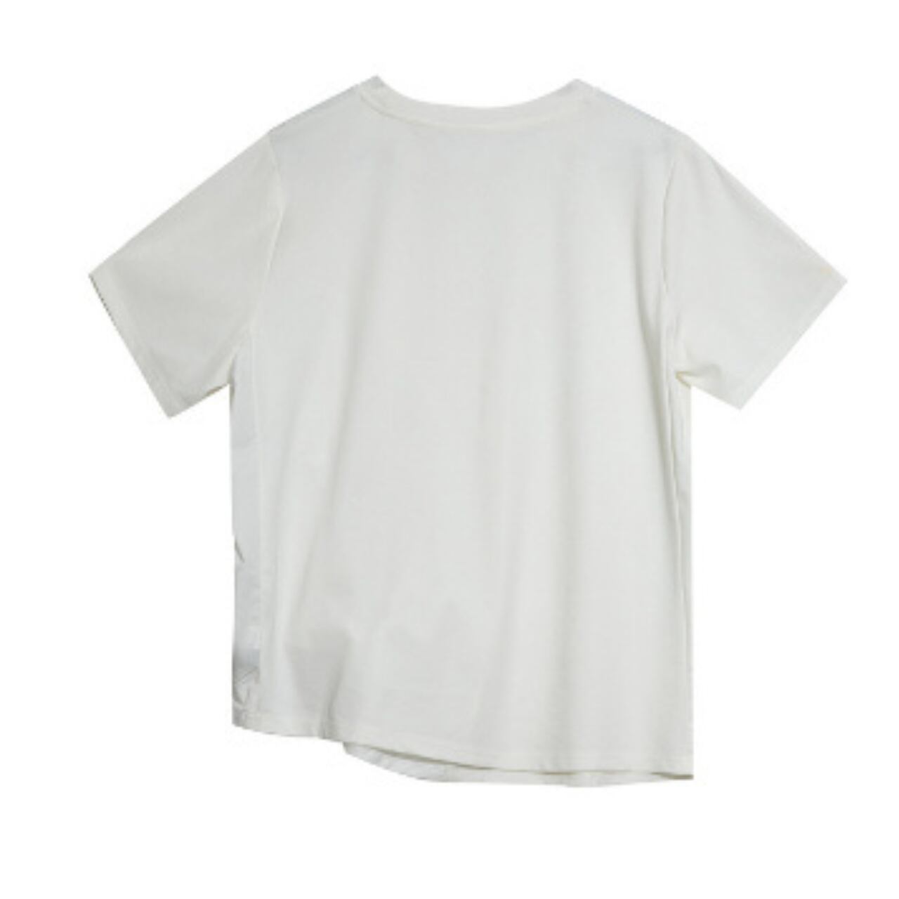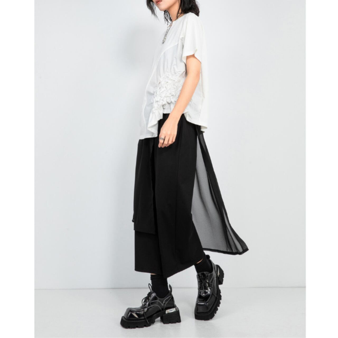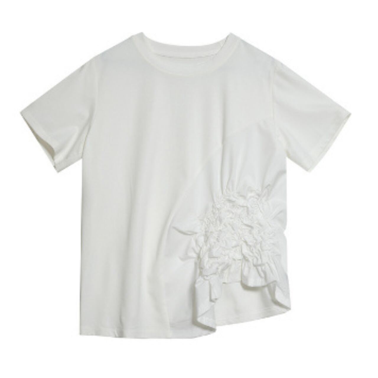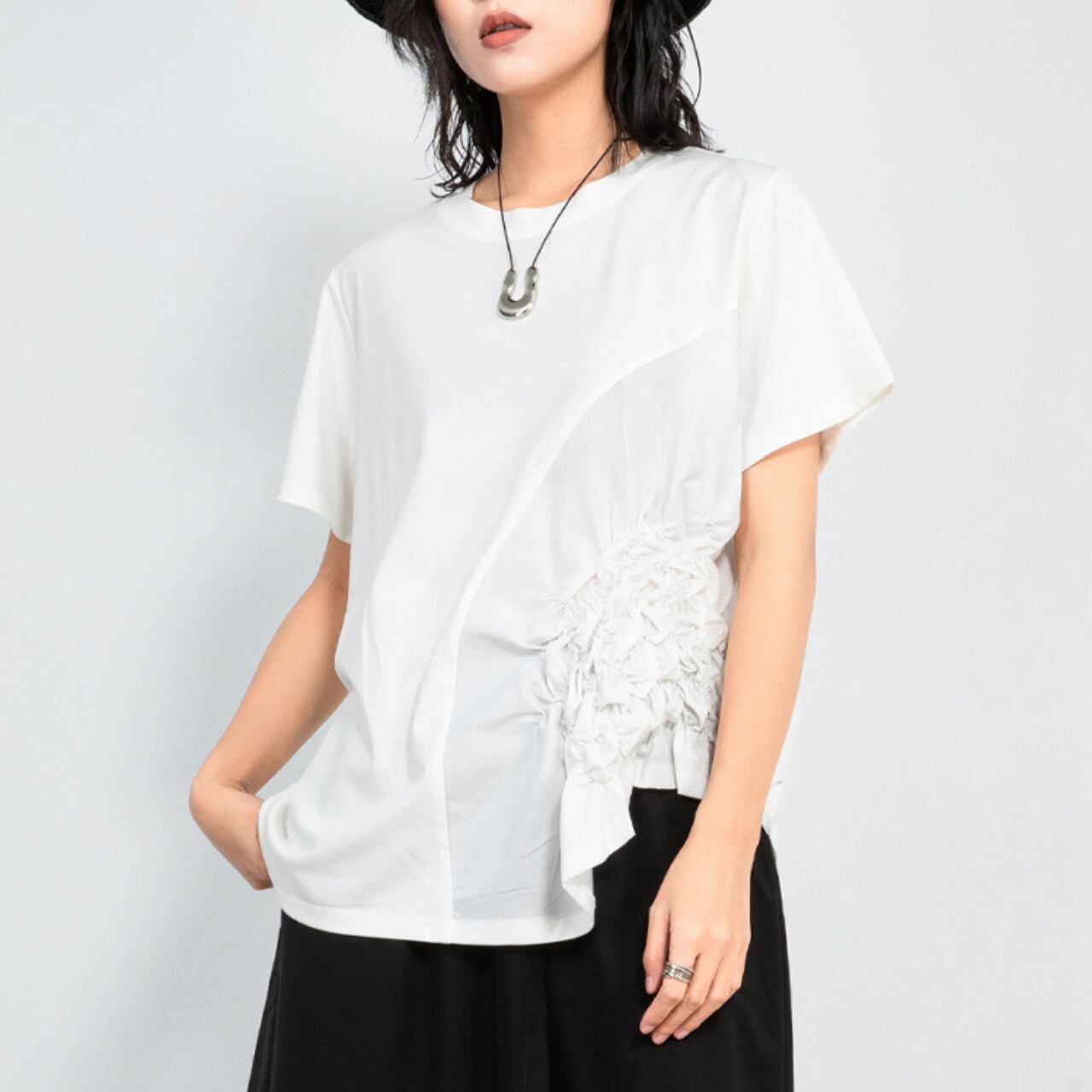 アシンメトリーなデザインが目を惹く、オーバーサイズのショートスリーブTシャツ。