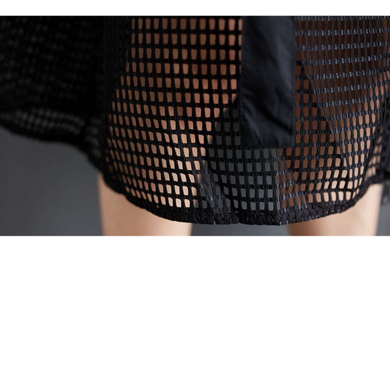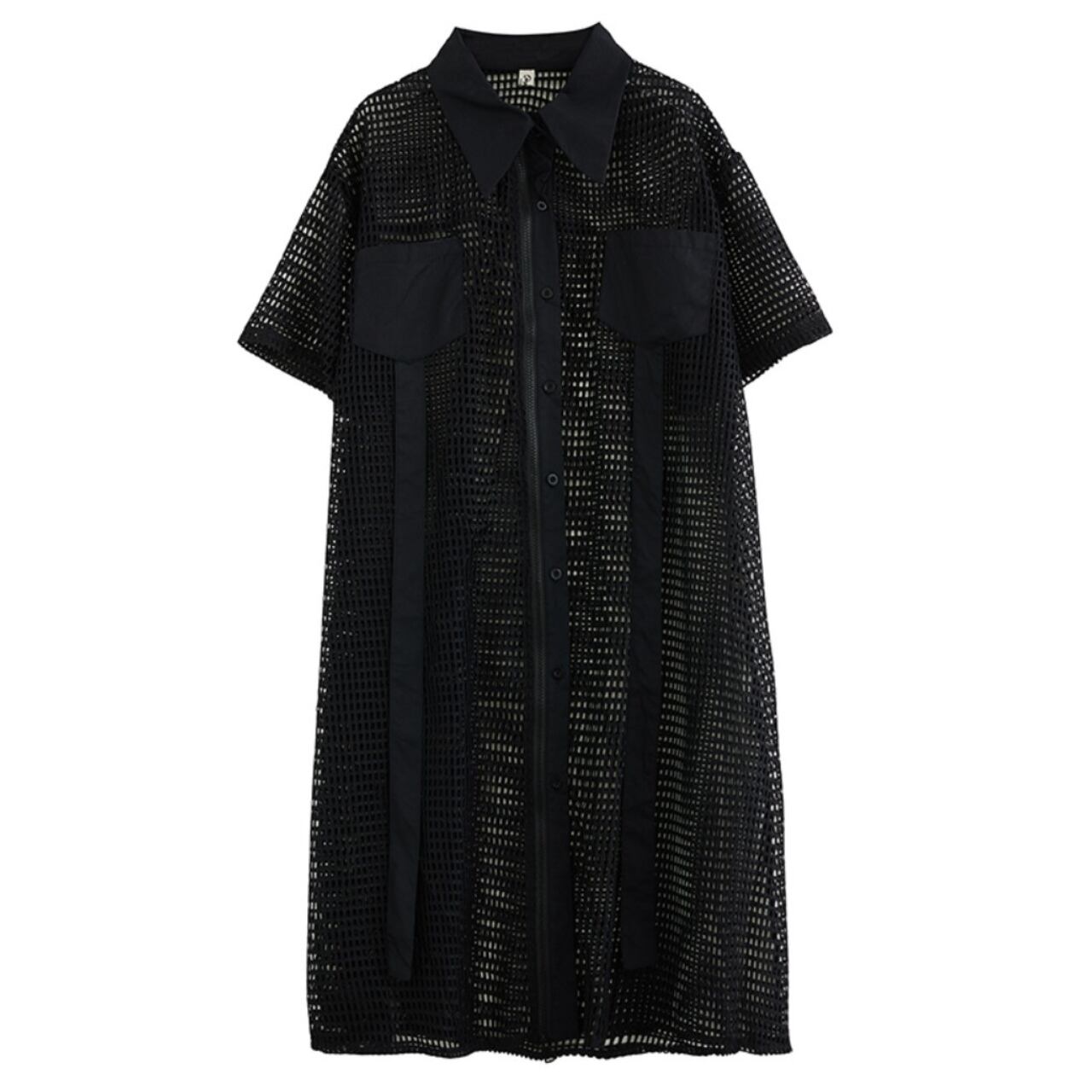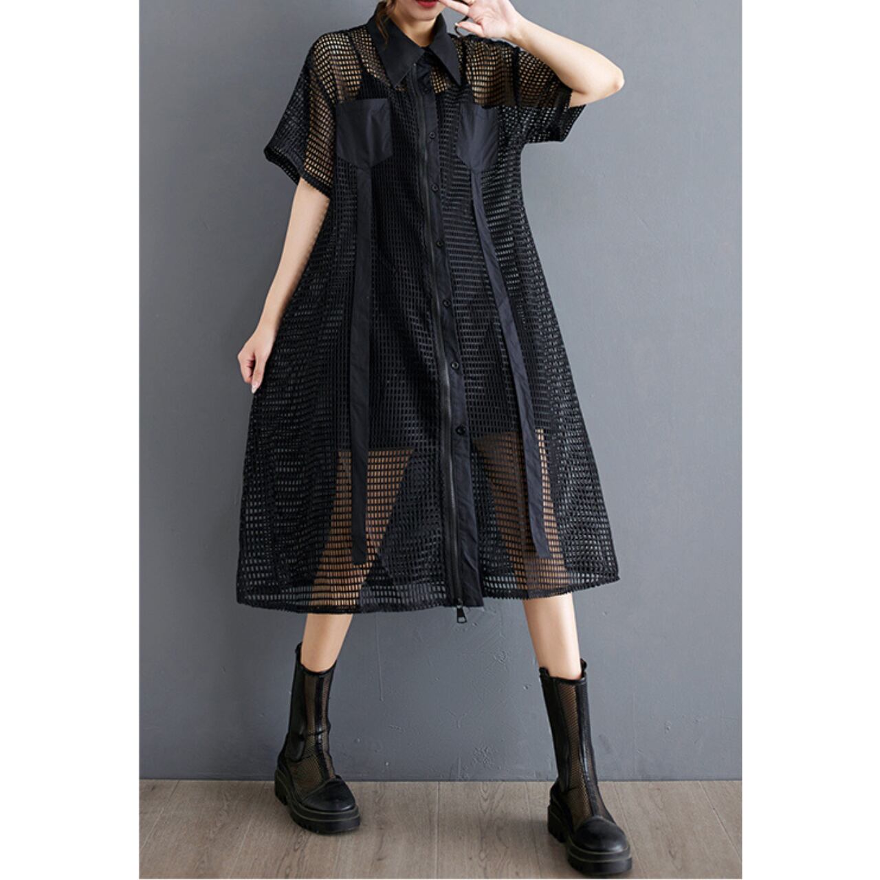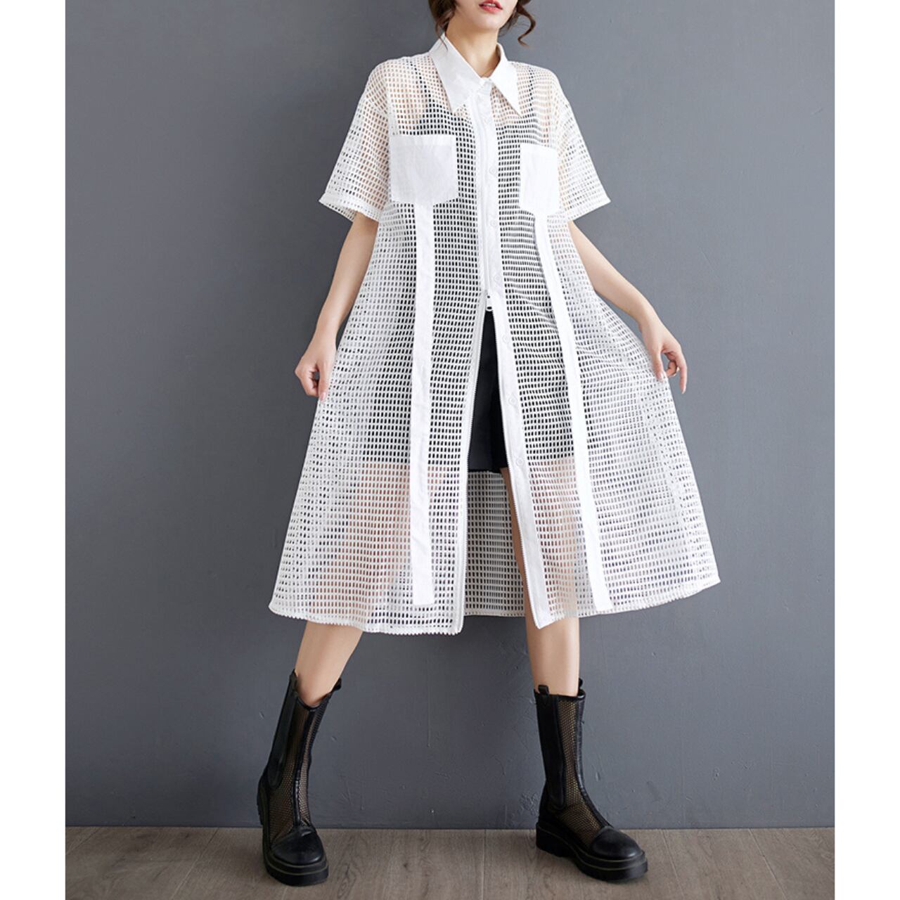 Mesh Material A-Line Front Button Shirt Dress 00134