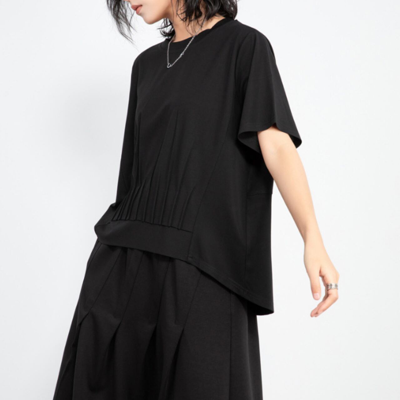 Tuck Design Box Silhouette Short Sleeve Top 00140