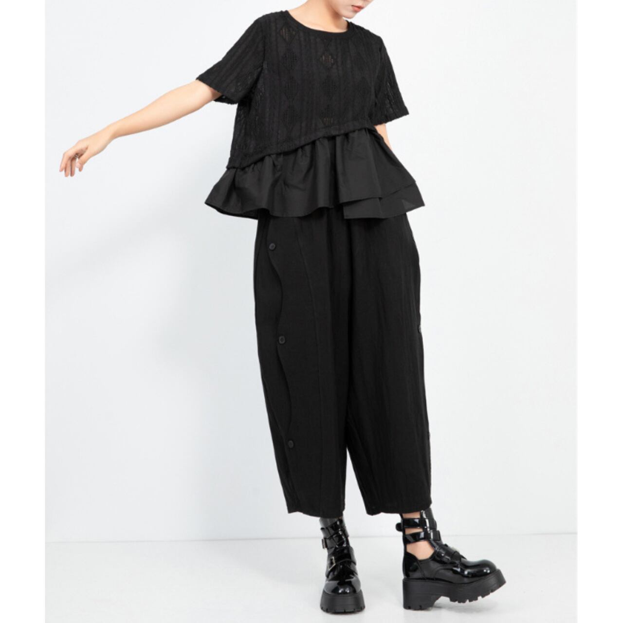二層になった裾が、動きのあるシルエットを生み出します。