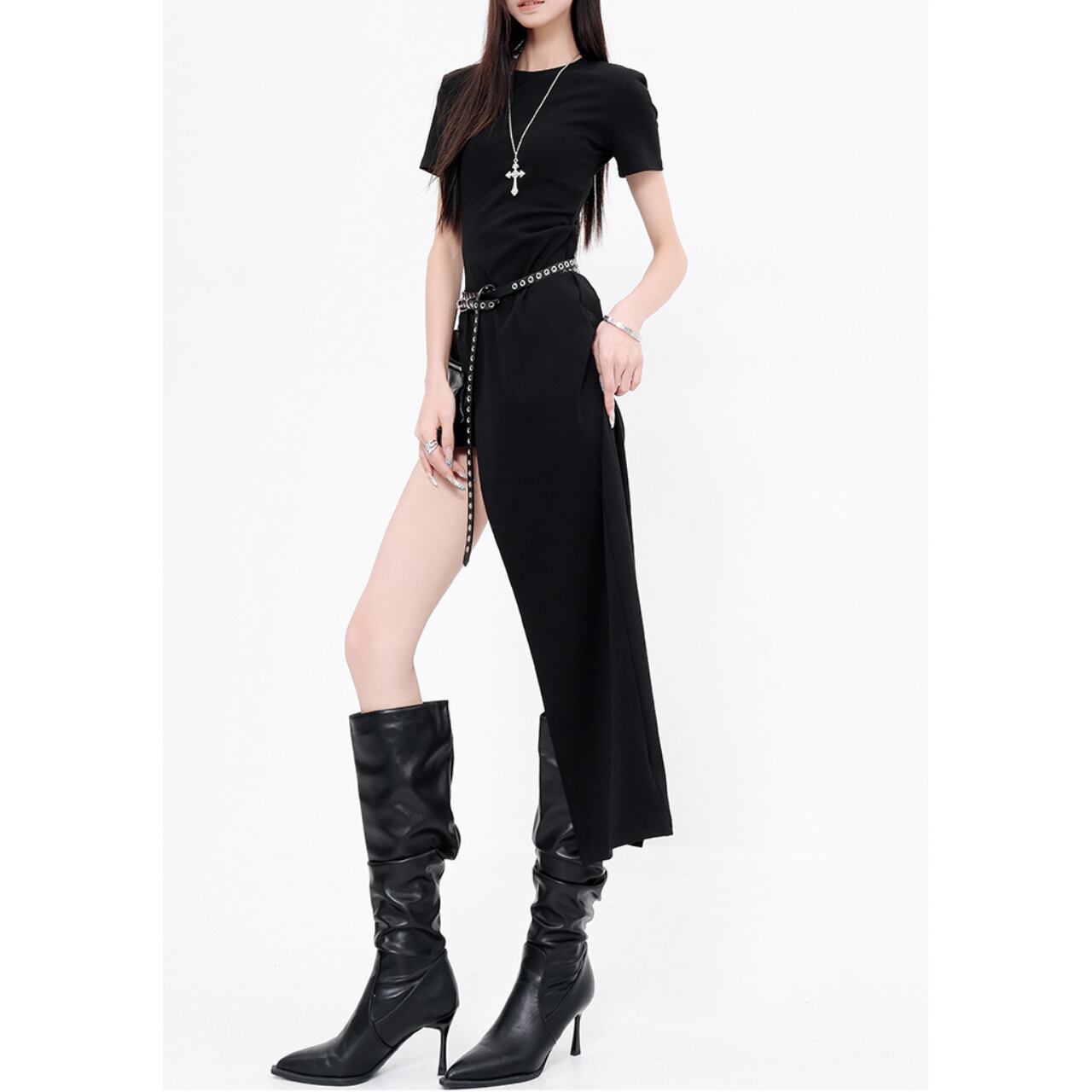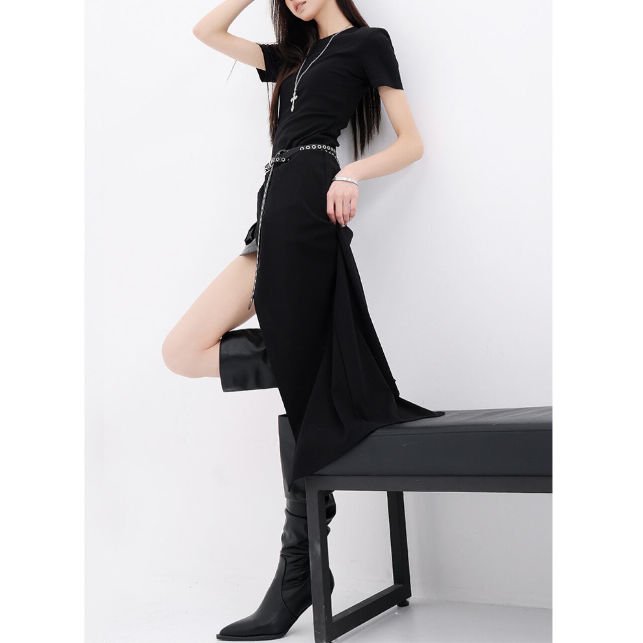 Tight Silhouette High Side Slit Tops 00144