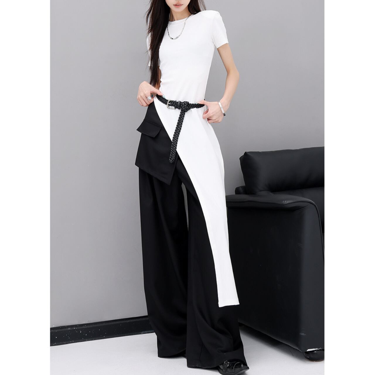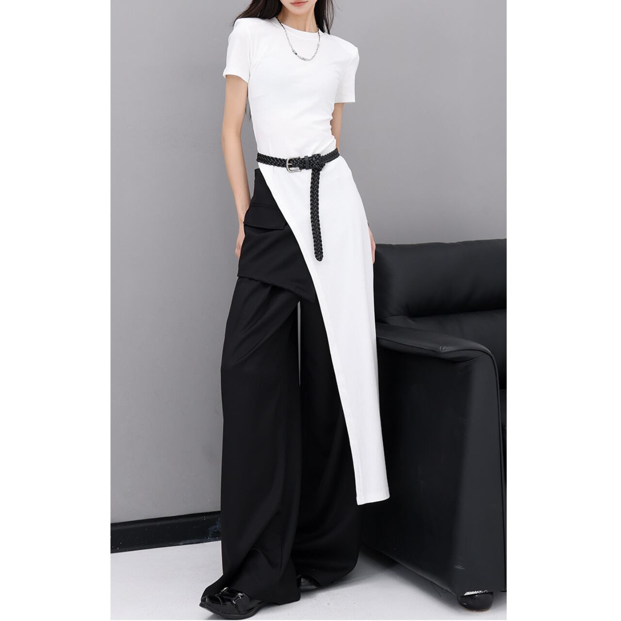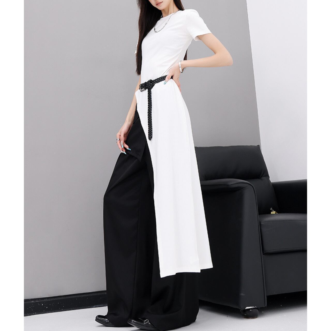 印象的なアシンメトリーカットが特徴のトップス。