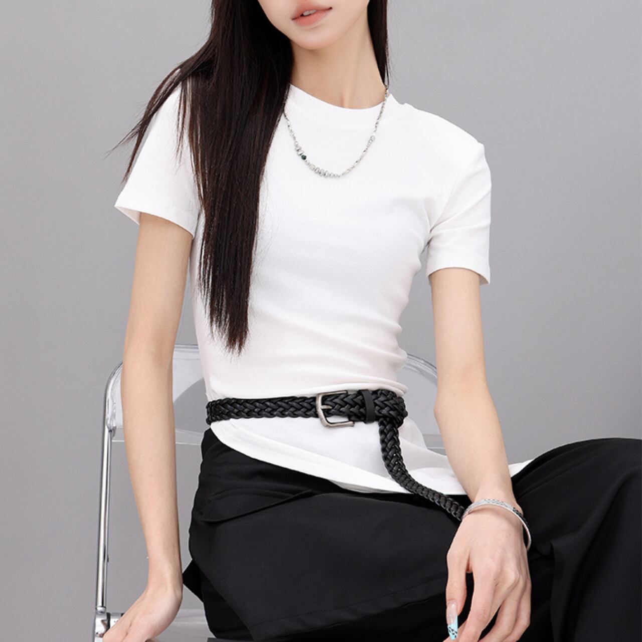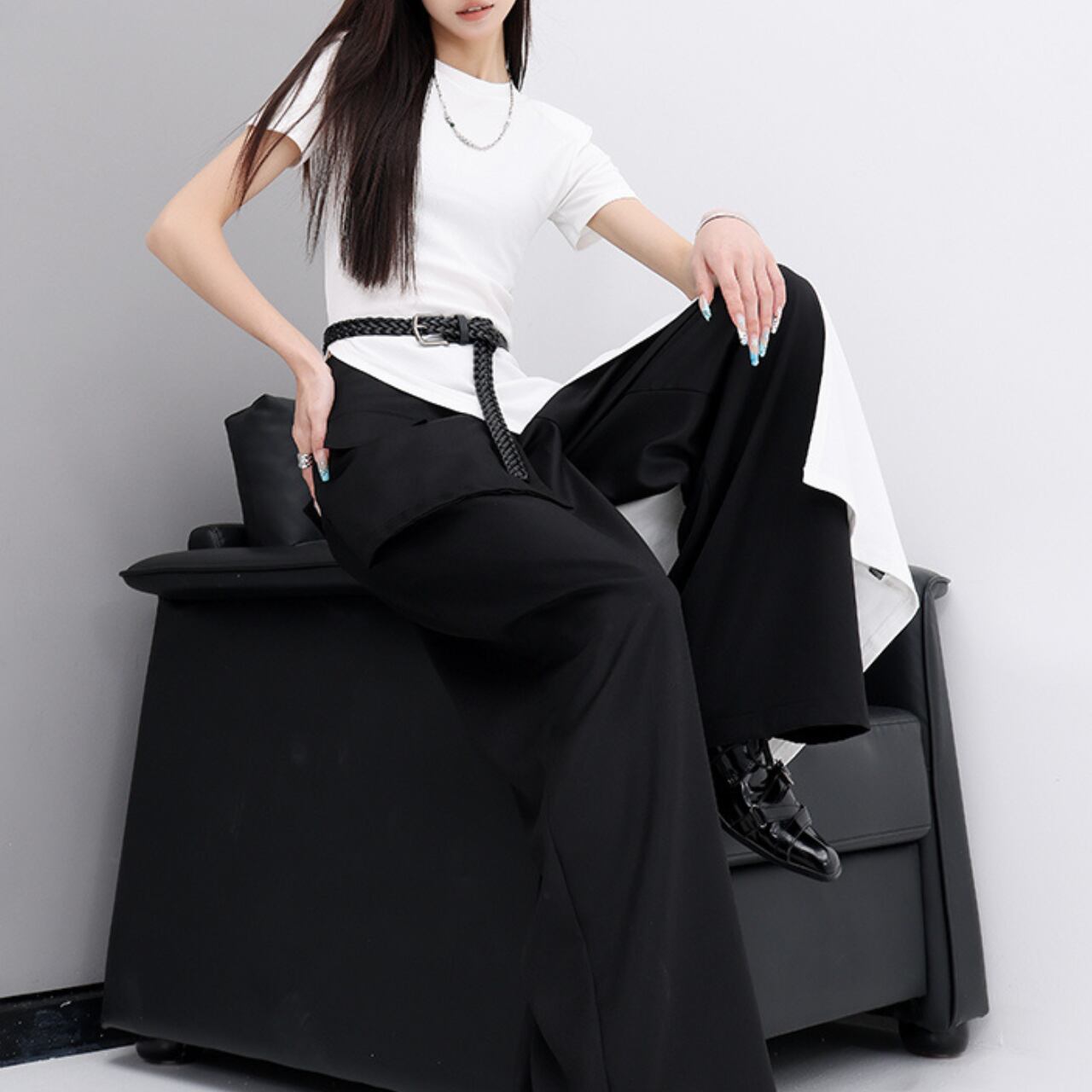 シンプルでミニマルなデザインながら、個性的なシルエットが着こなしにアクセントを添えます。