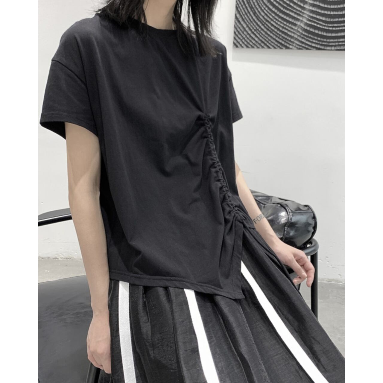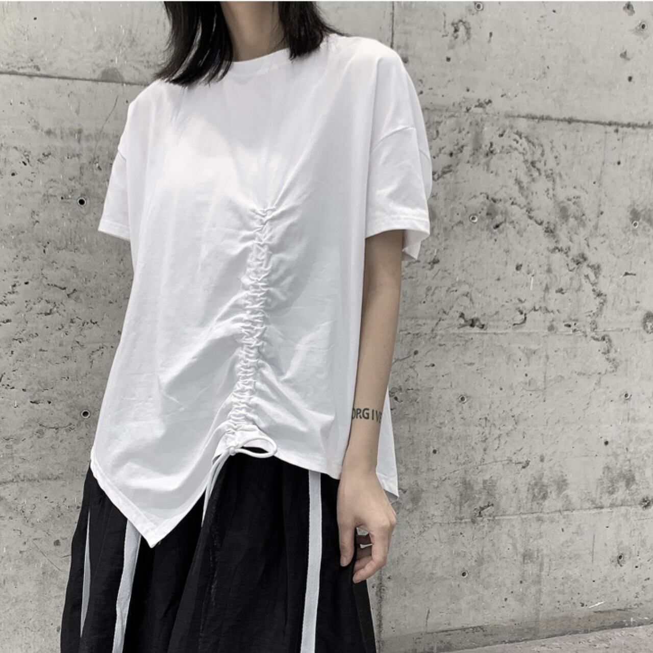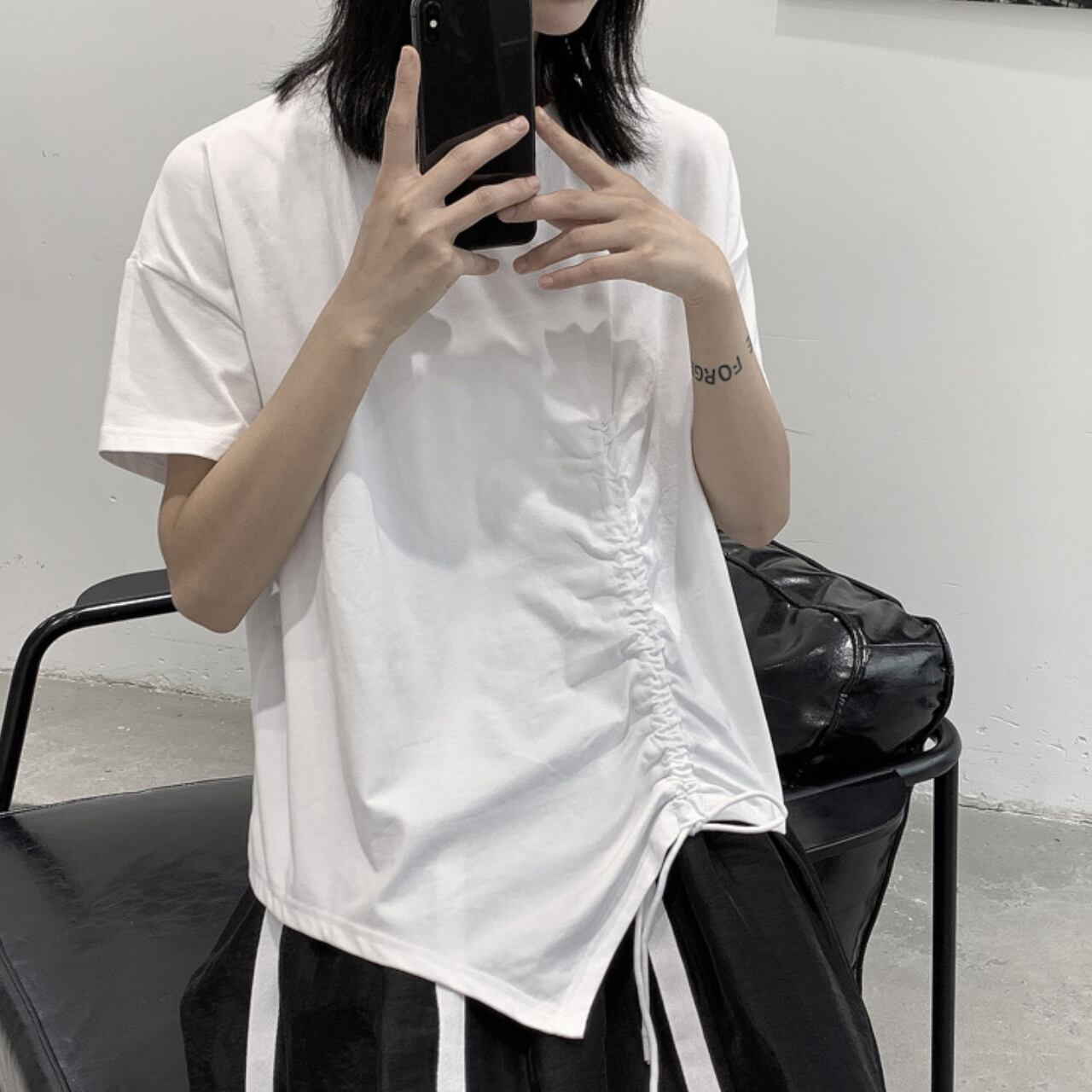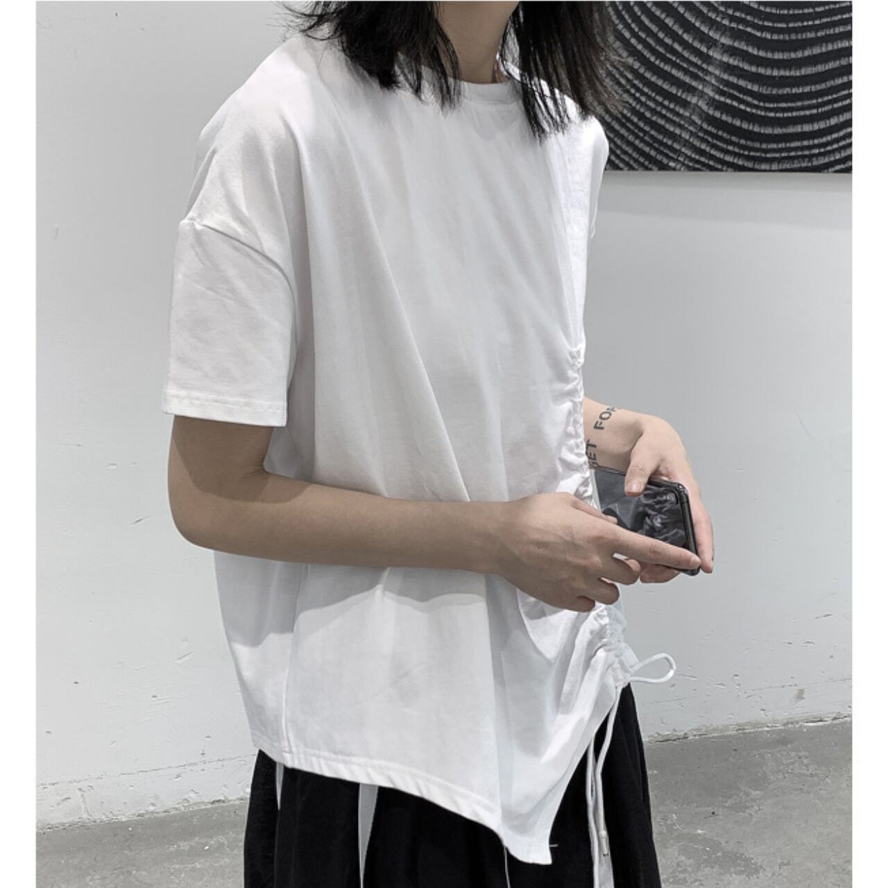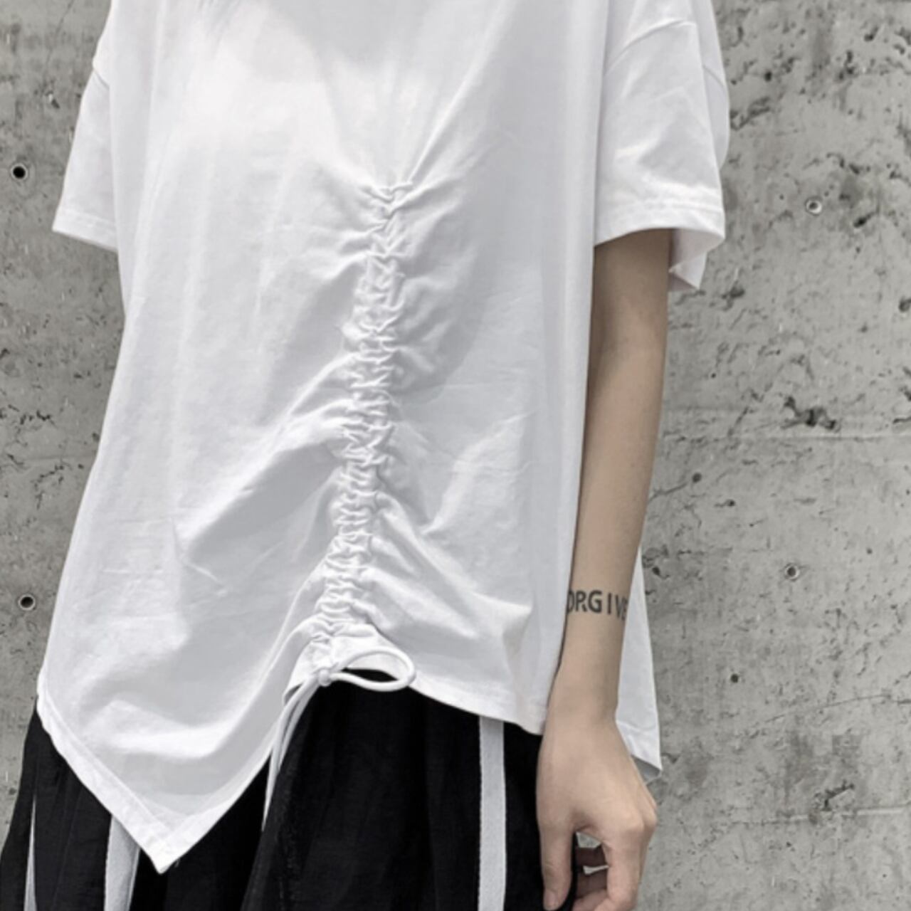 サイドの絞りデザインがポイントのTシャツは、一枚で着てもサマになります。 程よくゆとりのあるシルエットは、動きやすさと着心地の良さを両立。 デイリーユースはもちろん、休日のリラックスシーンにも最適です。 シンプルなデザインなので、様々なボトムスとコーディネートしやすいのも魅力です。 【サイズ】 M 胸囲 116cm 着丈 64cm L 胸囲 118cm 着丈 65cm ※採寸方法により1~3cmの誤差がある場合がございます 【カラー】 ホワイト ブラック 【素材】 コットン 【お届けについて】 こちらの商品は海外店舗より直接発送となる為、ご入金から1週間〜3週間前後で発送致します。 ◼️注意事項 ・タイミングによっては 商品在庫切れにより注文キャンセルとさせていただく恐れもございますので、予めご了承くださいませ。 ・こちらは輸入品となります。 日本製とは検品基準が異なる為、新品未使用品でも、ごくわずかな汚れや傷がある場合もございます。 ・商品の色味は、お手持ちのデバイスの画面によって実物と若干異なる場合がございます。 ・イメージ違いやサイズ等、お客様都合による交換、返品、キャンセルは対応出来かねます。 ———————————— ご購入前にこちらをお読みください →https://shop.remtry.net/about ————————————