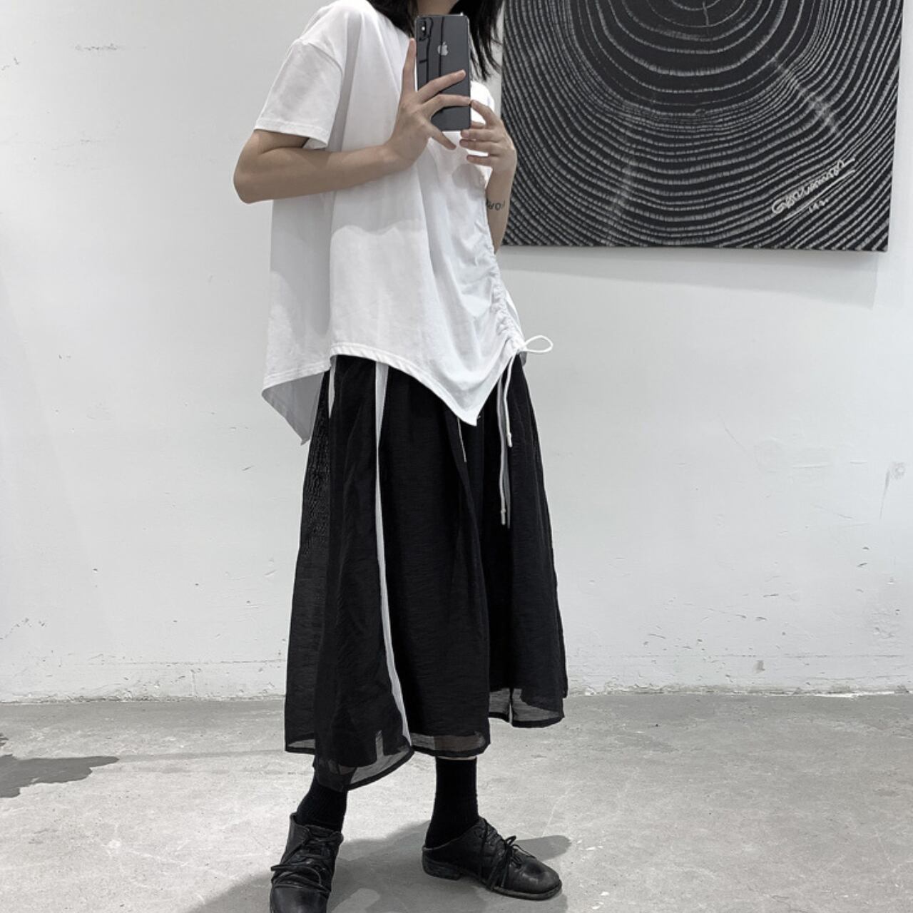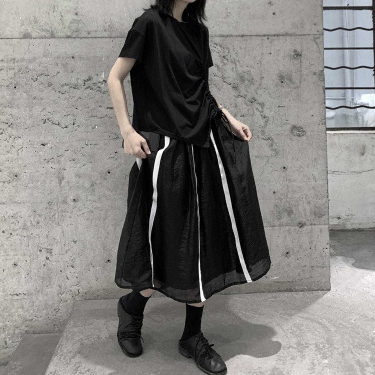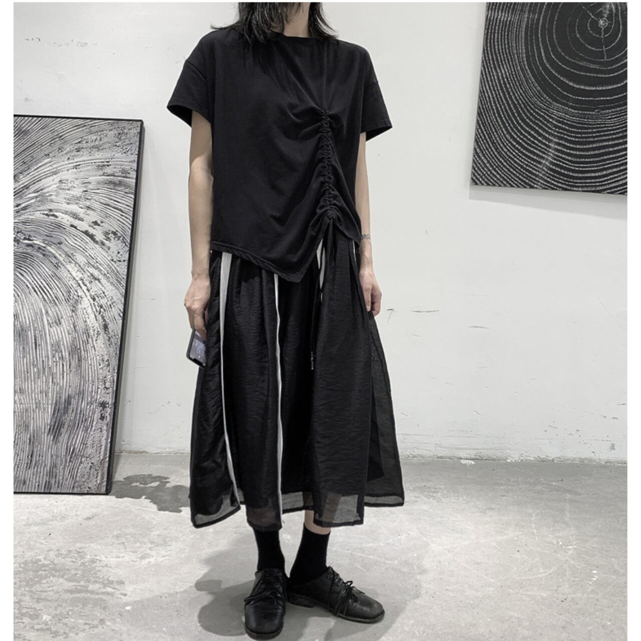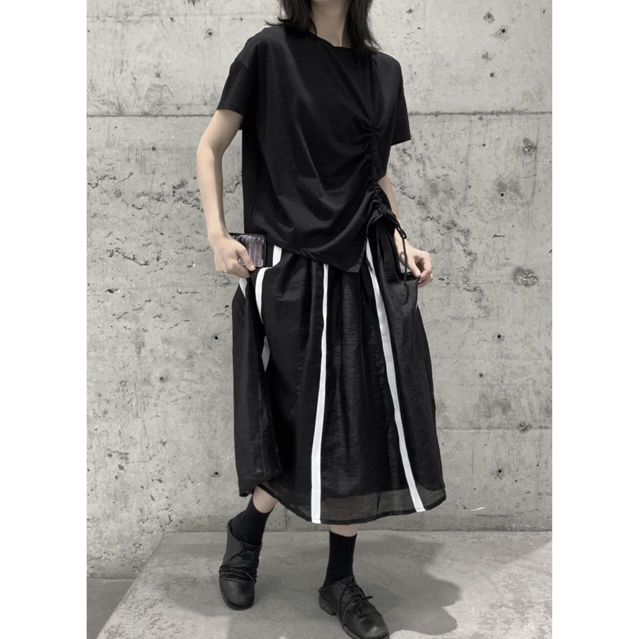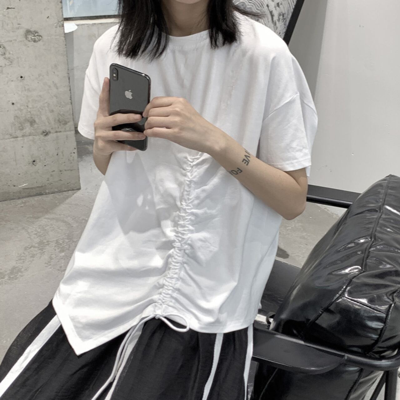 サイドの絞りデザインがポイントのTシャツは、一枚で着てもサマになります。 程よくゆとりのあるシルエットは、動きやすさと着心地の良さを両立。 デイリーユースはもちろん、休日のリラックスシーンにも最適です。 シンプルなデザインなので、様々なボトムスとコーディネートしやすいのも魅力です。 【サイズ】 M 胸囲 116cm 着丈 64cm L 胸囲 118cm 着丈 65cm ※採寸方法により1~3cmの誤差がある場合がございます 【カラー】 ホワイト ブラック 【素材】 コットン 【お届けについて】 こちらの商品は海外店舗より直接発送となる為、ご入金から1週間〜3週間前後で発送致します。 ◼️注意事項 ・タイミングによっては 商品在庫切れにより注文キャンセルとさせていただく恐れもございますので、予めご了承くださいませ。 ・こちらは輸入品となります。 日本製とは検品基準が異なる為、新品未使用品でも、ごくわずかな汚れや傷がある場合もございます。 ・商品の色味は、お手持ちのデバイスの画面によって実物と若干異なる場合がございます。 ・イメージ違いやサイズ等、お客様都合による交換、返品、キャンセルは対応出来かねます。 ———————————— ご購入前にこちらをお読みください →https://shop.remtry.net/about ————————————