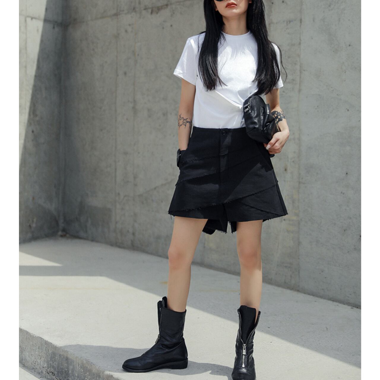 アシンメトリーなデザインとハイウエストが、洗練されたスタイルを叶えます。