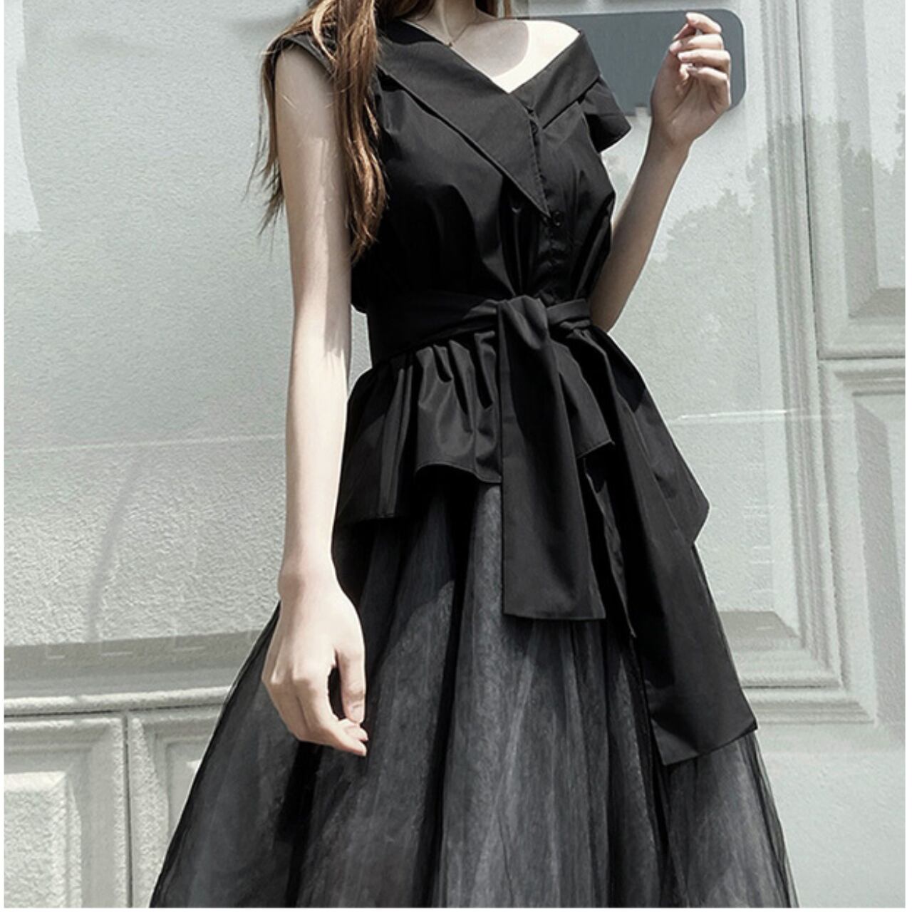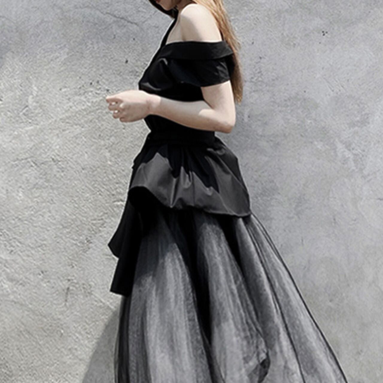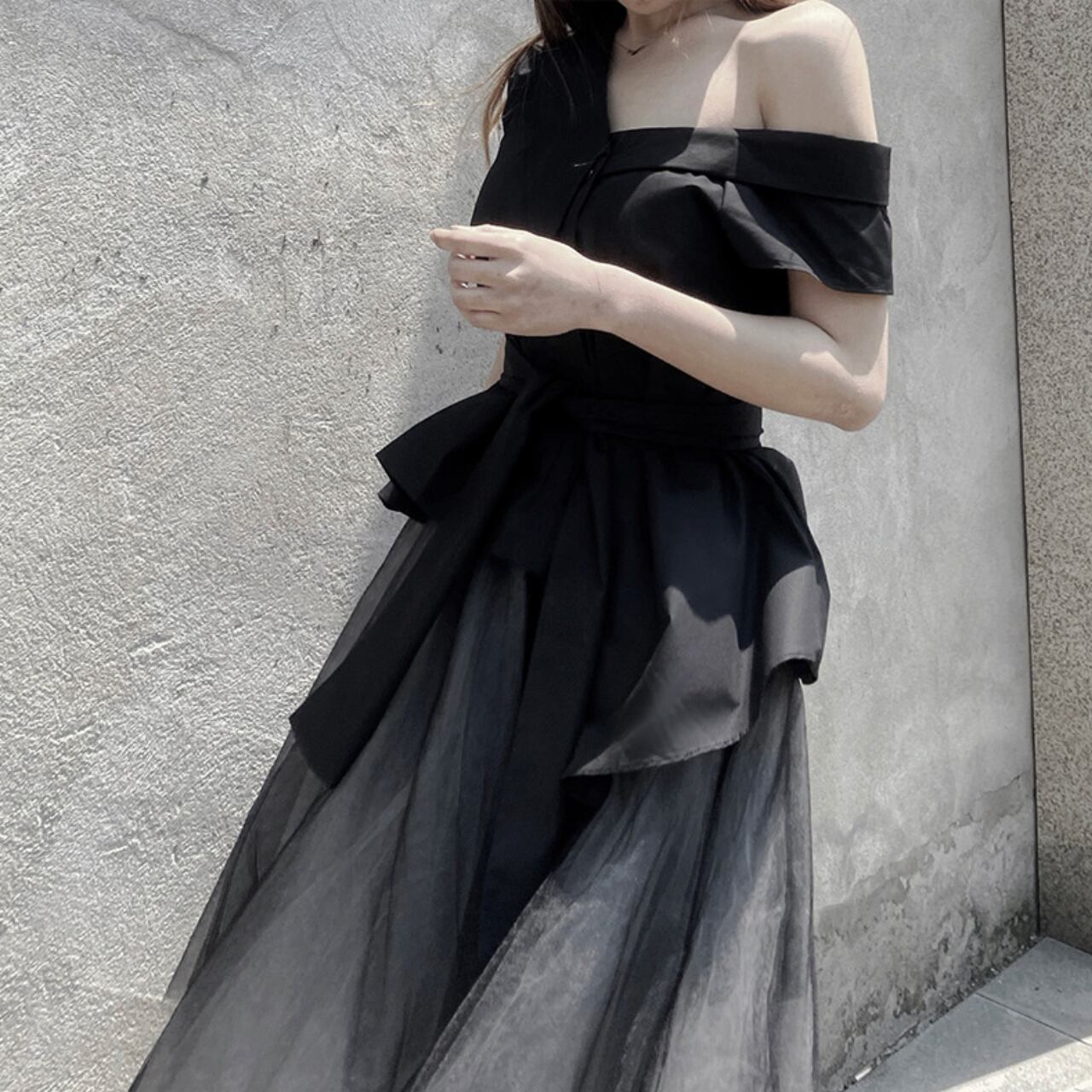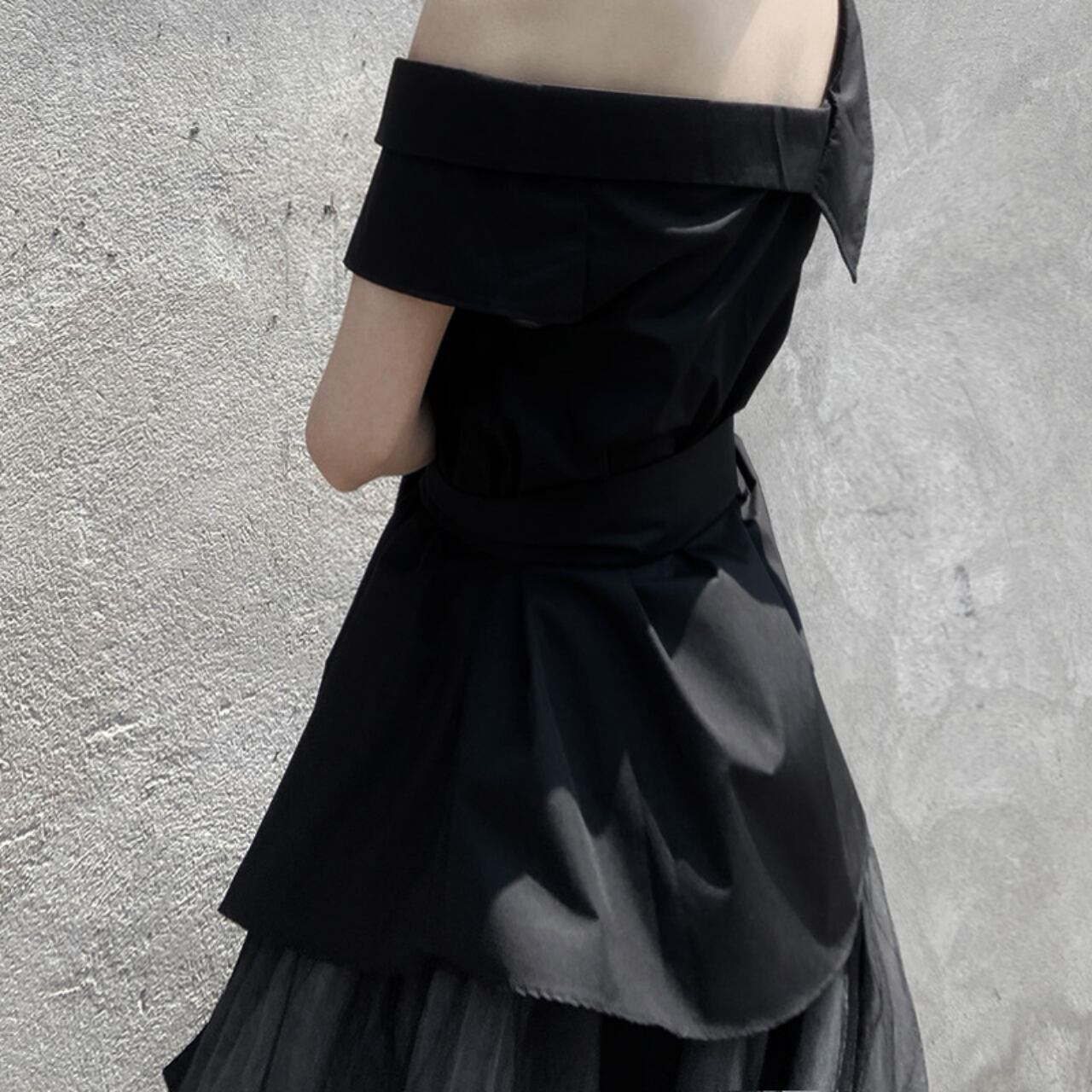 ワンショルダーのデザインが肩のラインを美しく演出。