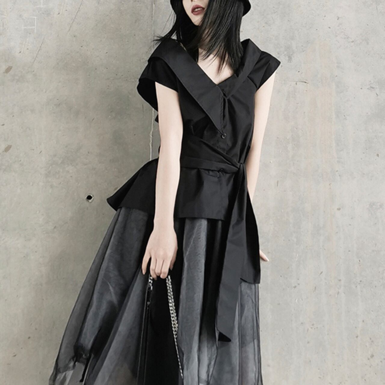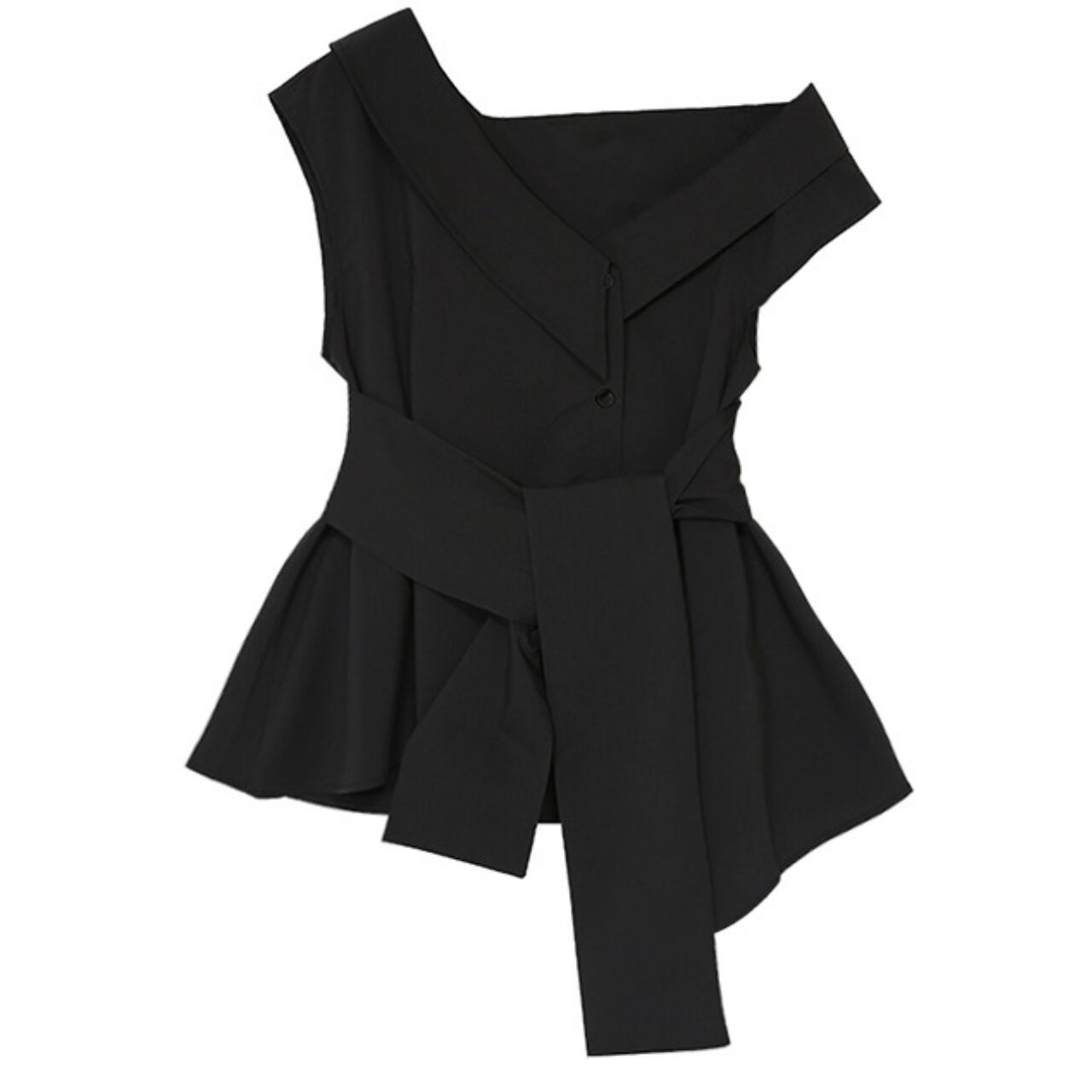 アシンメトリーなカッティングが目を惹く、個性的なトップス。