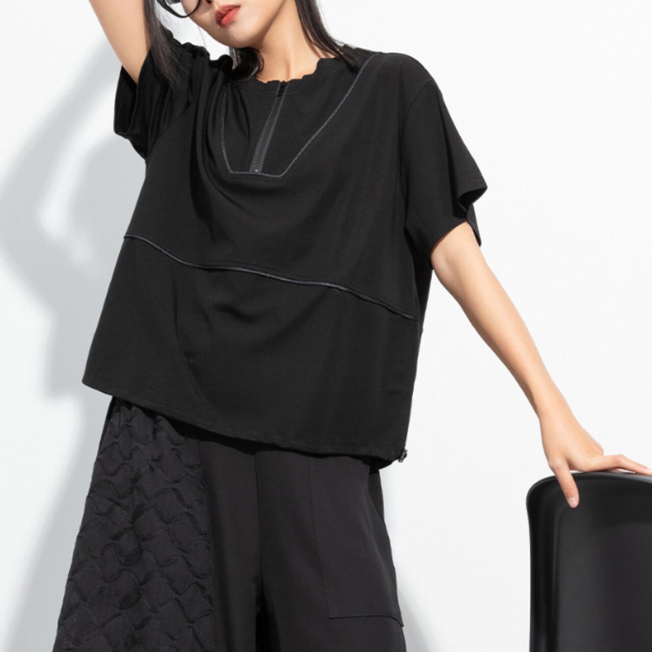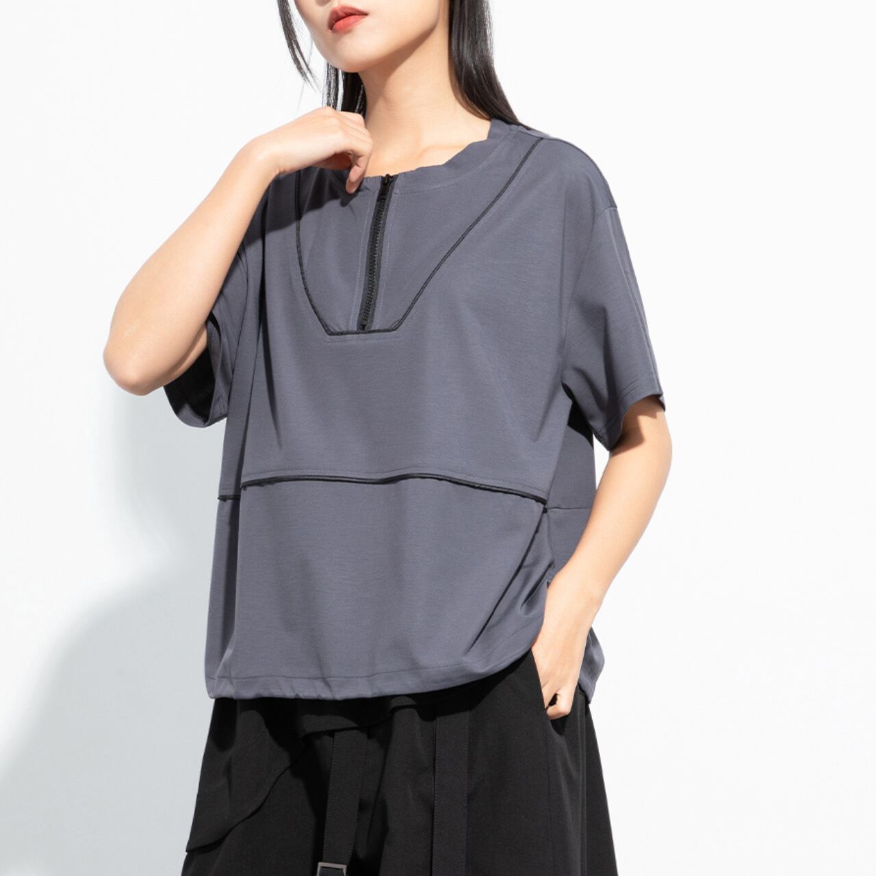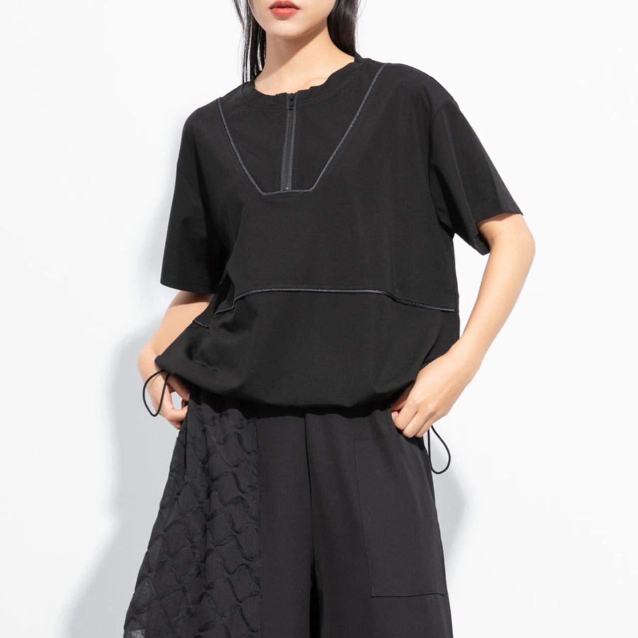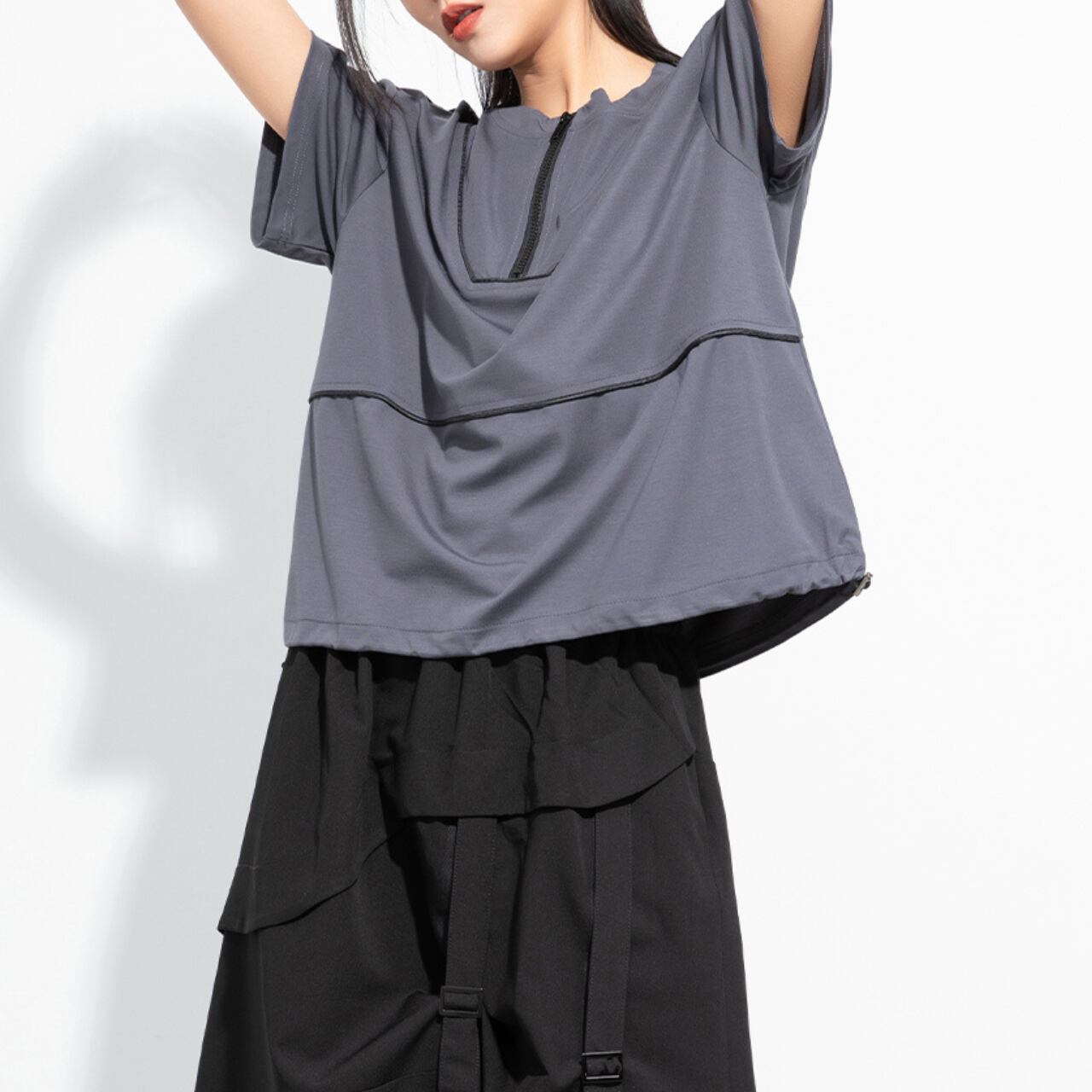 フロントジッパーデザインが特徴的なボックスシルエットTシャツ。