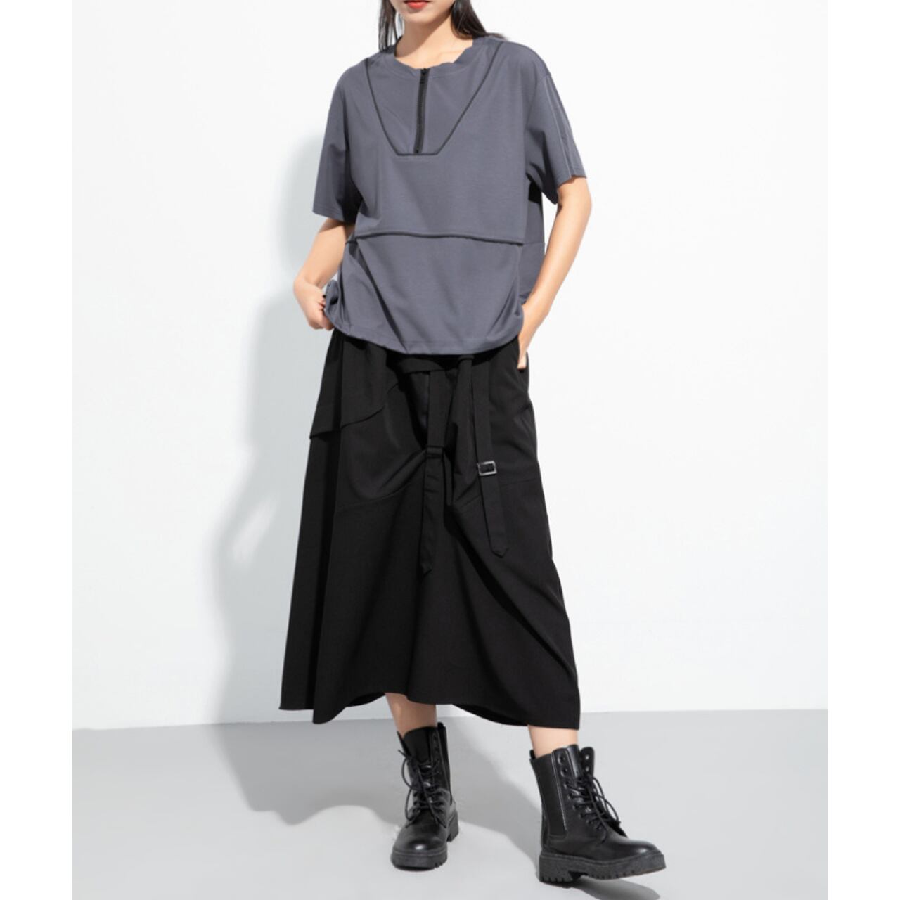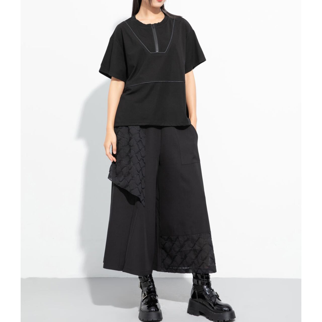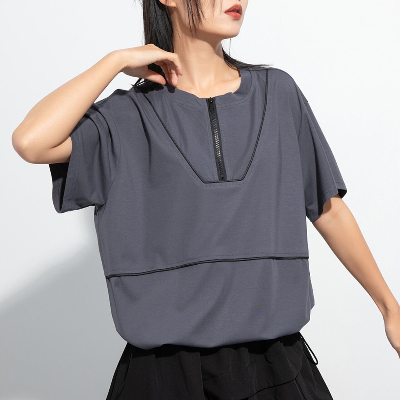 フロントジッパーデザインが特徴的なボックスシルエットTシャツ。