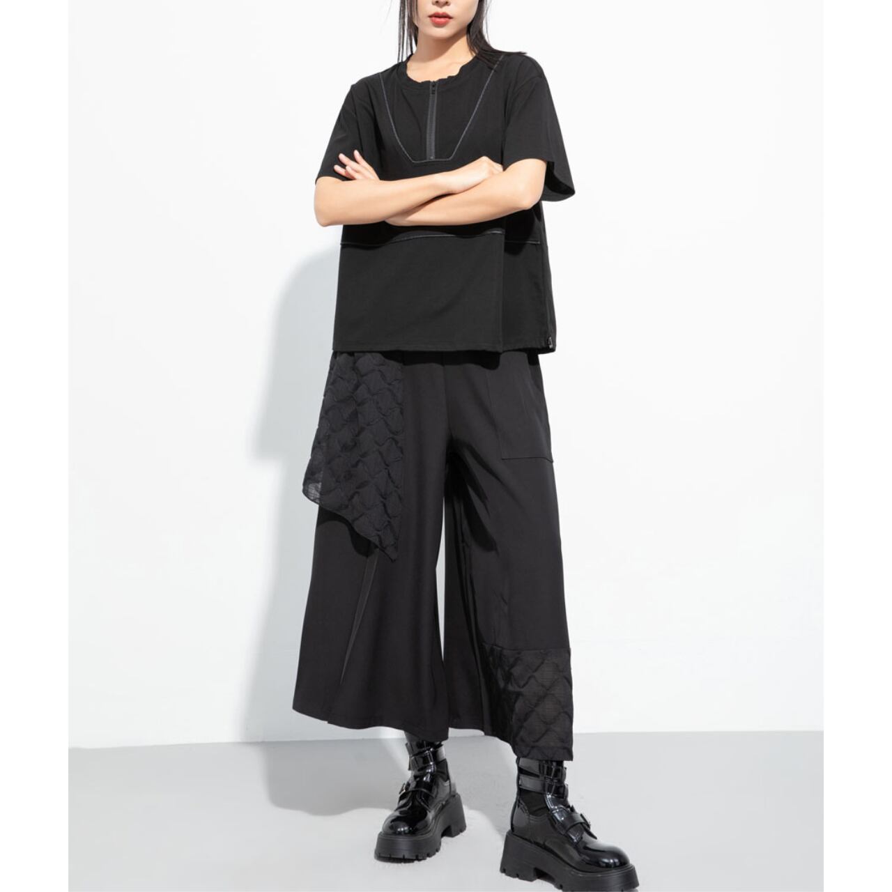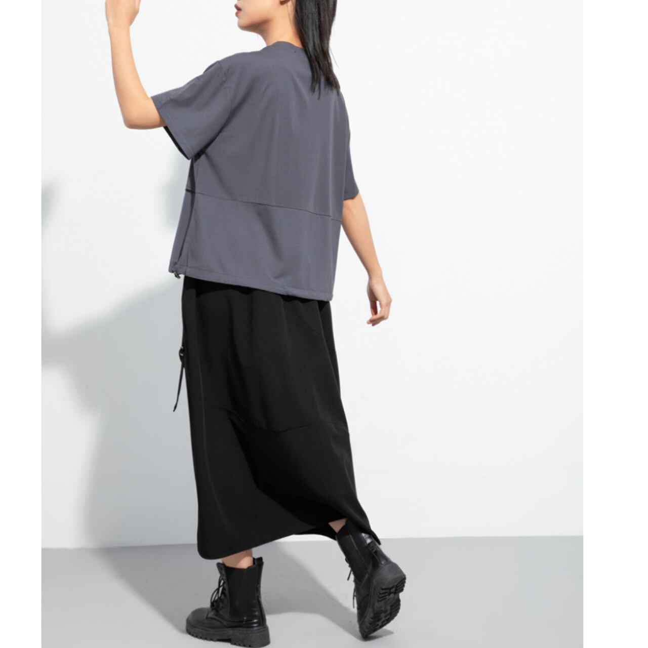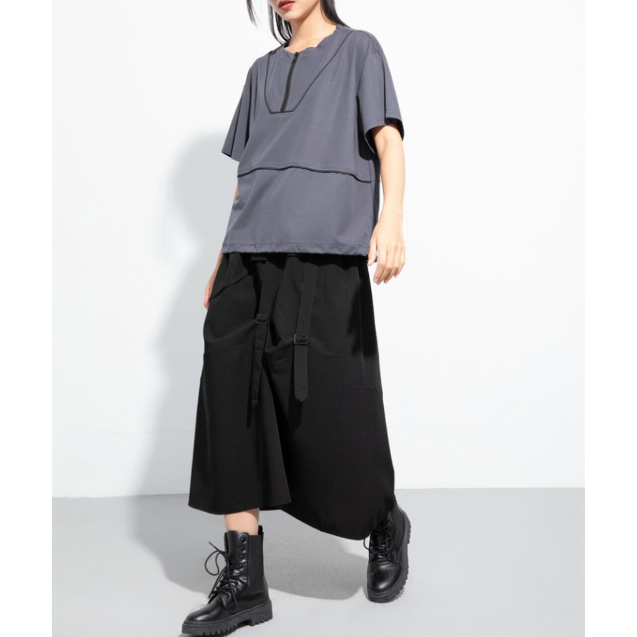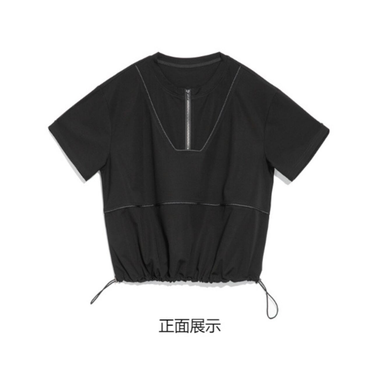 フロントジッパーデザインが特徴的なボックスシルエットTシャツ。