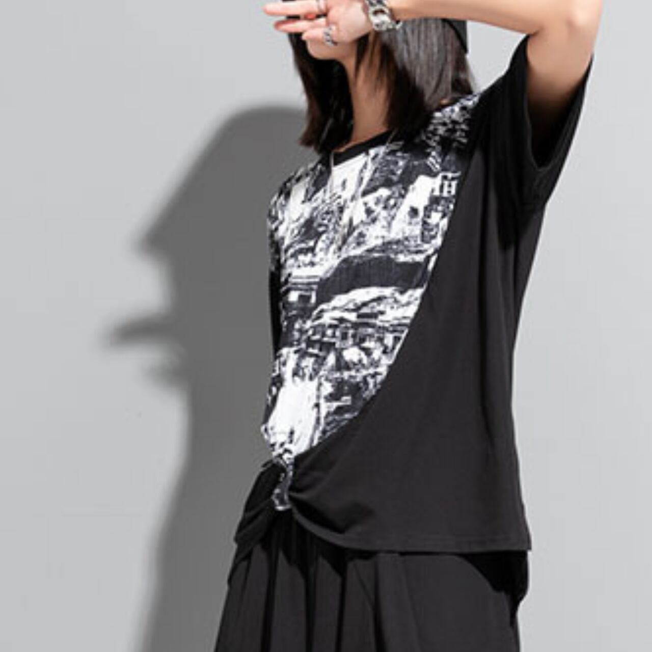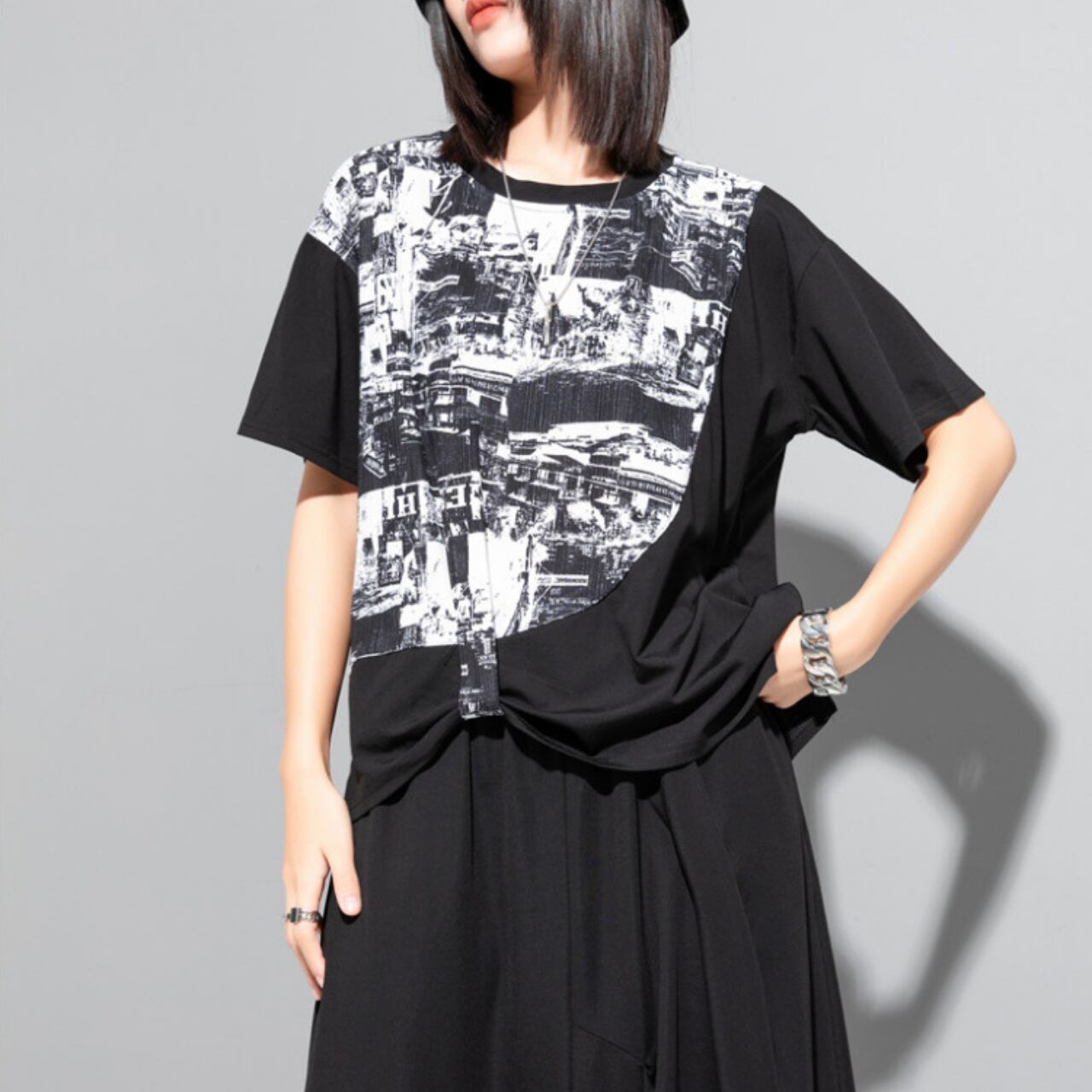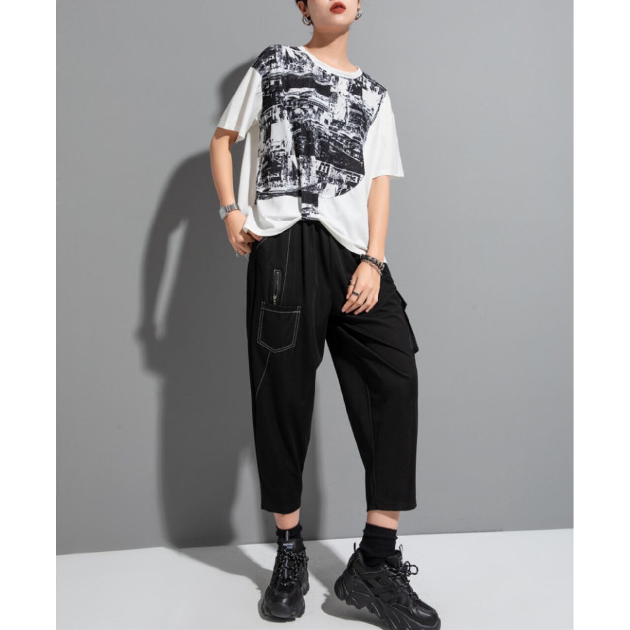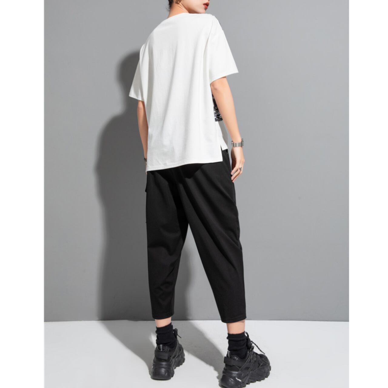 個性的な抽象プリントが魅力の半袖Tシャツ。 ゆったりとしたドロップショルダーデザインが、リラックス感をプラスします。 一枚で着ても、レイヤードスタイルにも合わせやすく、様々なコーディネートを楽しめます。 【サイズ】 M 肩幅 43cm 胸囲 110cm 着丈 53-64cm 袖丈 17cm L 肩幅 44cm 胸囲 114cm 着丈 54-65cm 袖丈 18cm ※採寸方法により1~3cmの誤差がある場合がございます 【カラー】 ホワイト ブラック 【素材】 ポリエステル 【お届けについて】 こちらの商品は海外店舗より直接発送となる為、ご入金から1週間〜3週間前後で発送致します。 ◼️注意事項 ・タイミングによっては 商品在庫切れにより注文キャンセルとさせていただく恐れもございますので、予めご了承くださいませ。 ・こちらは輸入品となります。 日本製とは検品基準が異なる為、新品未使用品でも、ごくわずかな汚れや傷がある場合もございます。 ・商品の色味は、お手持ちのデバイスの画面によって実物と若干異なる場合がございます。 ・イメージ違いやサイズ等、お客様都合による交換、返品、キャンセルは対応出来かねます。 ———————————— ご購入前にこちらをお読みください →https://shop.remtry.net/about ————————————