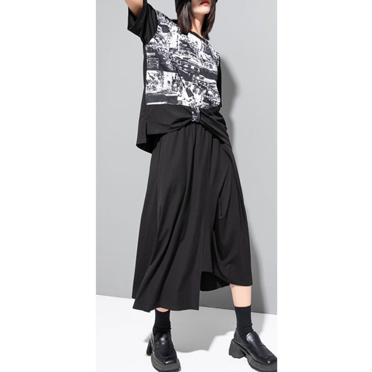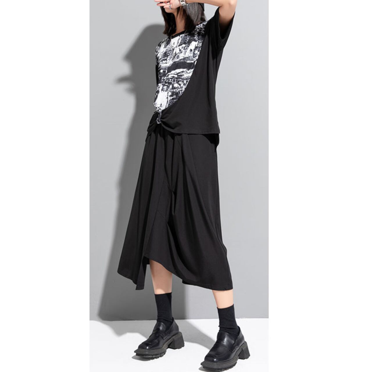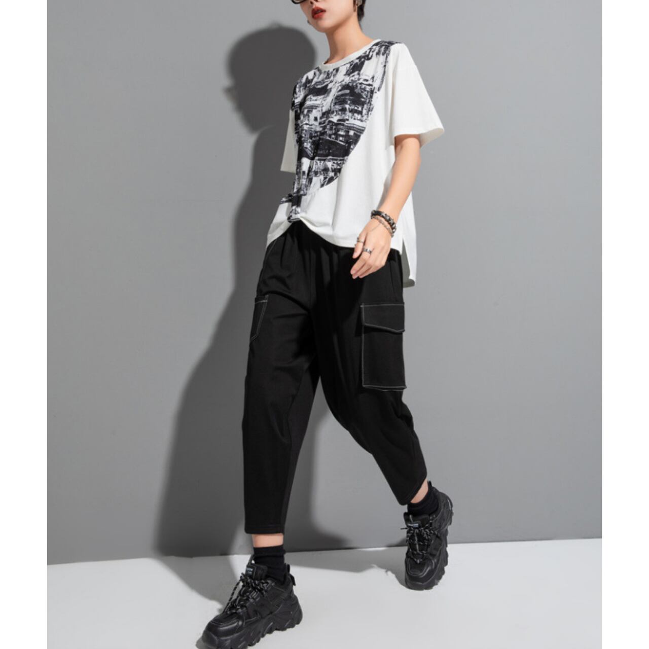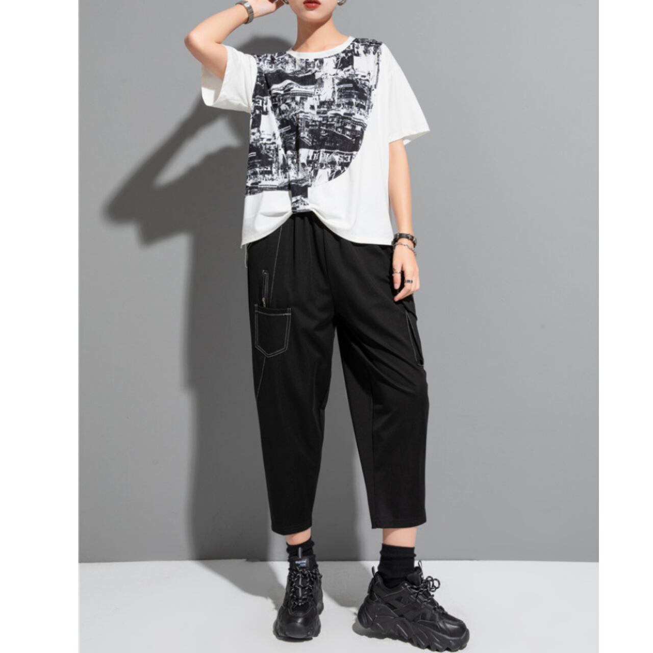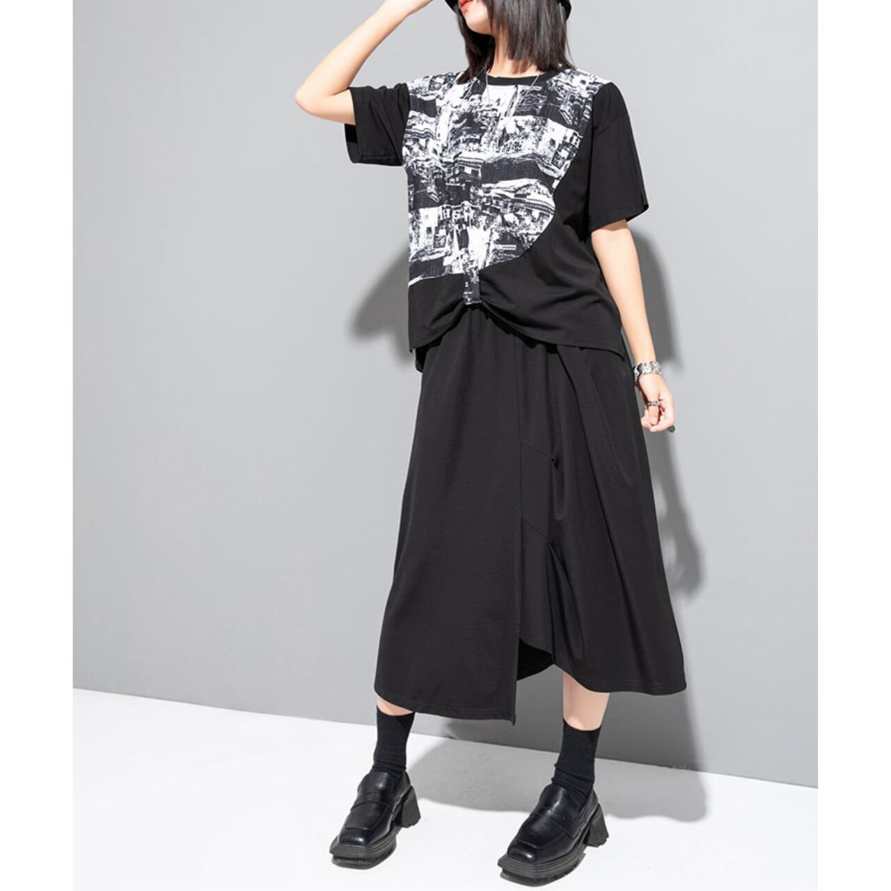 個性的な抽象プリントが魅力の半袖Tシャツ。 ゆったりとしたドロップショルダーデザインが、リラックス感をプラスします。 一枚で着ても、レイヤードスタイルにも合わせやすく、様々なコーディネートを楽しめます。 【サイズ】 M 肩幅 43cm 胸囲 110cm 着丈 53-64cm 袖丈 17cm L 肩幅 44cm 胸囲 114cm 着丈 54-65cm 袖丈 18cm ※採寸方法により1~3cmの誤差がある場合がございます 【カラー】 ホワイト ブラック 【素材】 ポリエステル 【お届けについて】 こちらの商品は海外店舗より直接発送となる為、ご入金から1週間〜3週間前後で発送致します。 ◼️注意事項 ・タイミングによっては 商品在庫切れにより注文キャンセルとさせていただく恐れもございますので、予めご了承くださいませ。 ・こちらは輸入品となります。 日本製とは検品基準が異なる為、新品未使用品でも、ごくわずかな汚れや傷がある場合もございます。 ・商品の色味は、お手持ちのデバイスの画面によって実物と若干異なる場合がございます。 ・イメージ違いやサイズ等、お客様都合による交換、返品、キャンセルは対応出来かねます。 ———————————— ご購入前にこちらをお読みください →https://shop.remtry.net/about ————————————