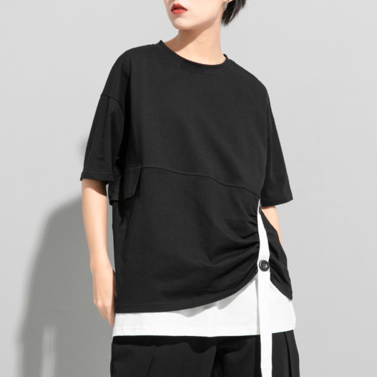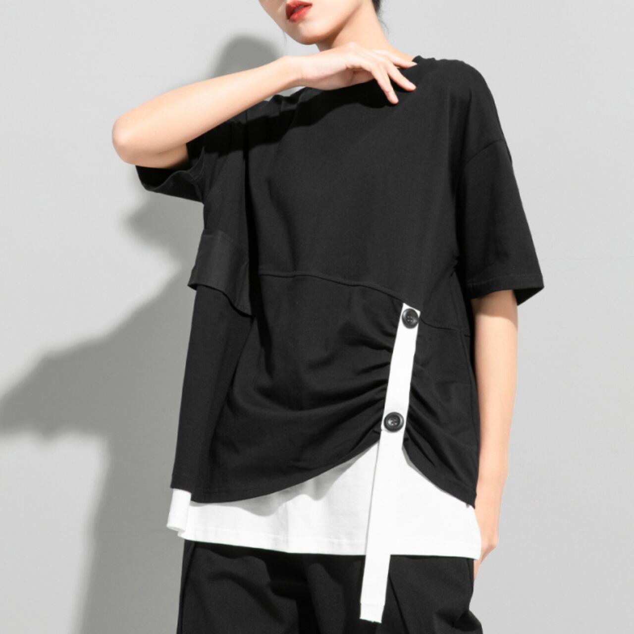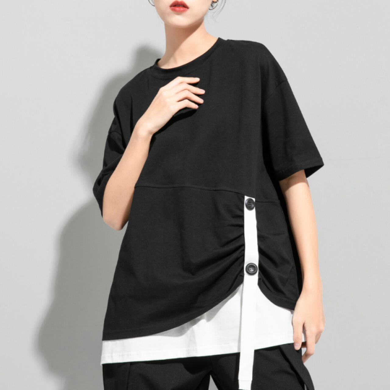 Belted Drop Shoulder Layered Style Short Sleeve Top 00161