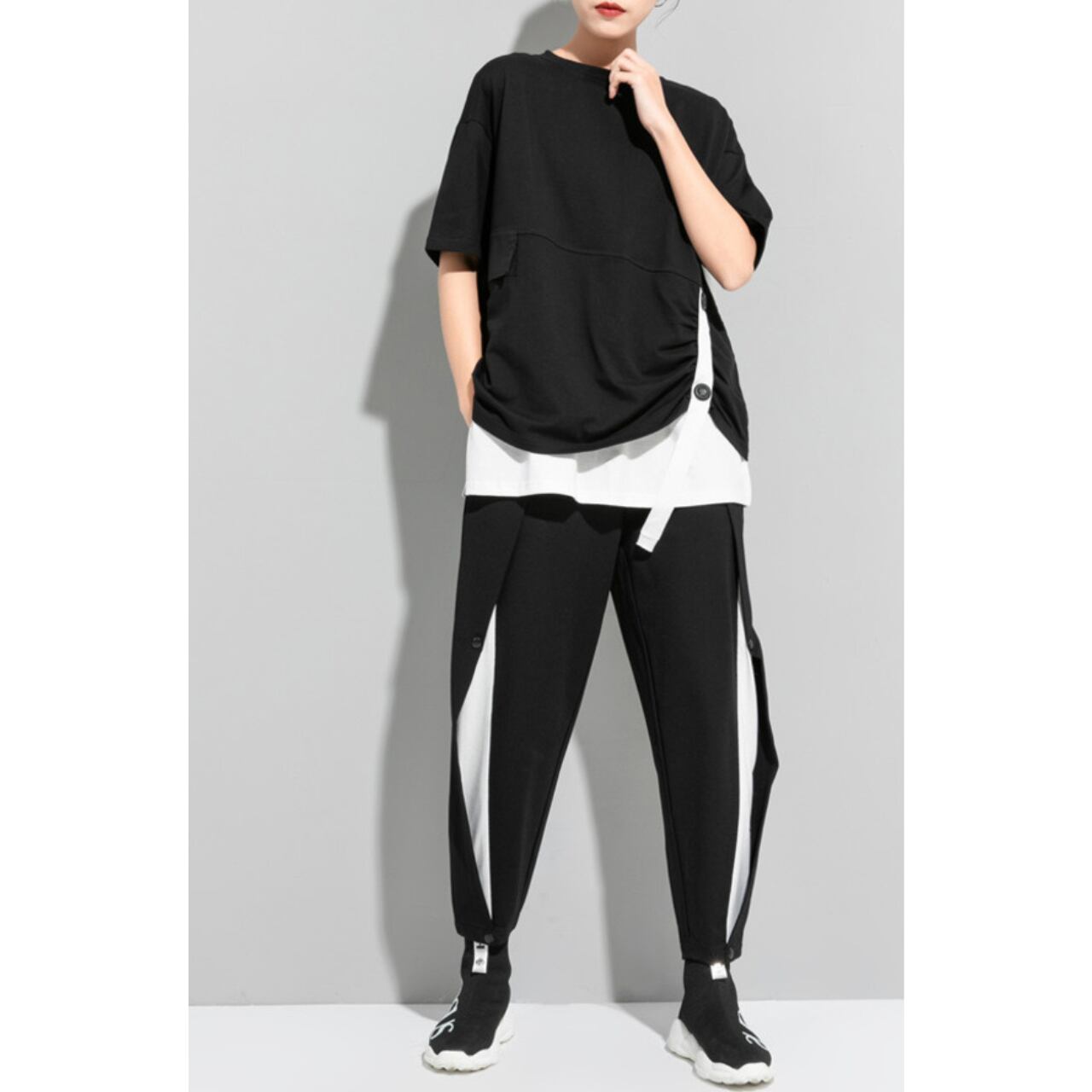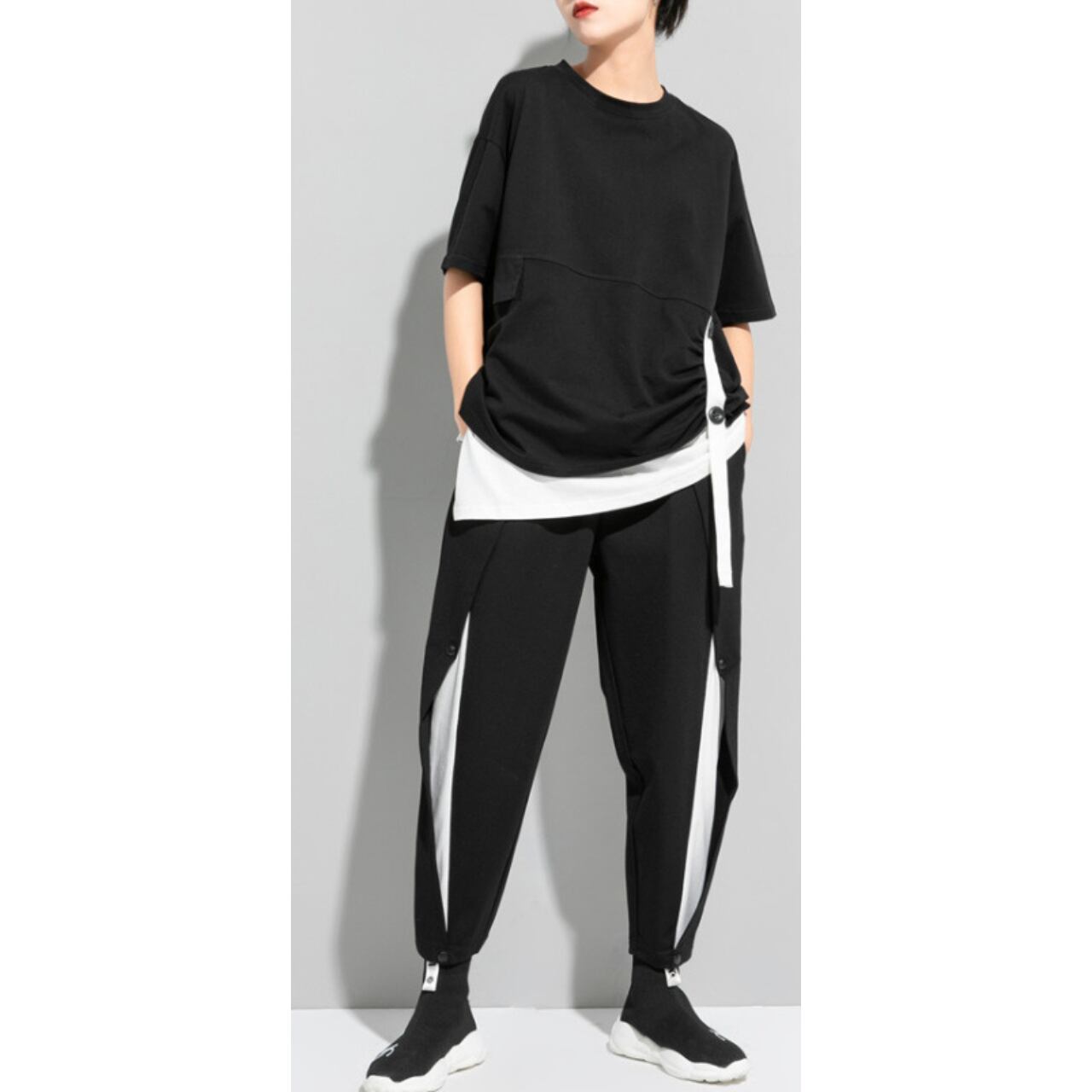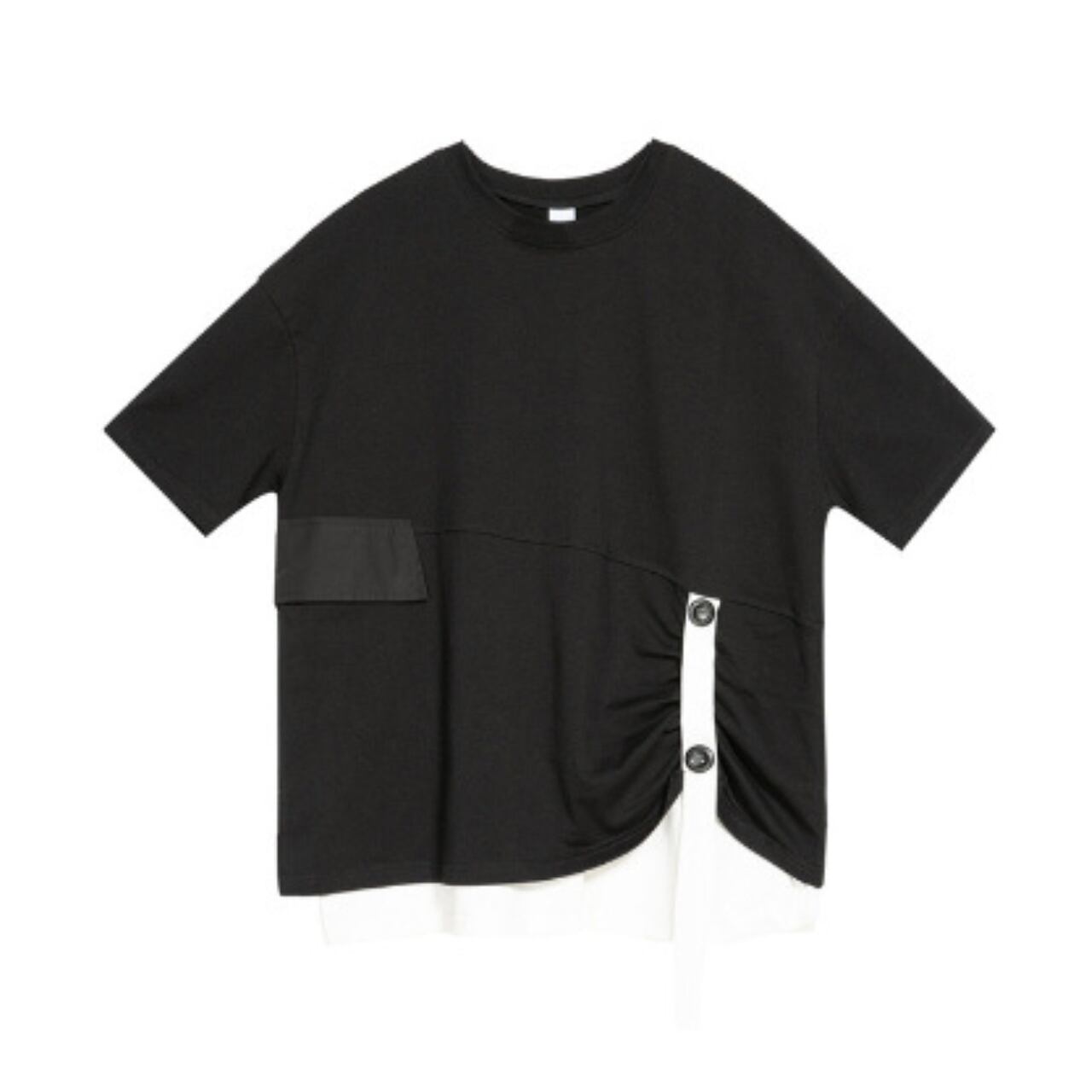 Belted Drop Shoulder Layered Style Short Sleeve Top 00161