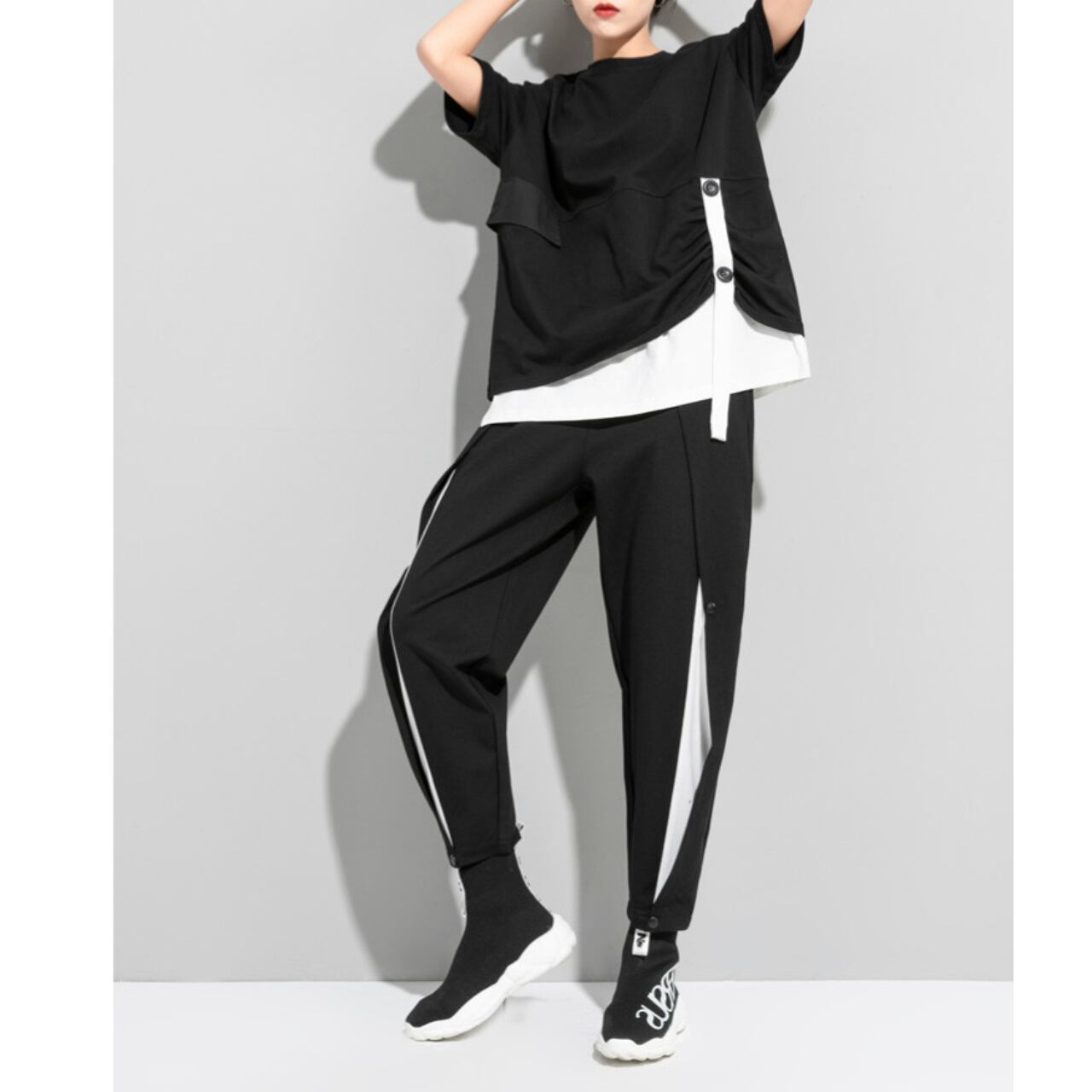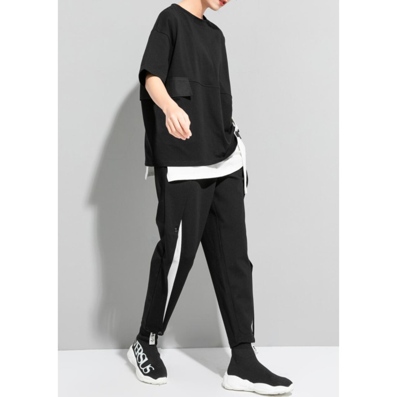 重ね着風デザインがこなれた印象を与えるトップス。