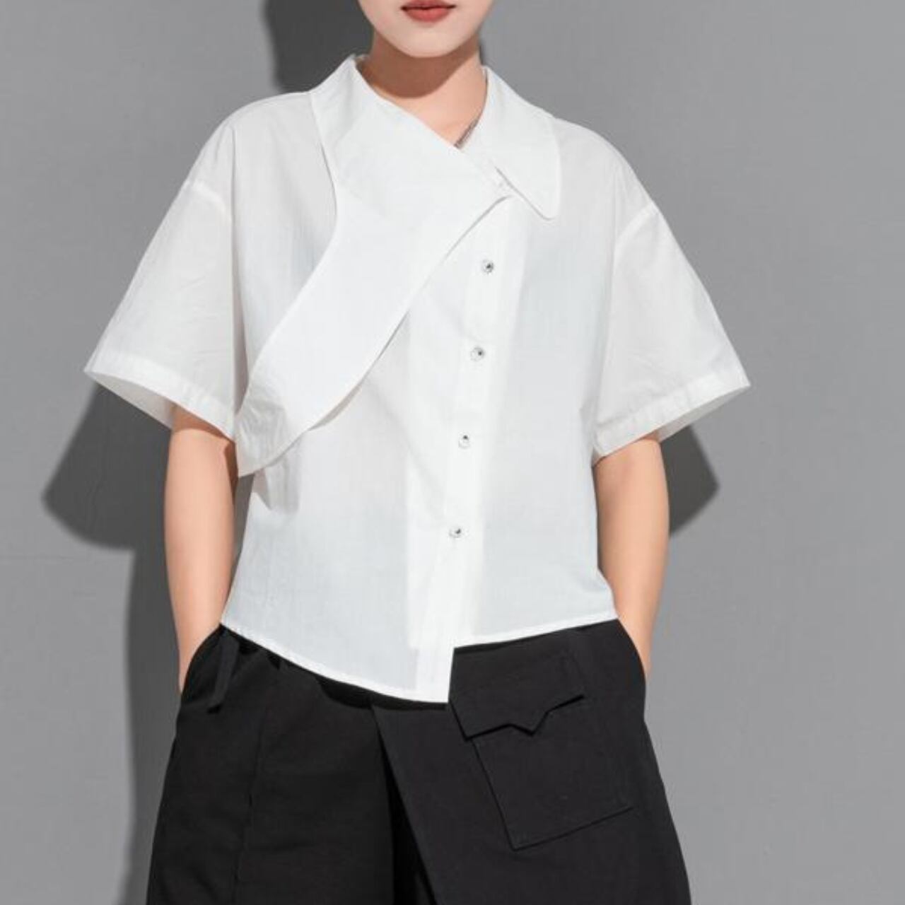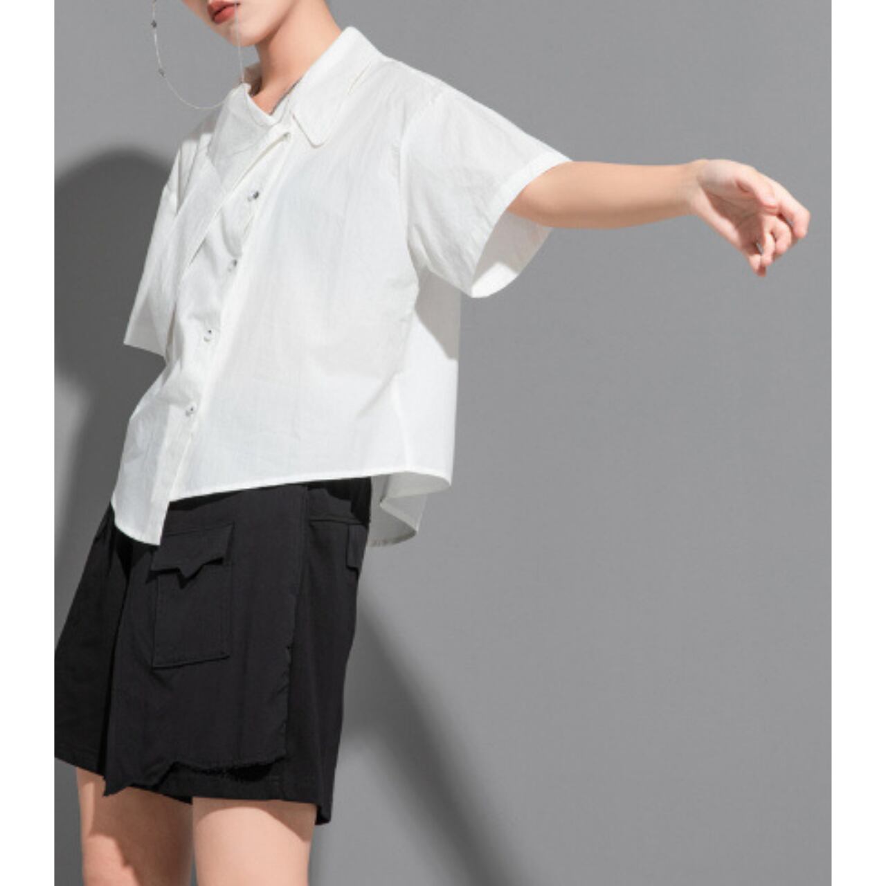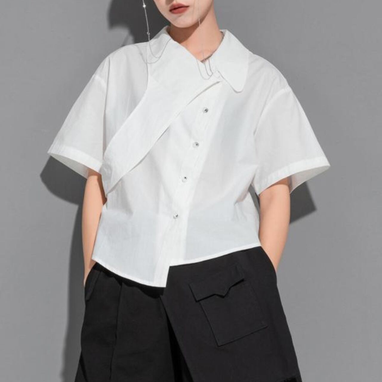 一枚で主役級の存在感を放つ、オーバーサイズのシャツ。 アシンメトリーなデザインが、着る人の個性を際立たせます。 シンプルなデザインなので、どんなボトムスとも相性がよく、幅広いスタイルに対応可能です。 【サイズ】 M 肩幅 49cm 胸囲 106cm 着丈 58cm 袖丈 19cm L 肩幅 50cm 胸囲 110cm 着丈 59cm 袖丈 20cm XL 肩幅 51cm 胸囲 112cm 着丈 60cm 袖丈 21cm ※採寸方法により1~3cmの誤差がある場合がございます 【カラー】 ホワイト ブラック 【素材】 コットン ナイロン 【お届けについて】 こちらの商品は海外店舗より直接発送となる為、ご入金から1週間〜3週間前後で発送致します。 ◼️注意事項 ・タイミングによっては 商品在庫切れにより注文キャンセルとさせていただく恐れもございますので、予めご了承くださいませ。 ・こちらは輸入品となります。 日本製とは検品基準が異なる為、新品未使用品でも、ごくわずかな汚れや傷がある場合もございます。 ・商品の色味は、お手持ちのデバイスの画面によって実物と若干異なる場合がございます。 ・イメージ違いやサイズ等、お客様都合による交換、返品、キャンセルは対応出来かねます。 ———————————— ご購入前にこちらをお読みください →https://shop.remtry.net/about ————————————