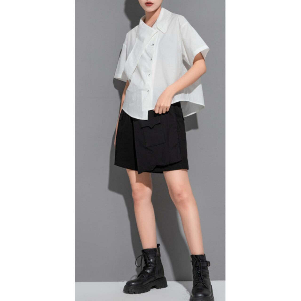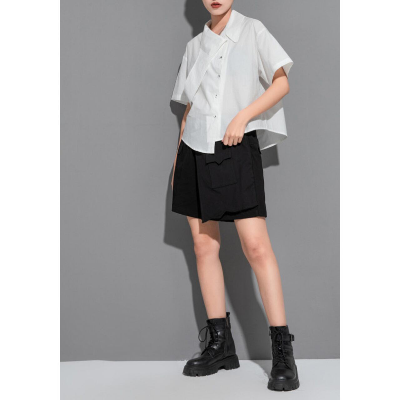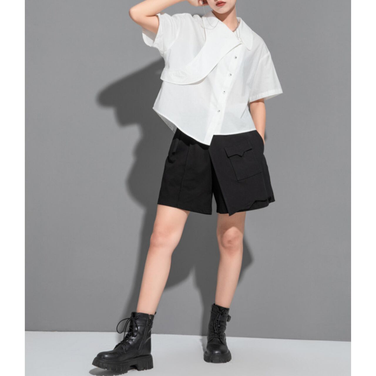 一枚で主役級の存在感を放つ、オーバーサイズのシャツ。 アシンメトリーなデザインが、着る人の個性を際立たせます。 シンプルなデザインなので、どんなボトムスとも相性がよく、幅広いスタイルに対応可能です。 【サイズ】 M 肩幅 49cm 胸囲 106cm 着丈 58cm 袖丈 19cm L 肩幅 50cm 胸囲 110cm 着丈 59cm 袖丈 20cm XL 肩幅 51cm 胸囲 112cm 着丈 60cm 袖丈 21cm ※採寸方法により1~3cmの誤差がある場合がございます 【カラー】 ホワイト ブラック 【素材】 コットン ナイロン 【お届けについて】 こちらの商品は海外店舗より直接発送となる為、ご入金から1週間〜3週間前後で発送致します。 ◼️注意事項 ・タイミングによっては 商品在庫切れにより注文キャンセルとさせていただく恐れもございますので、予めご了承くださいませ。 ・こちらは輸入品となります。 日本製とは検品基準が異なる為、新品未使用品でも、ごくわずかな汚れや傷がある場合もございます。 ・商品の色味は、お手持ちのデバイスの画面によって実物と若干異なる場合がございます。 ・イメージ違いやサイズ等、お客様都合による交換、返品、キャンセルは対応出来かねます。 ———————————— ご購入前にこちらをお読みください →https://shop.remtry.net/about ————————————