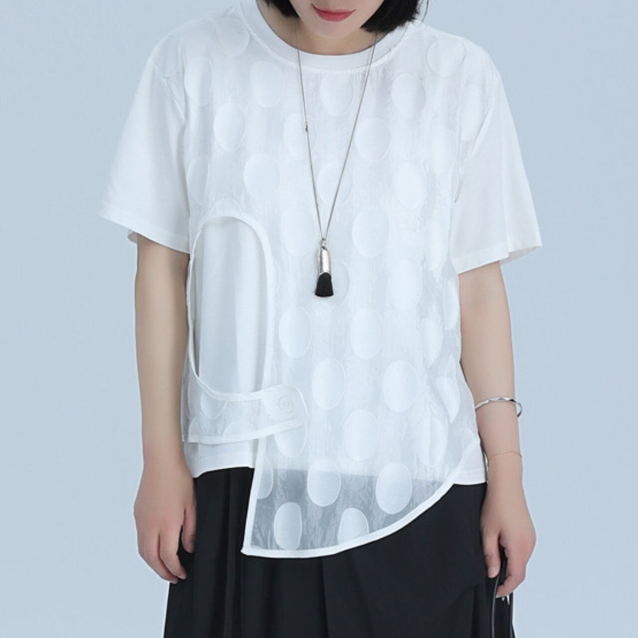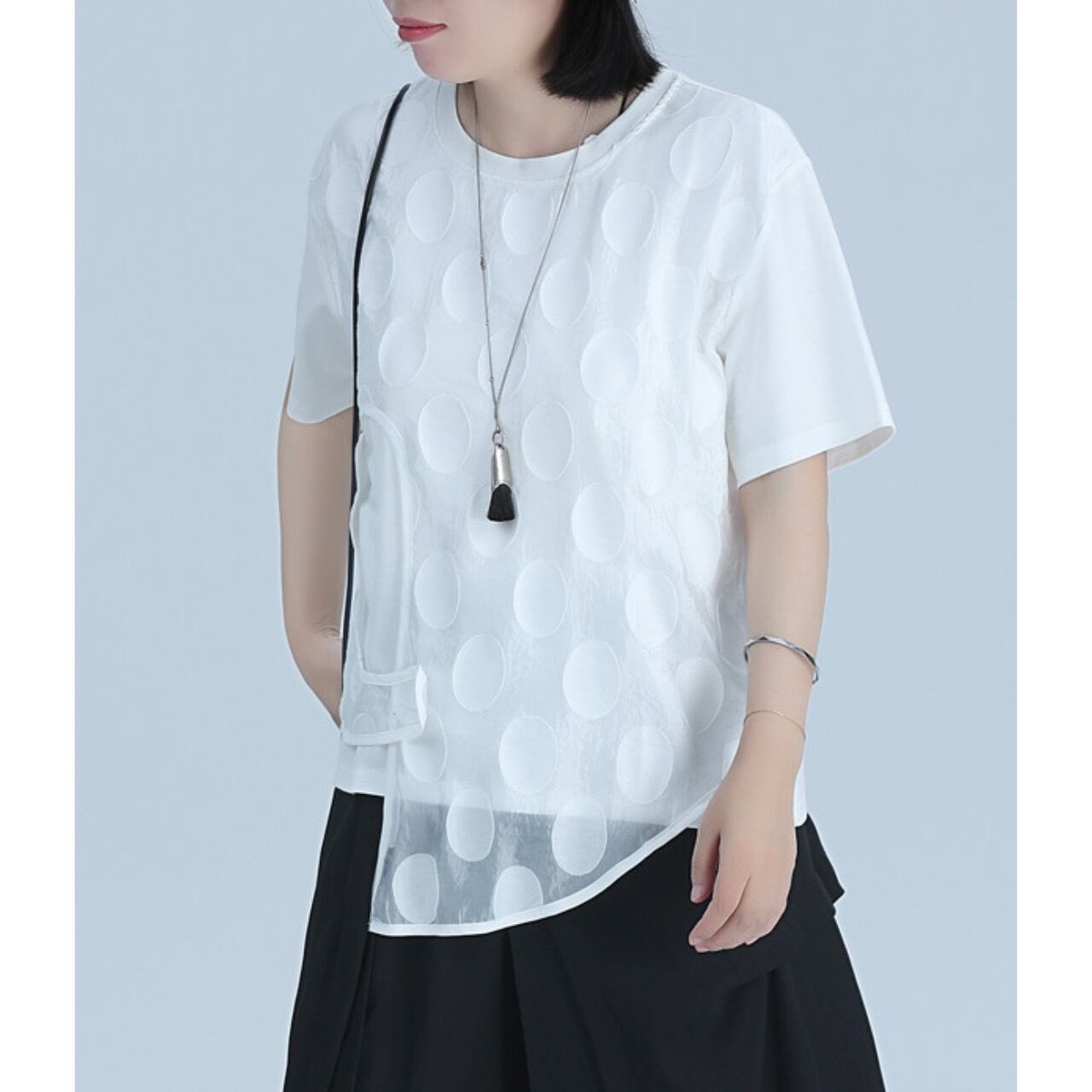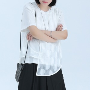 オーガンジーのドット柄が目を惹く、ショートスリーブトップ。