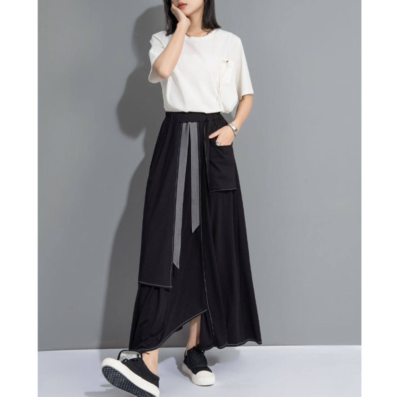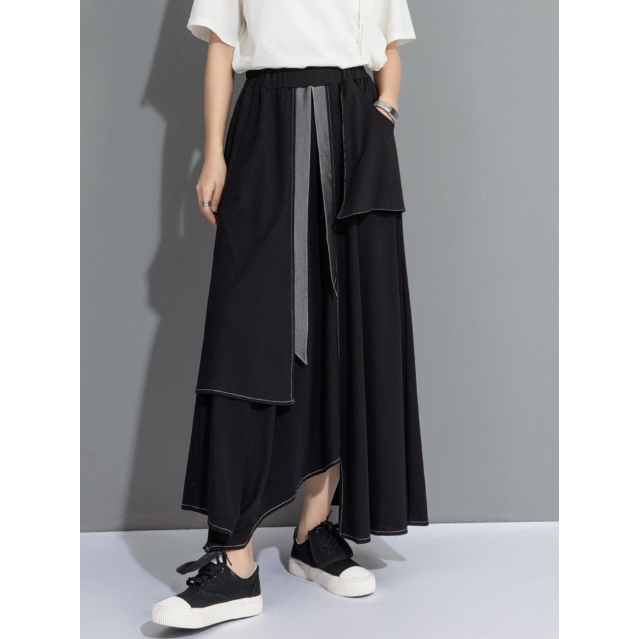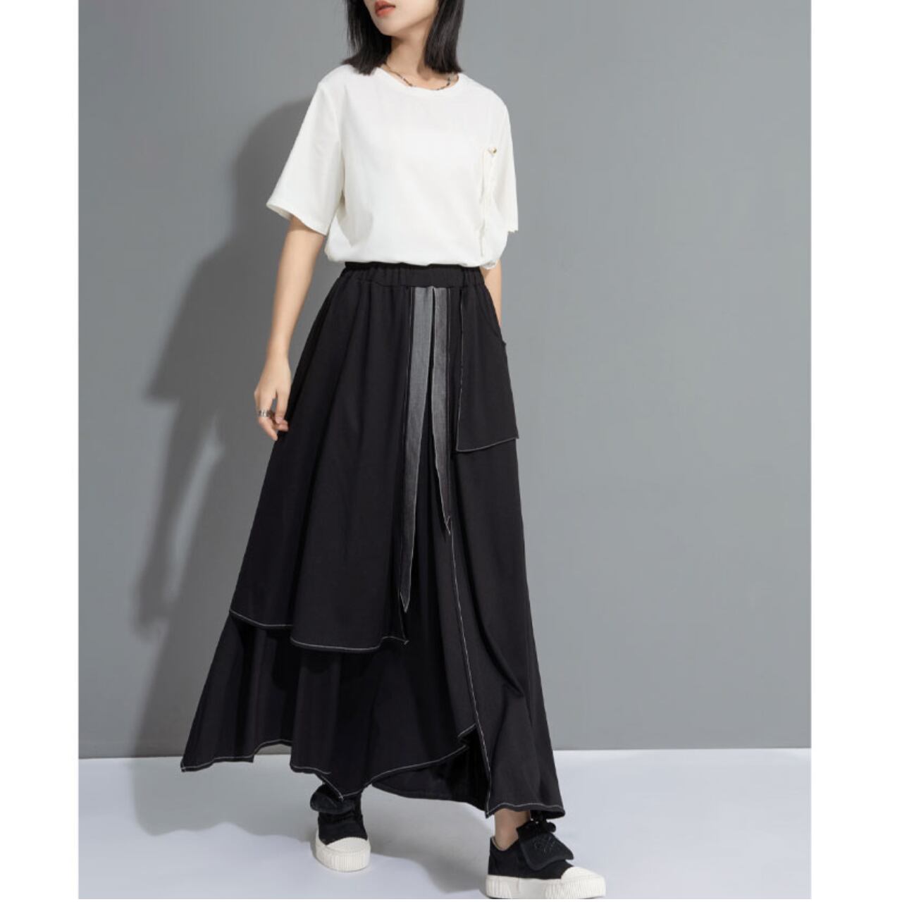Asymmetrical Long Layered Pants 00167