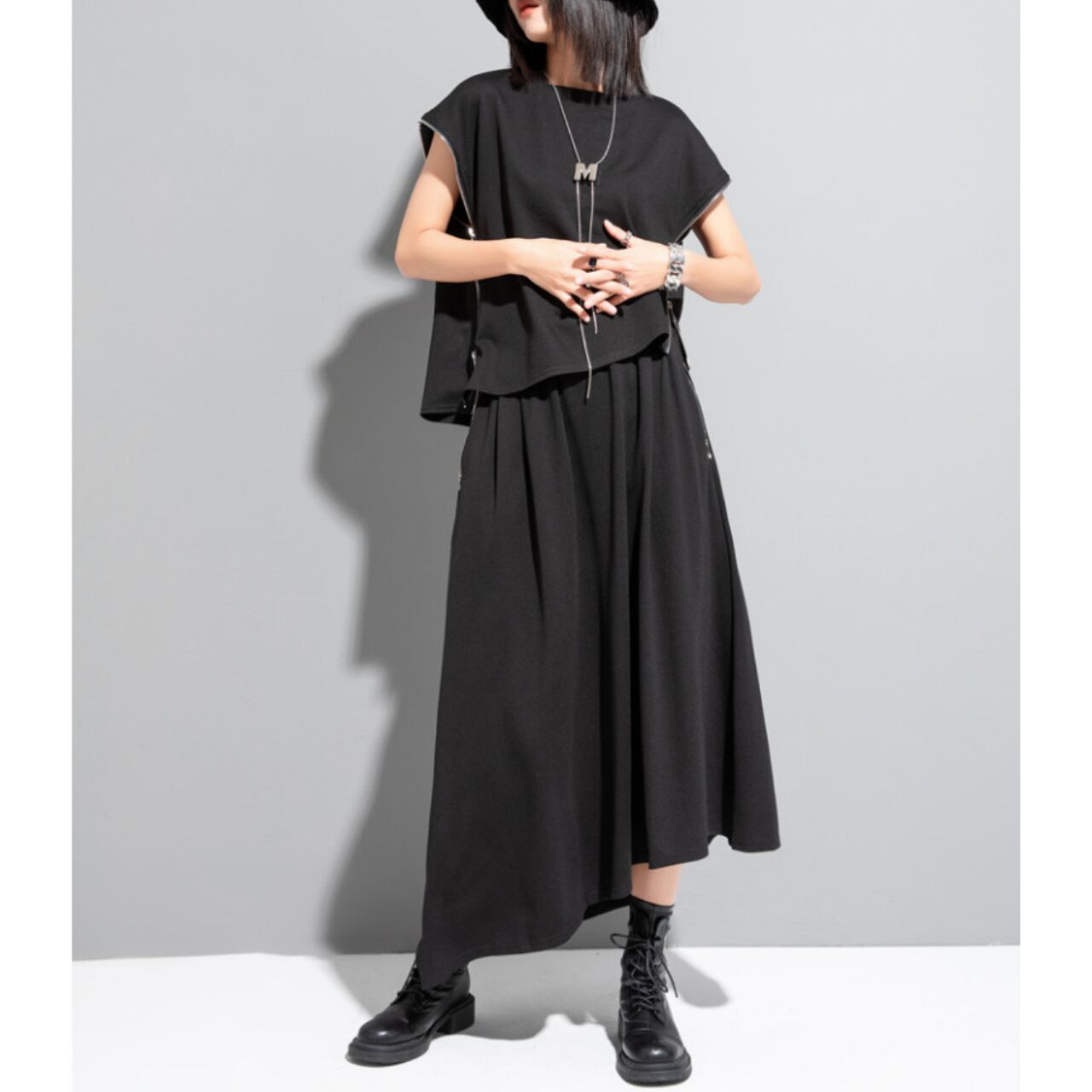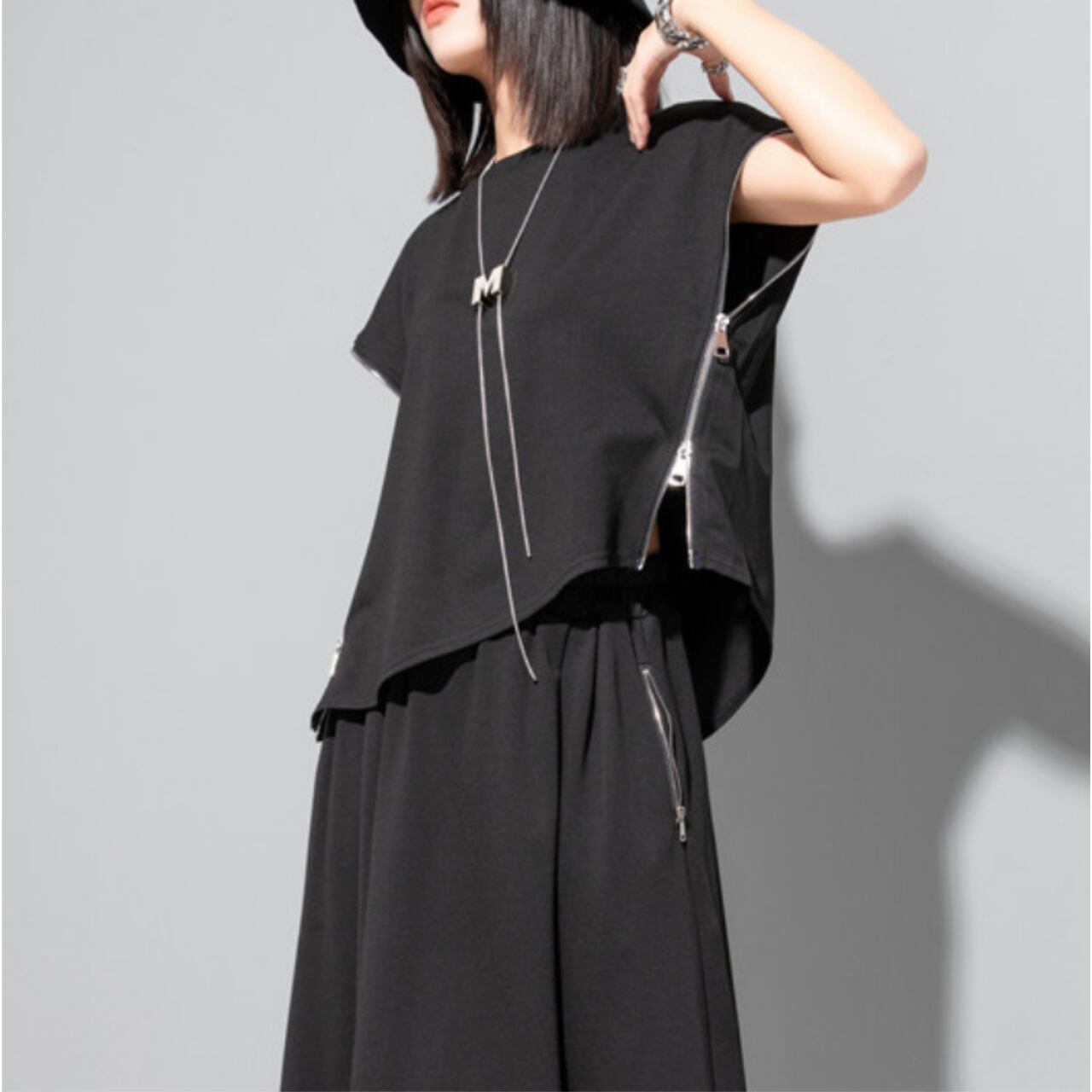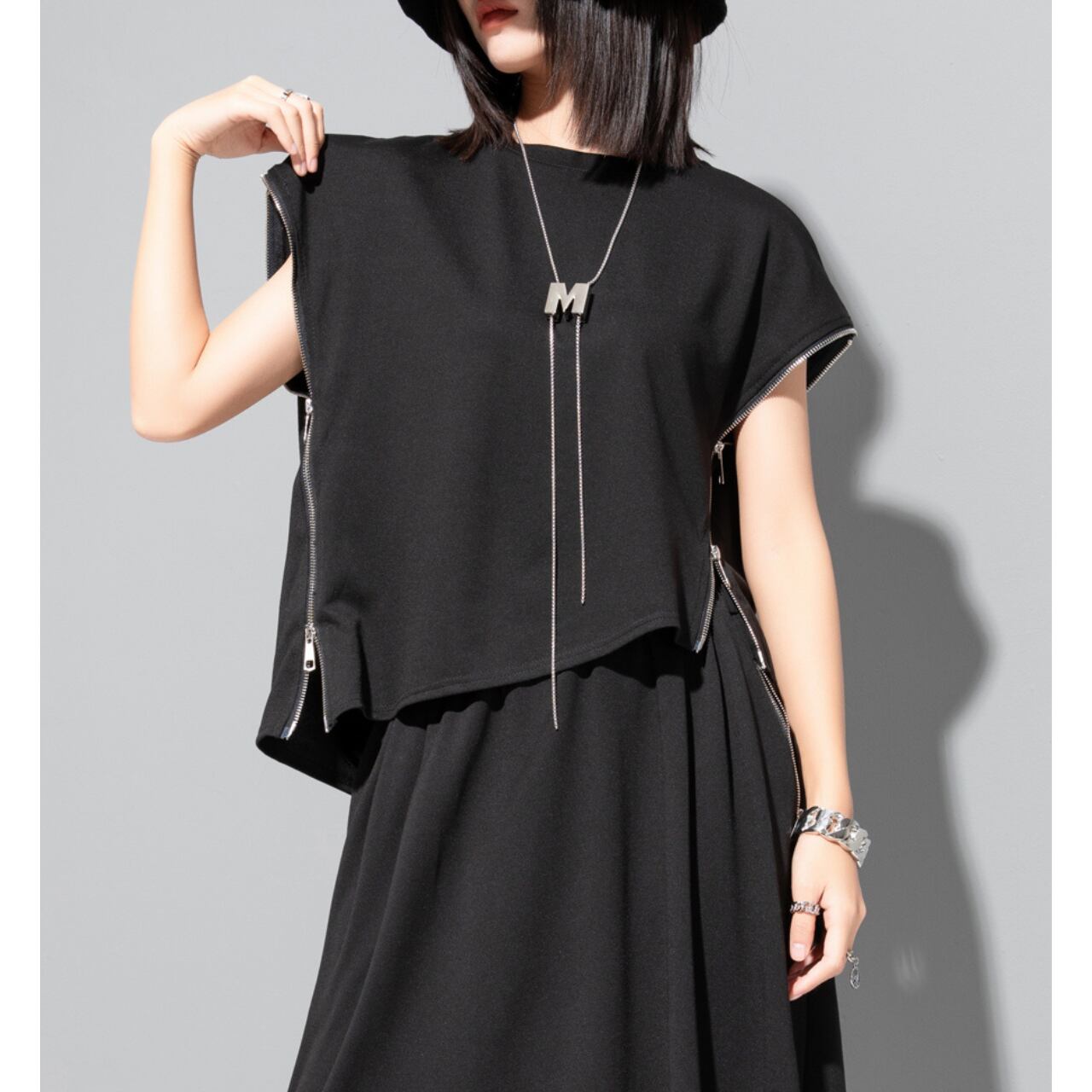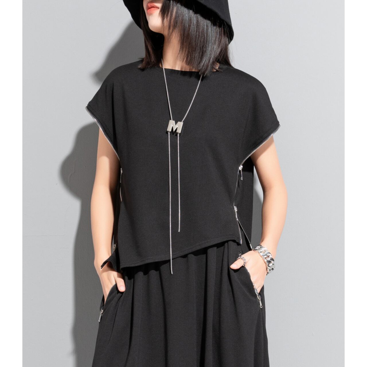 Asymmetrical Side Zip Short Sleeve Cut and Sew 00193