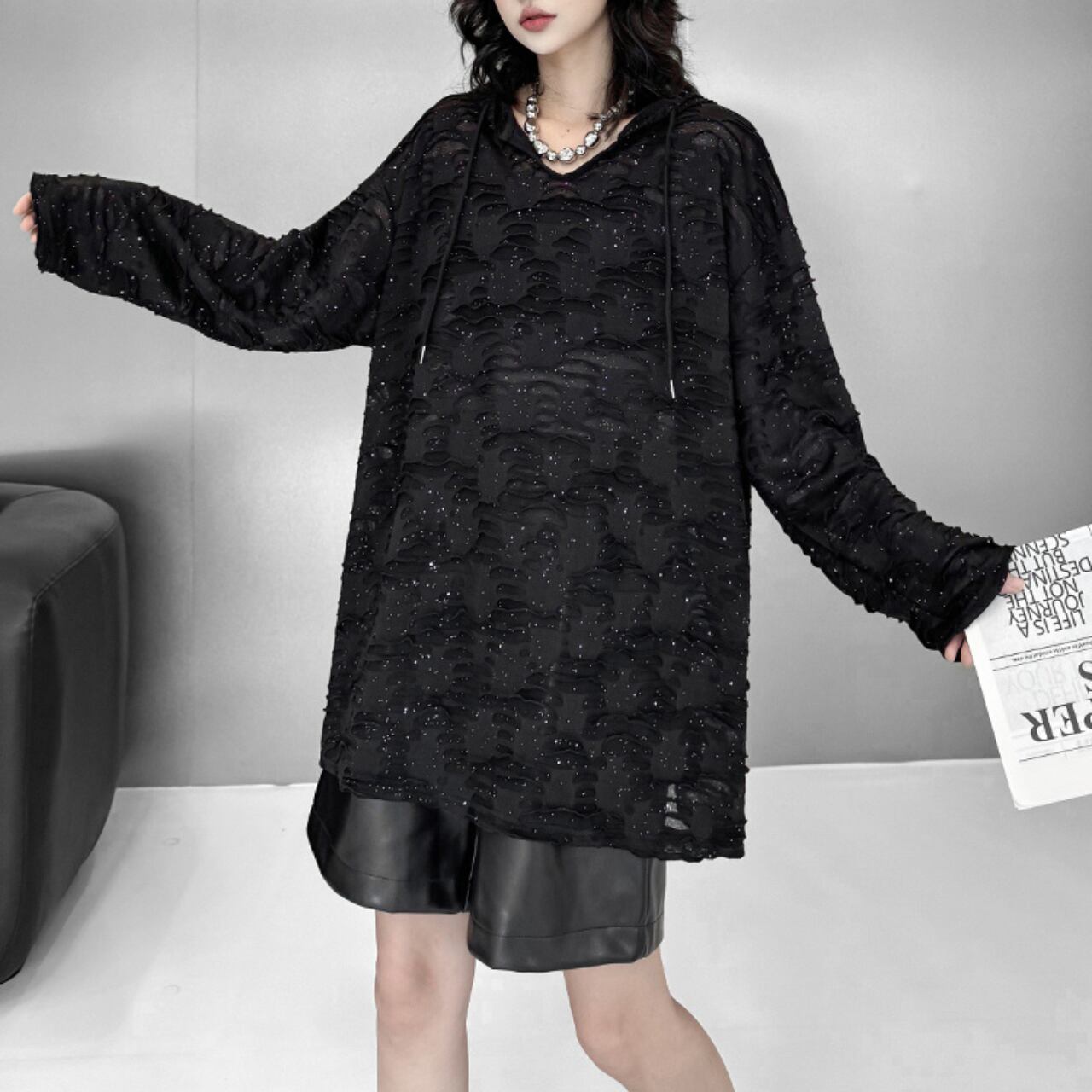 テクスチャーシアー フーデッドオーバートップス 00232
