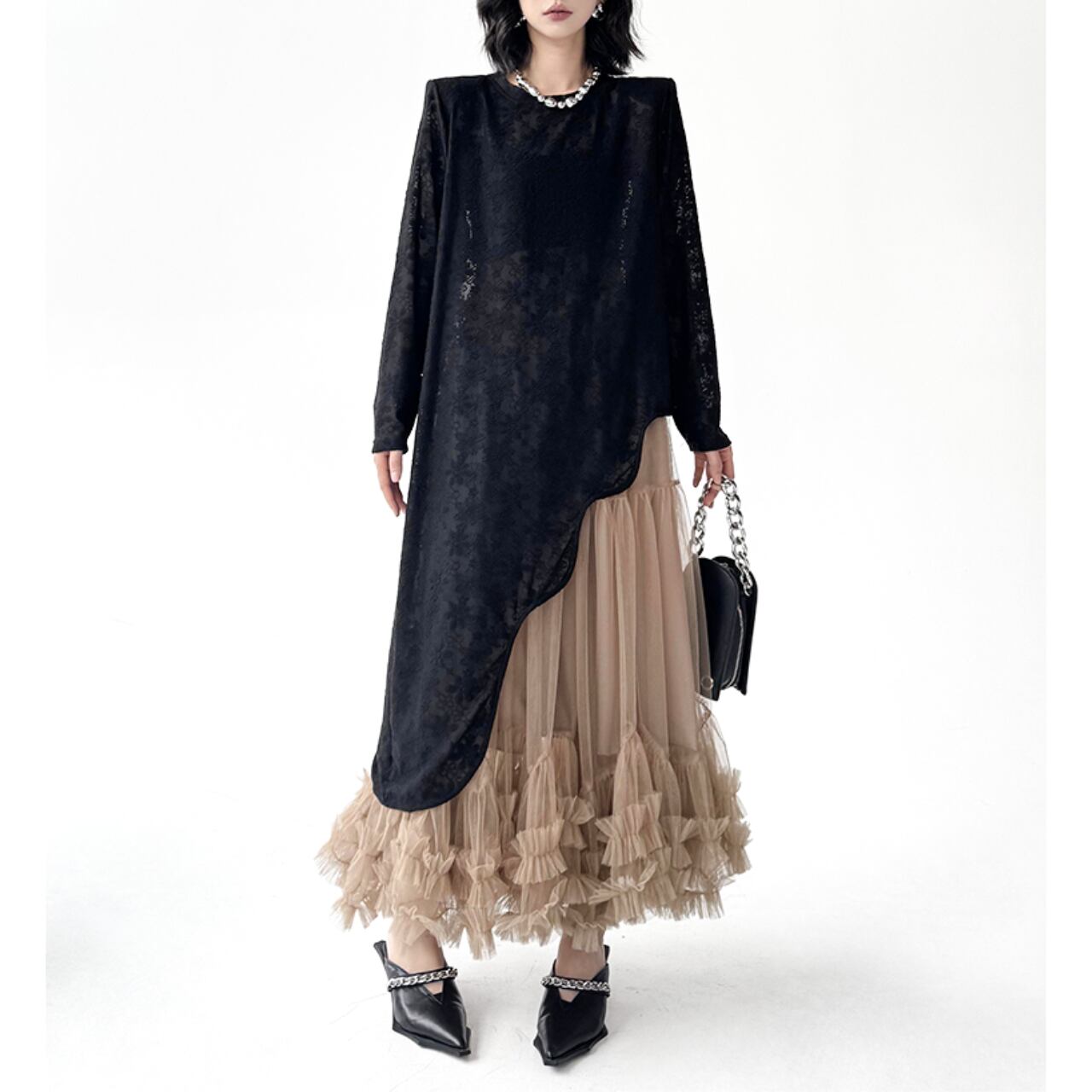 アシンメトリーなヘムラインが目を惹くロングスリーブトップス。