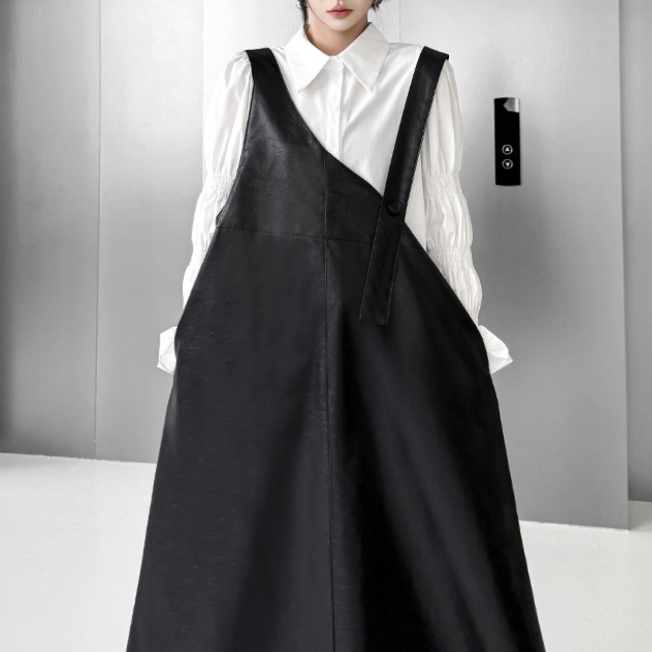 Asymmetrical Midi Fake Leather Jumper Skirt 00257