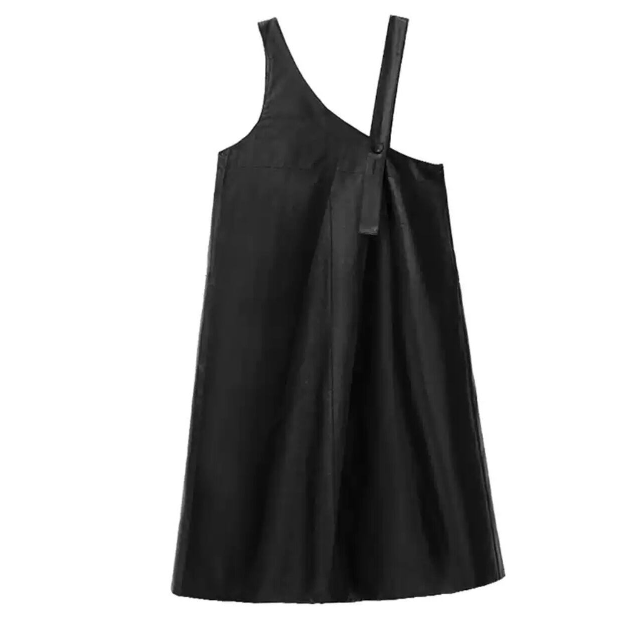 アシンメトリーなデザインが目を引くサロペットドレス。