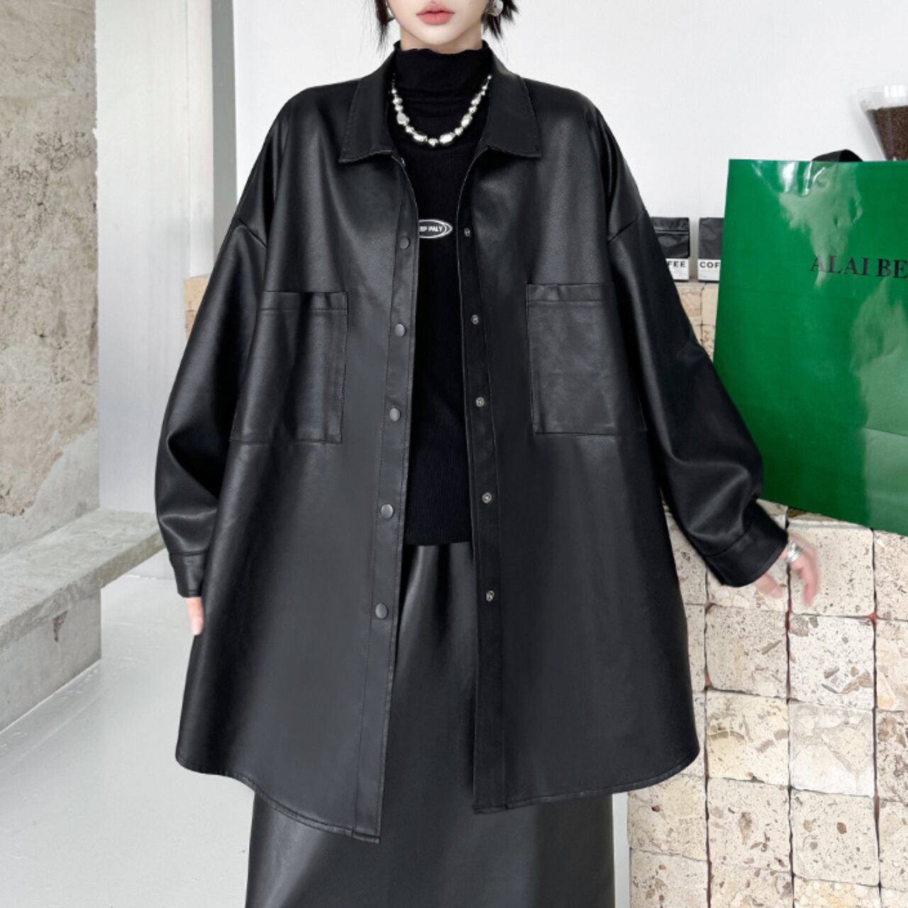 ボタンを開けて羽織りとしても、閉じてトップスとしても着用できる汎用性の高いアイテムです。