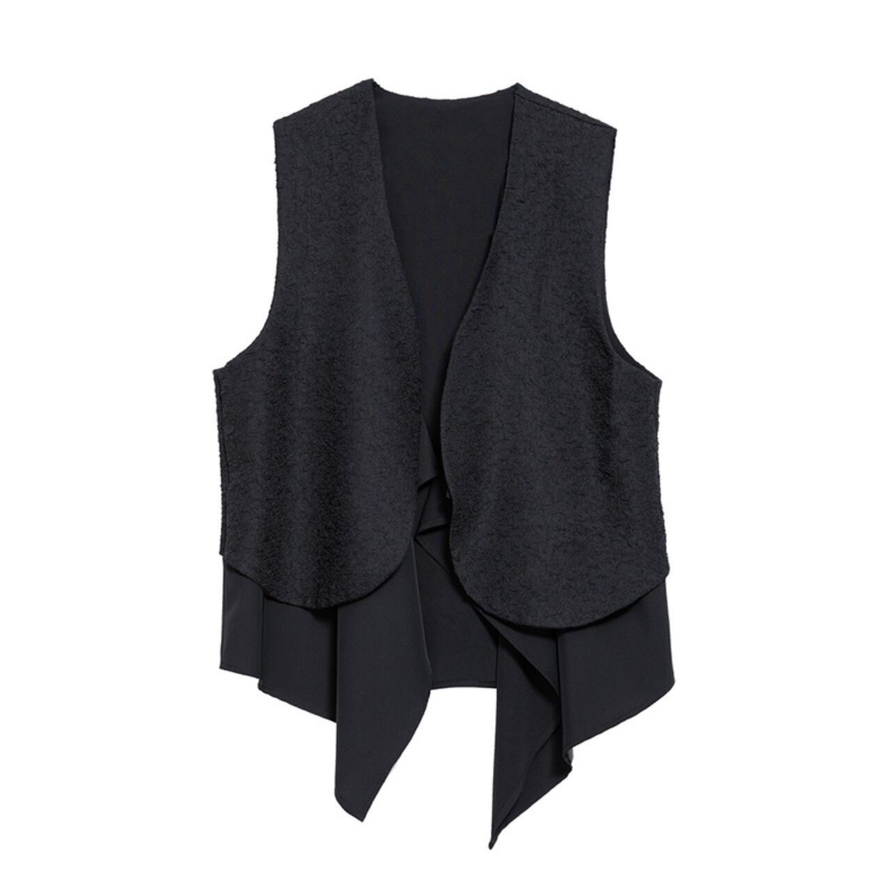 アシンメトリーな裾が特徴的なノースリーブベスト。